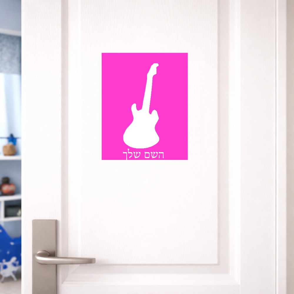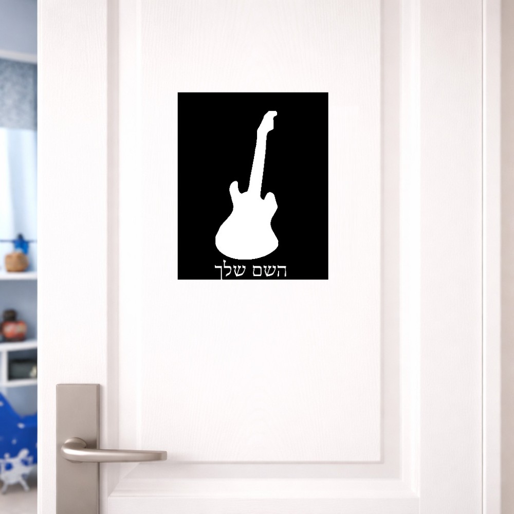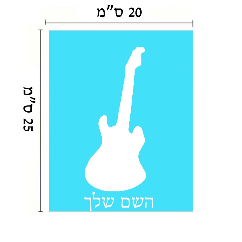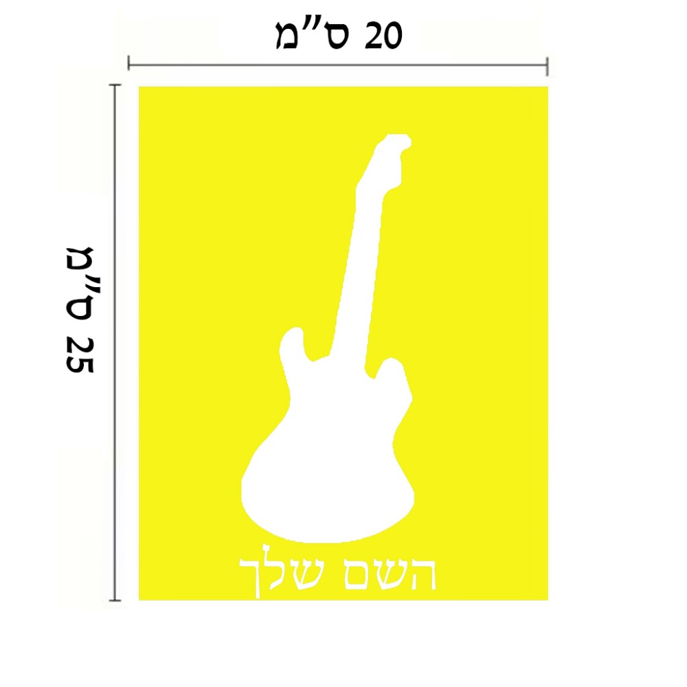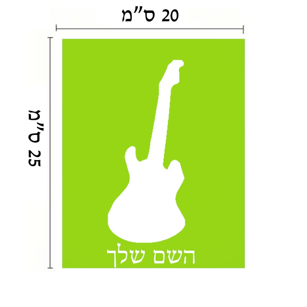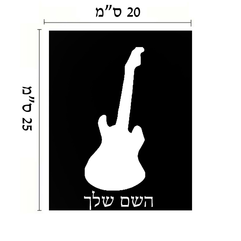 שלט אלומיניום גדול לחדר בעיצוב אישי עם השם שלך בעיצוב גיטרה גודל השלט 20 × 25 ס"מ. את השם המבוקש ניתן לציין בהזמנה, אם לא צויין אנחנו ניצור קשר לבירור.