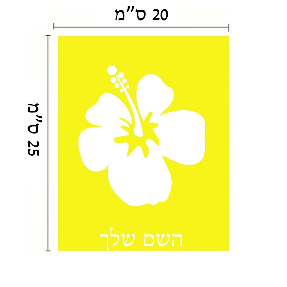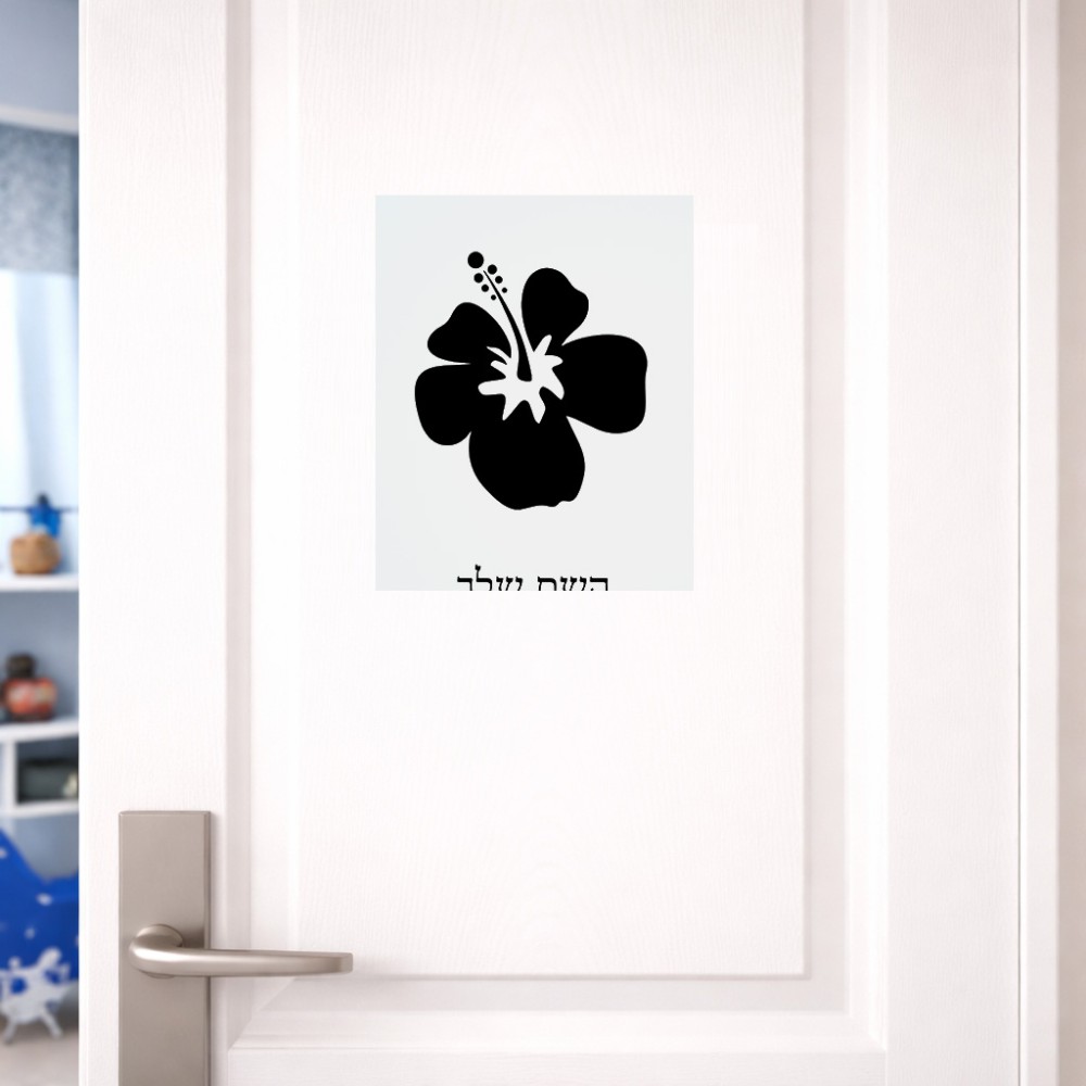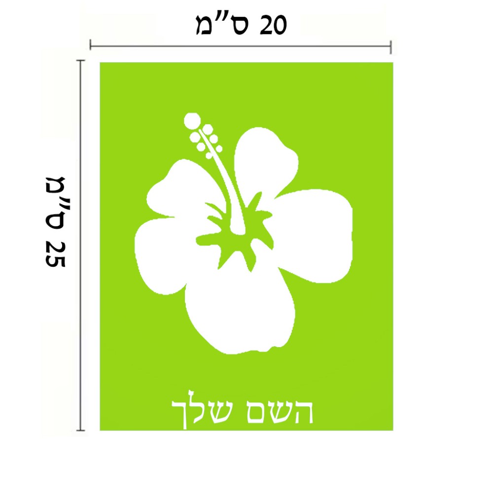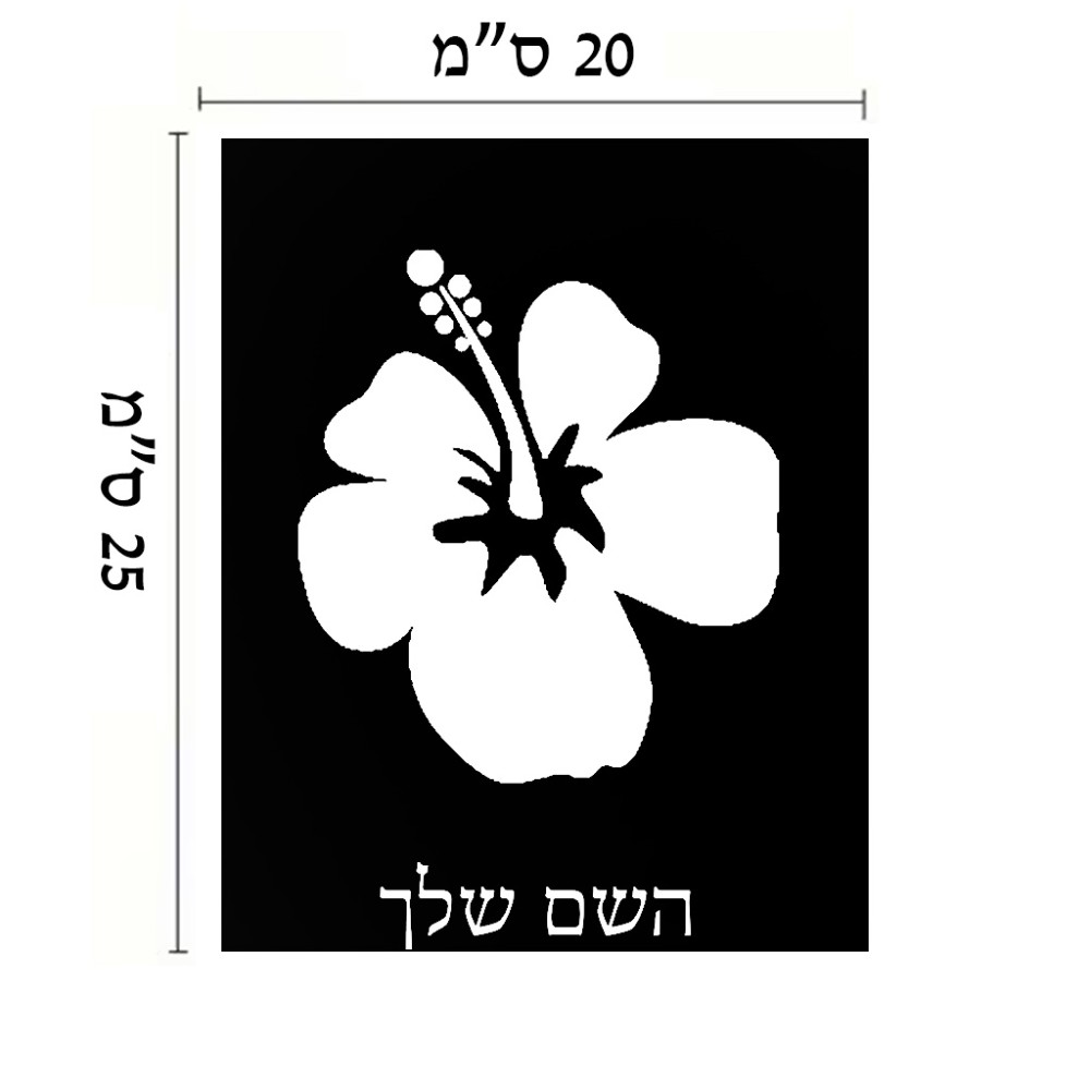 שלט אלומיניום גדול לחדר בעיצוב אישי עם השם שלך בעיצוב פרח היביסקוס גודל השלט 20 × 25 ס"מ. את השם המבוקש ניתן לציין בהזמנה, אם לא צויין אנחנו ניצור קשר לבירור.