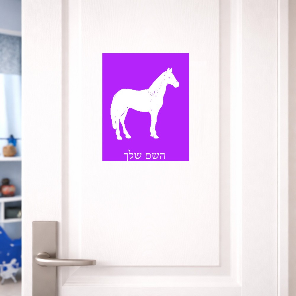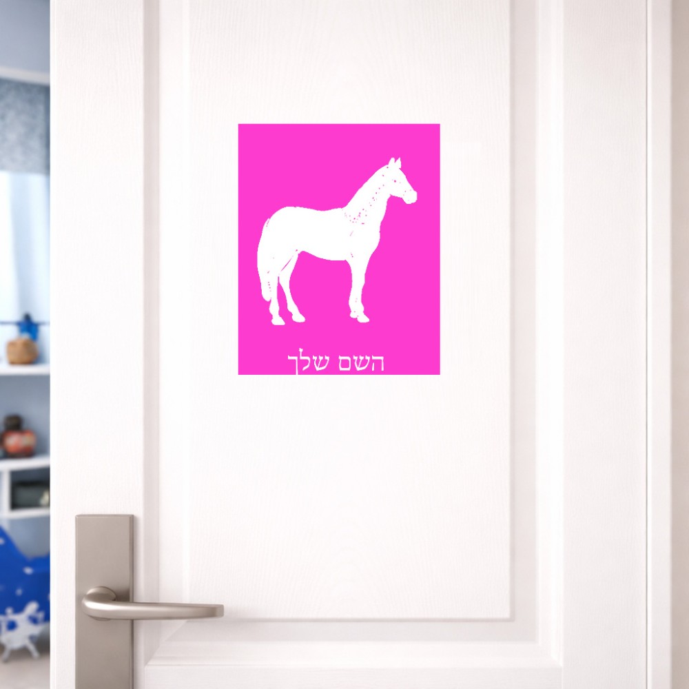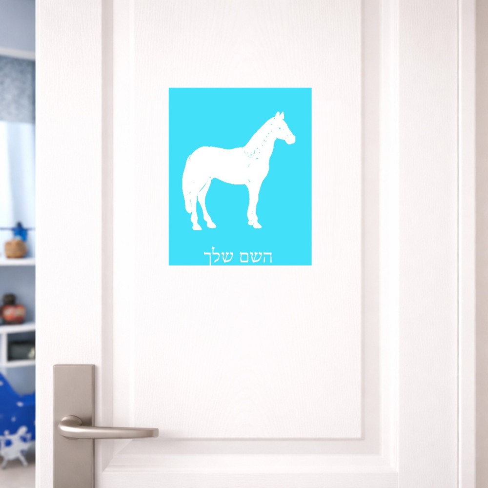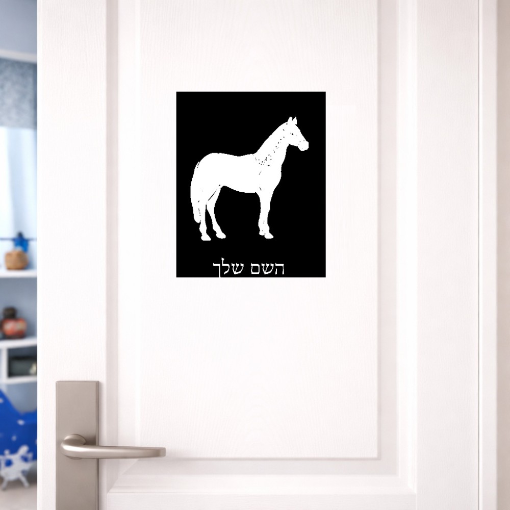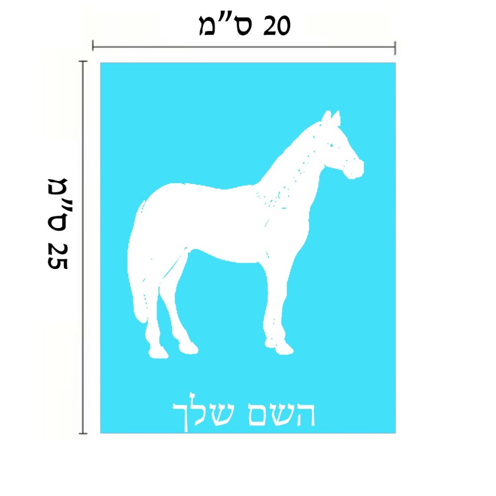 שלט אלומיניום גדול לחדר בעיצוב אישי עם השם שלך בעיצוב סוס גודל השלט 20 × 25 ס"מ. את השם המבוקש ניתן לציין בהזמנה, אם לא צויין אנחנו ניצור קשר לבירור.