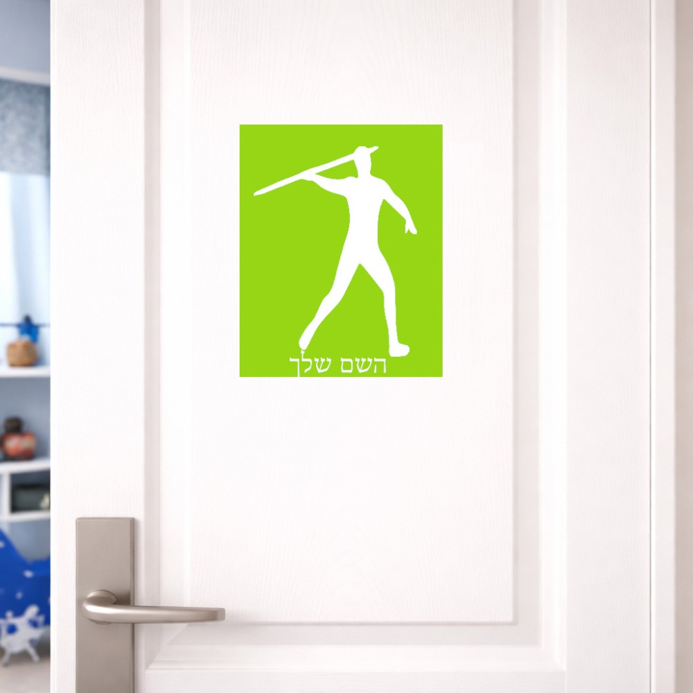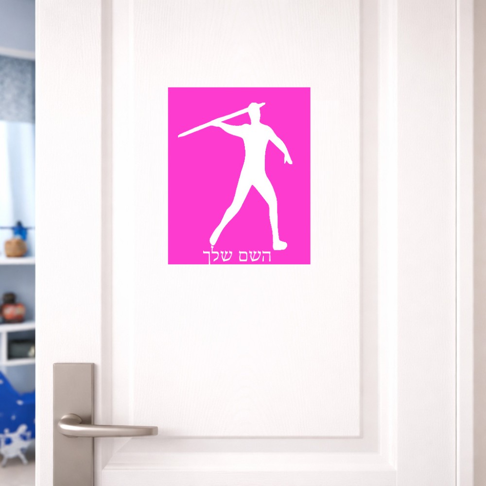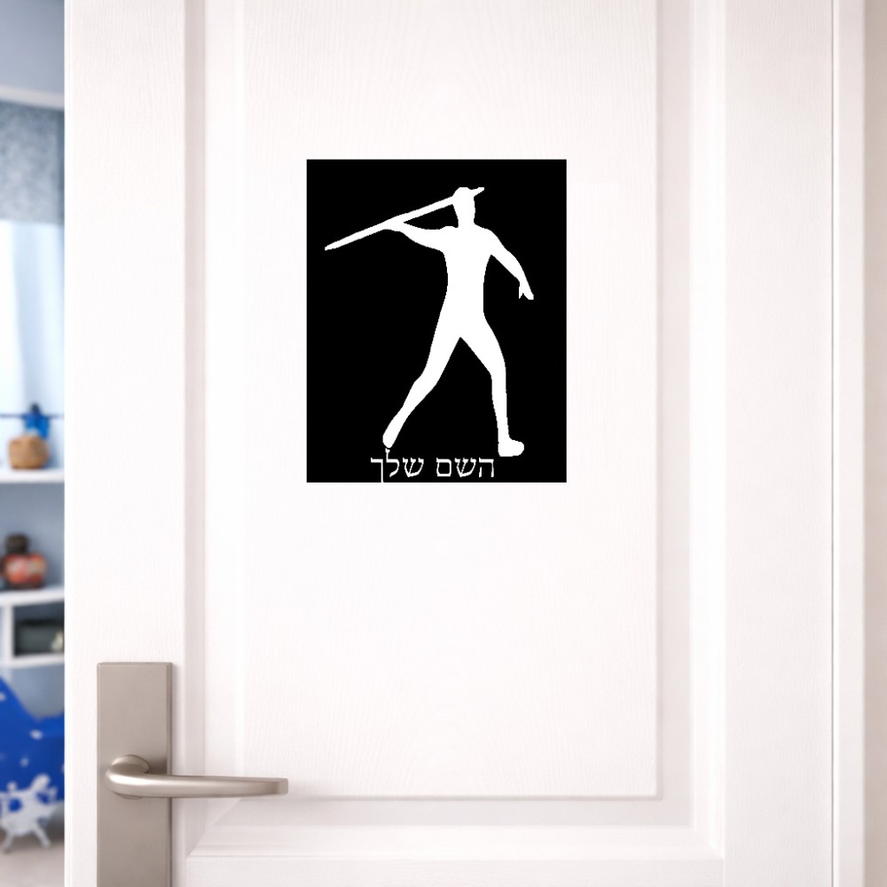 שלט אלומיניום גדול לחדר בעיצוב אישי עם השם שלך בעיצוב זורק כידון גודל השלט 20 × 25 ס"מ. את השם המבוקש ניתן לציין בהזמנה, אם לא צויין אנחנו ניצור קשר לבירור.