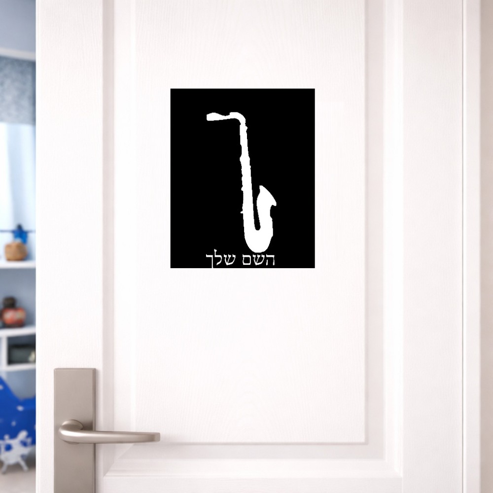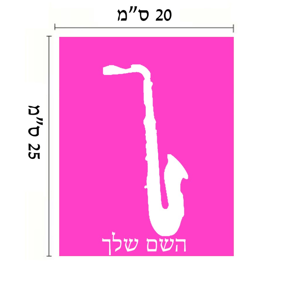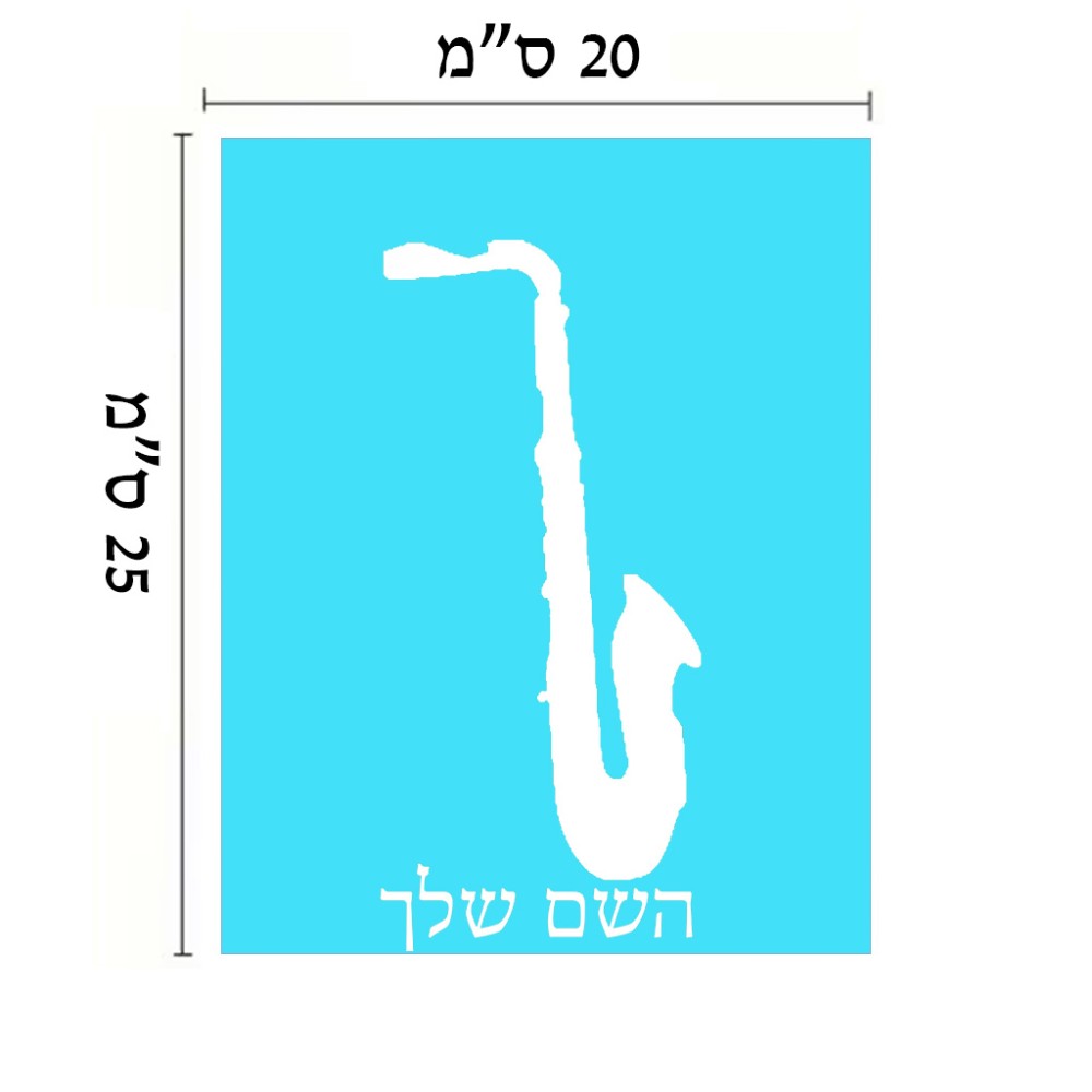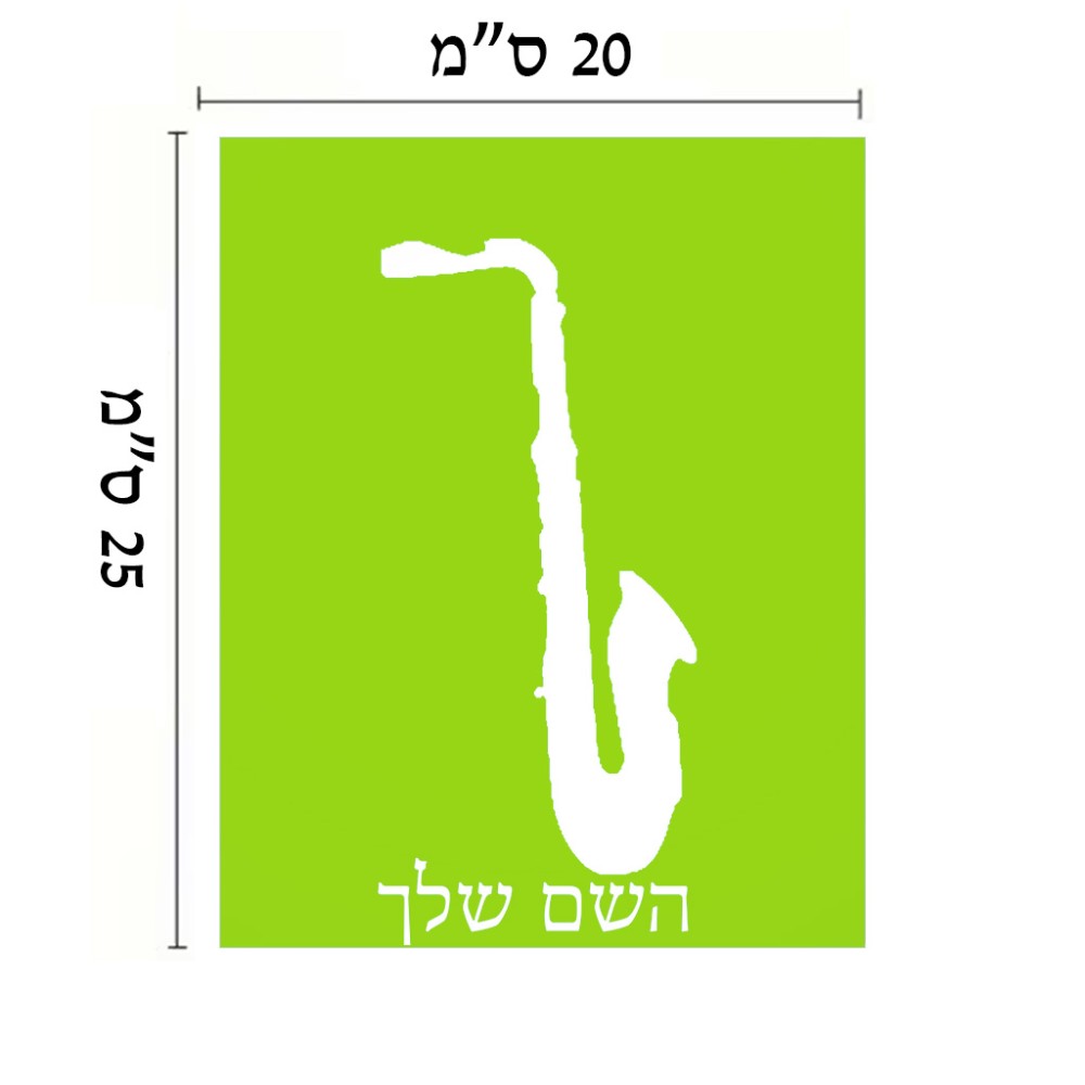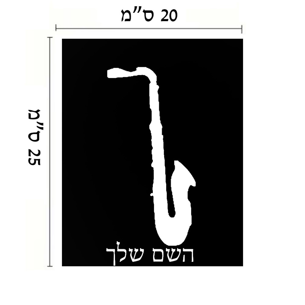שלט אלומיניום גדול לחדר בעיצוב אישי עם השם שלך בעיצוב סקסופון גודל השלט 20 × 25 ס"מ. את השם המבוקש ניתן לציין בהזמנה, אם לא צויין אנחנו ניצור קשר לבירור.
