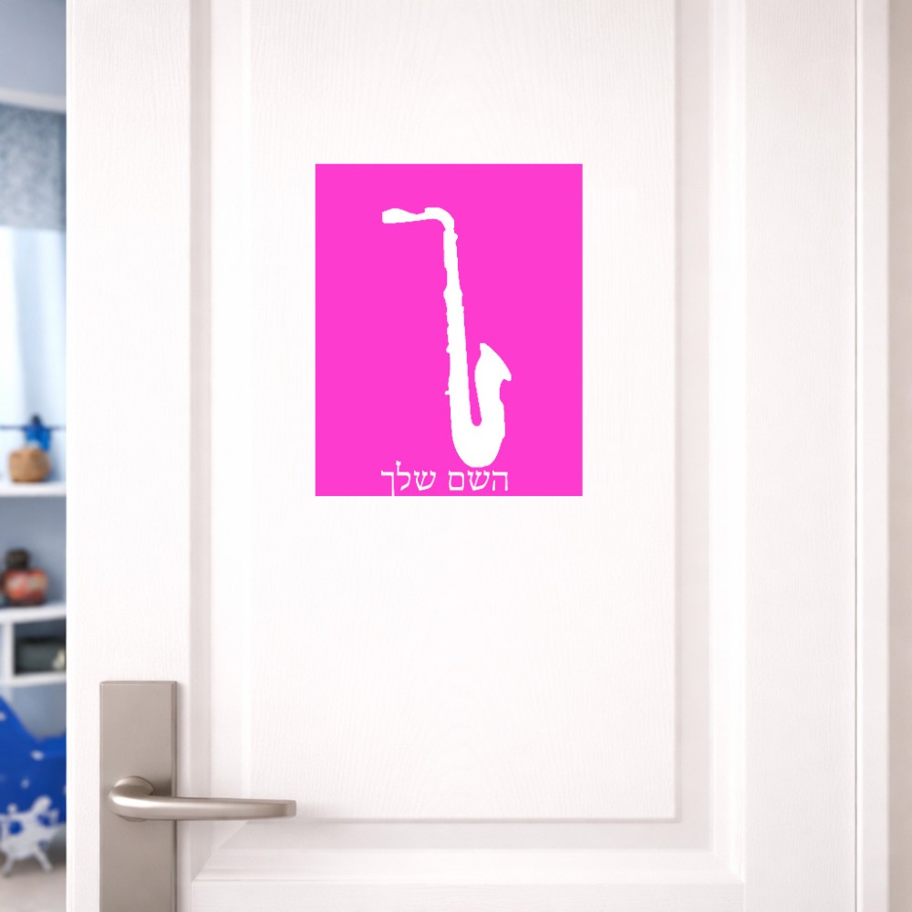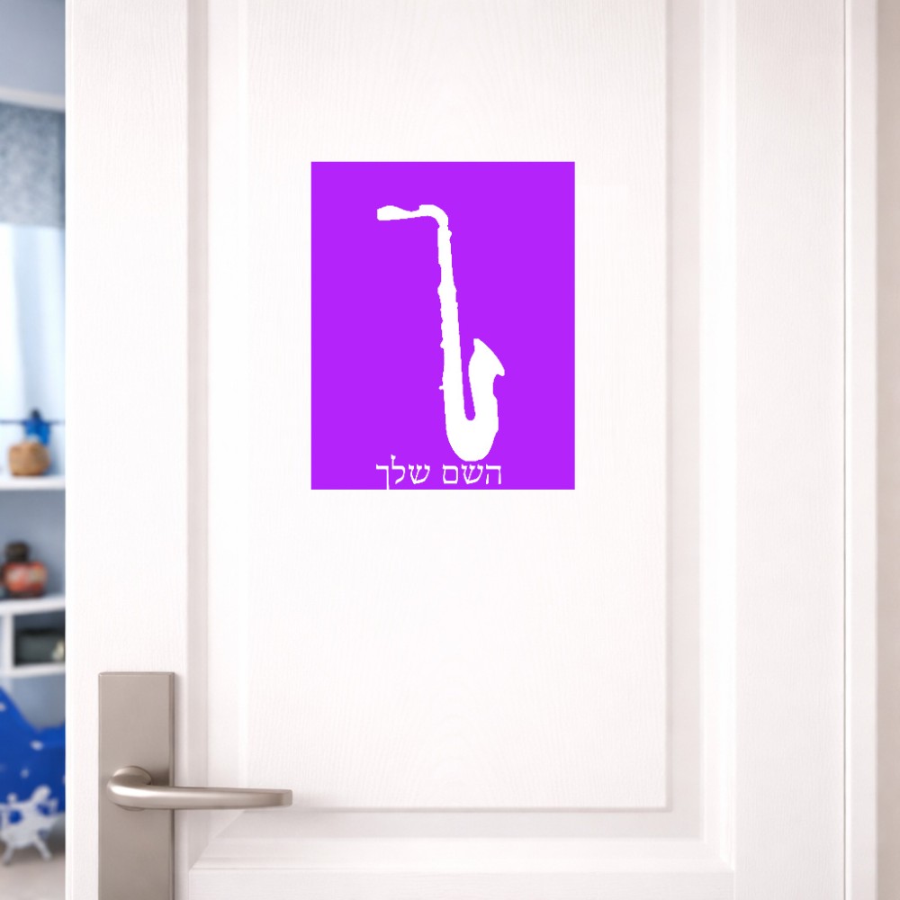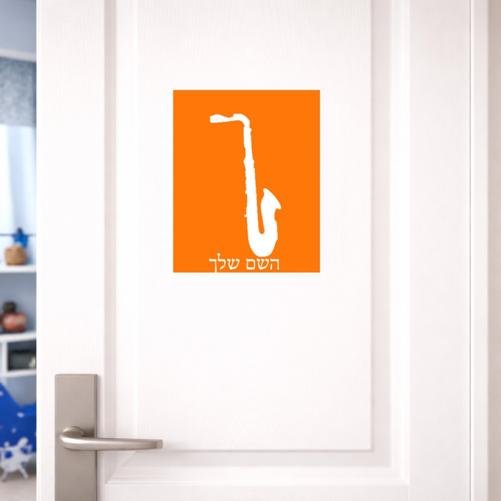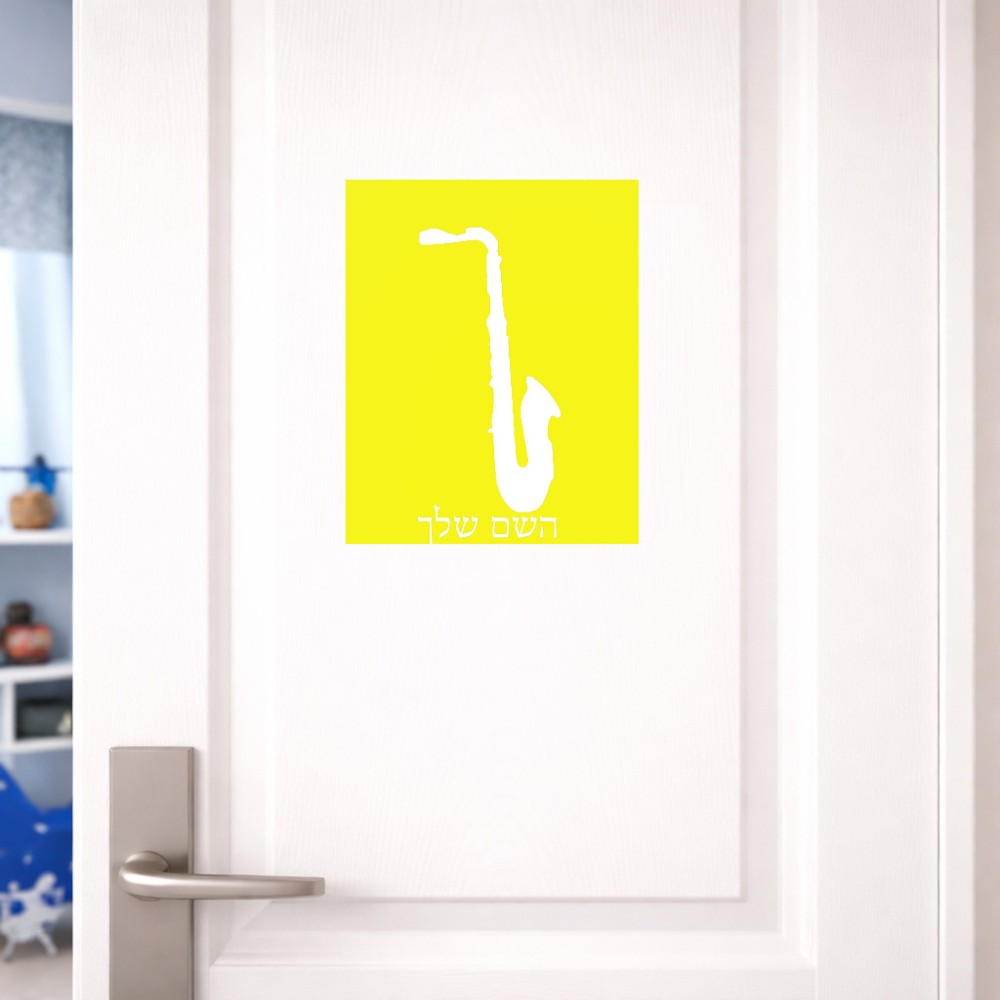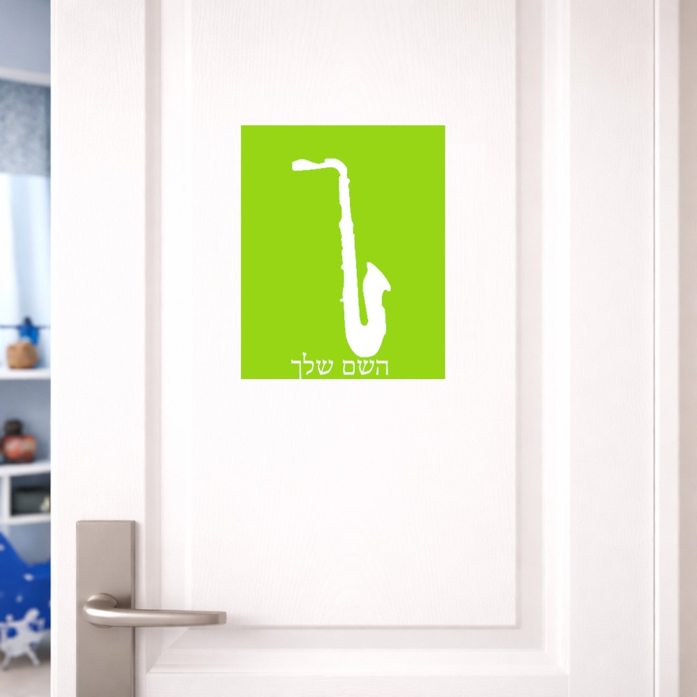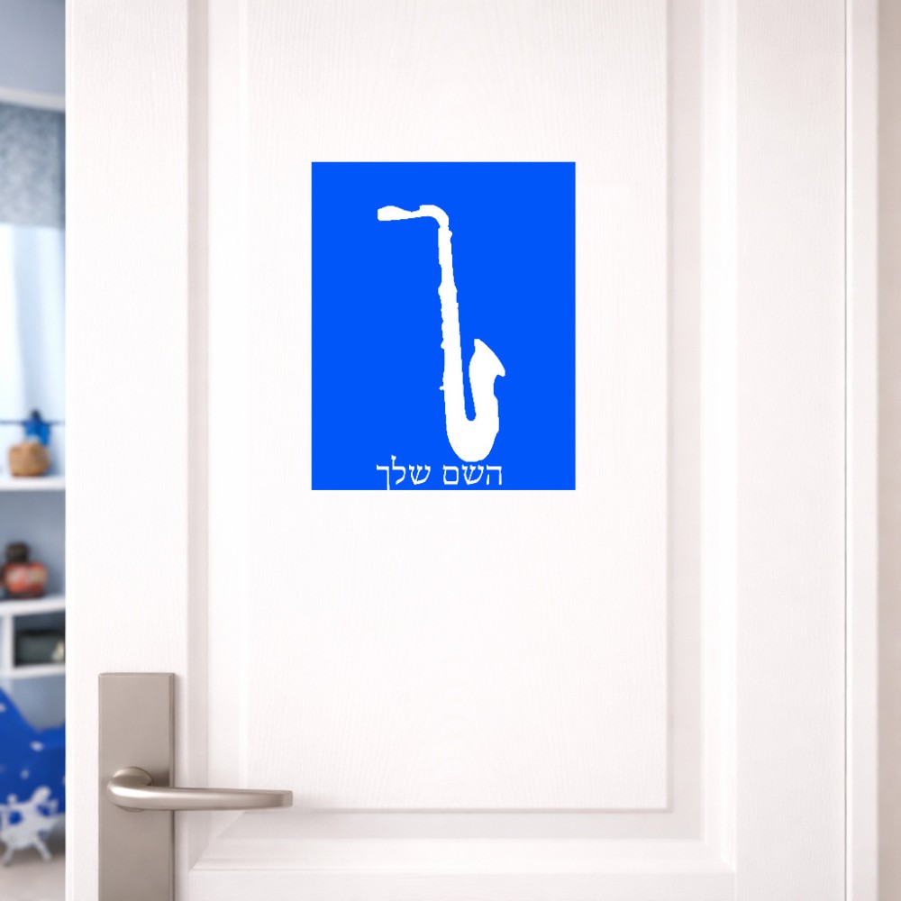 שלט אלומיניום גדול לחדר בעיצוב אישי עם השם שלך בעיצוב סקסופון גודל השלט 20 × 25 ס"מ. את השם המבוקש ניתן לציין בהזמנה, אם לא צויין אנחנו ניצור קשר לבירור.