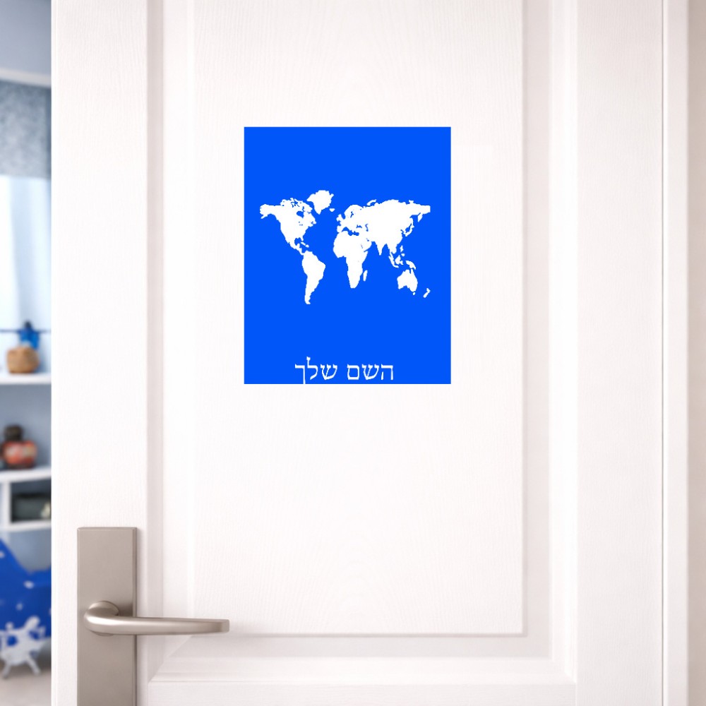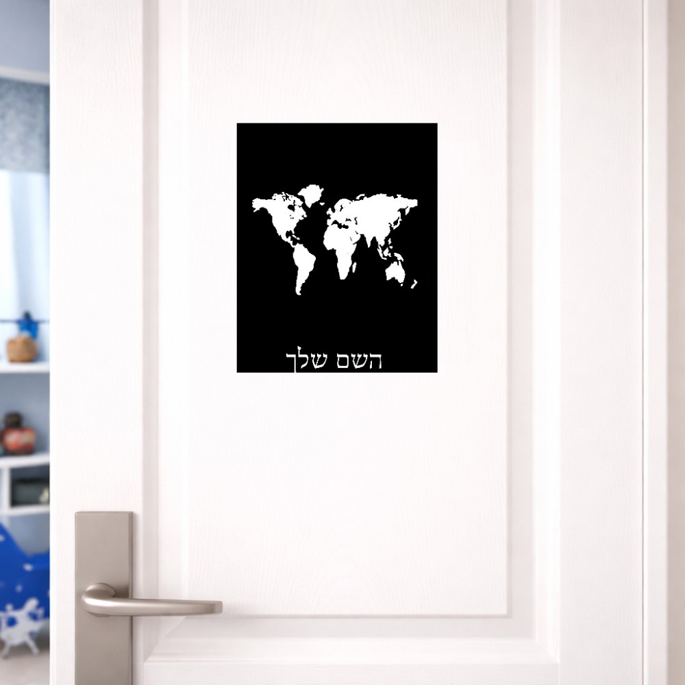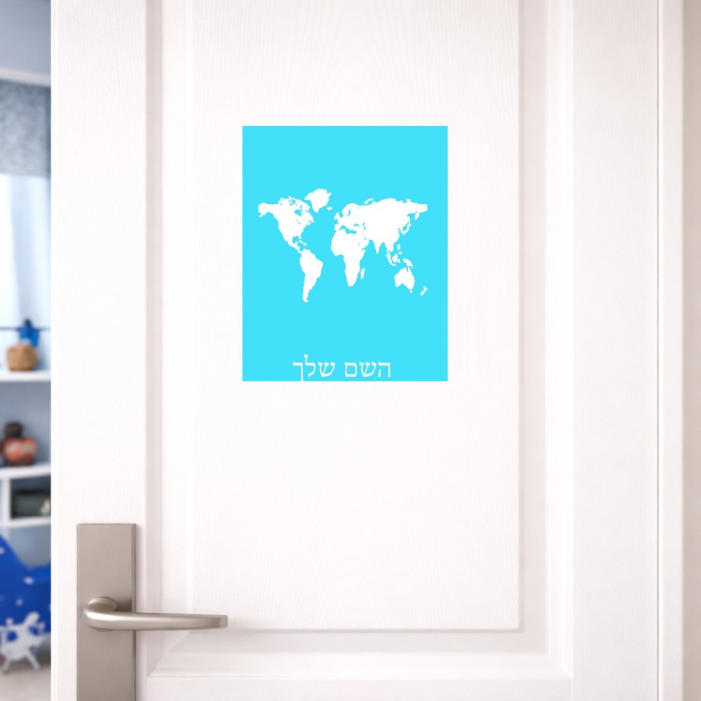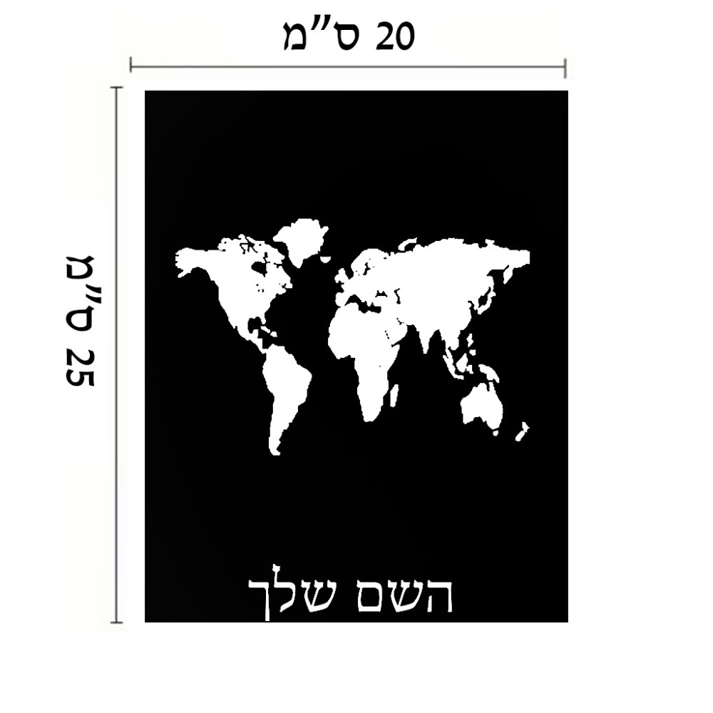 שלט אלומיניום גדול לחדר בעיצוב אישי עם השם שלך בעיצוב מפת העולם גודל השלט 20 × 25 ס"מ. את השם המבוקש ניתן לציין בהזמנה, אם לא צויין אנחנו ניצור קשר לבירור.