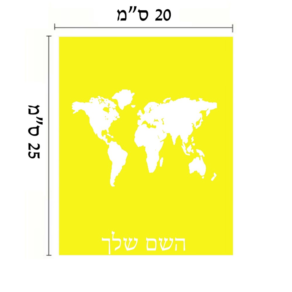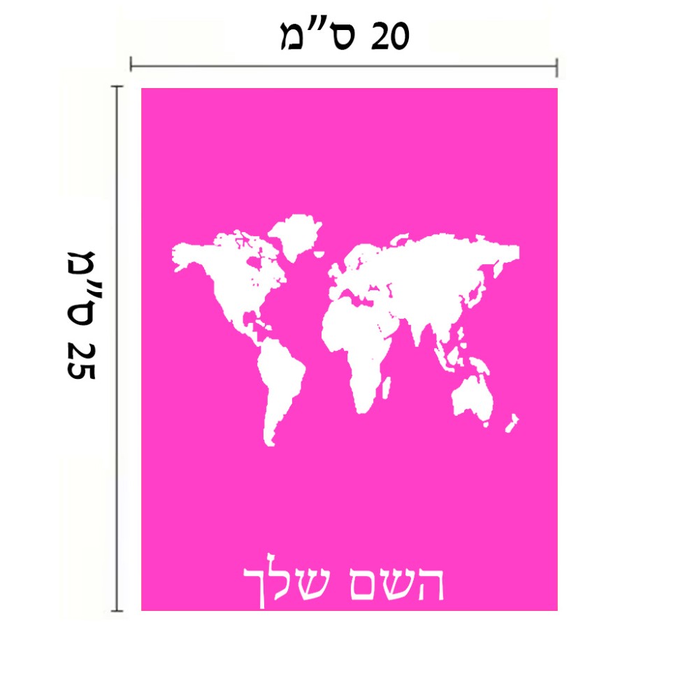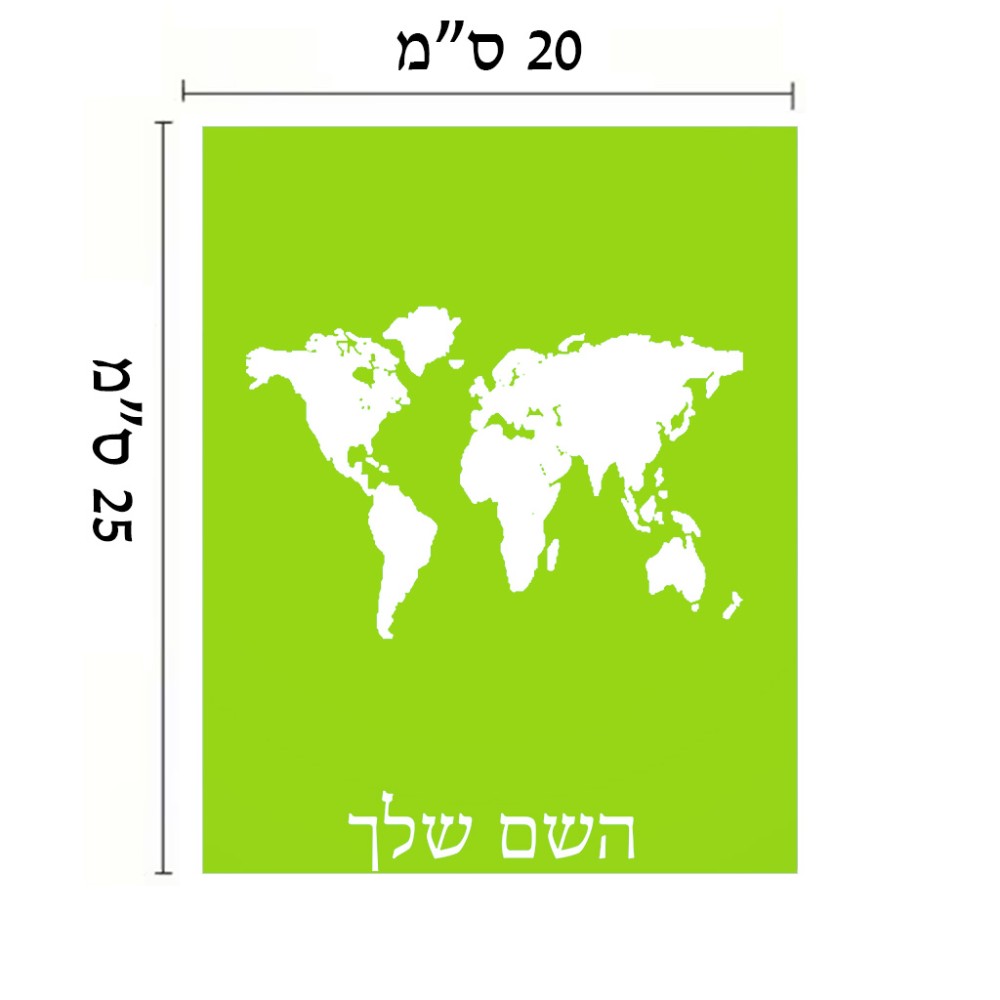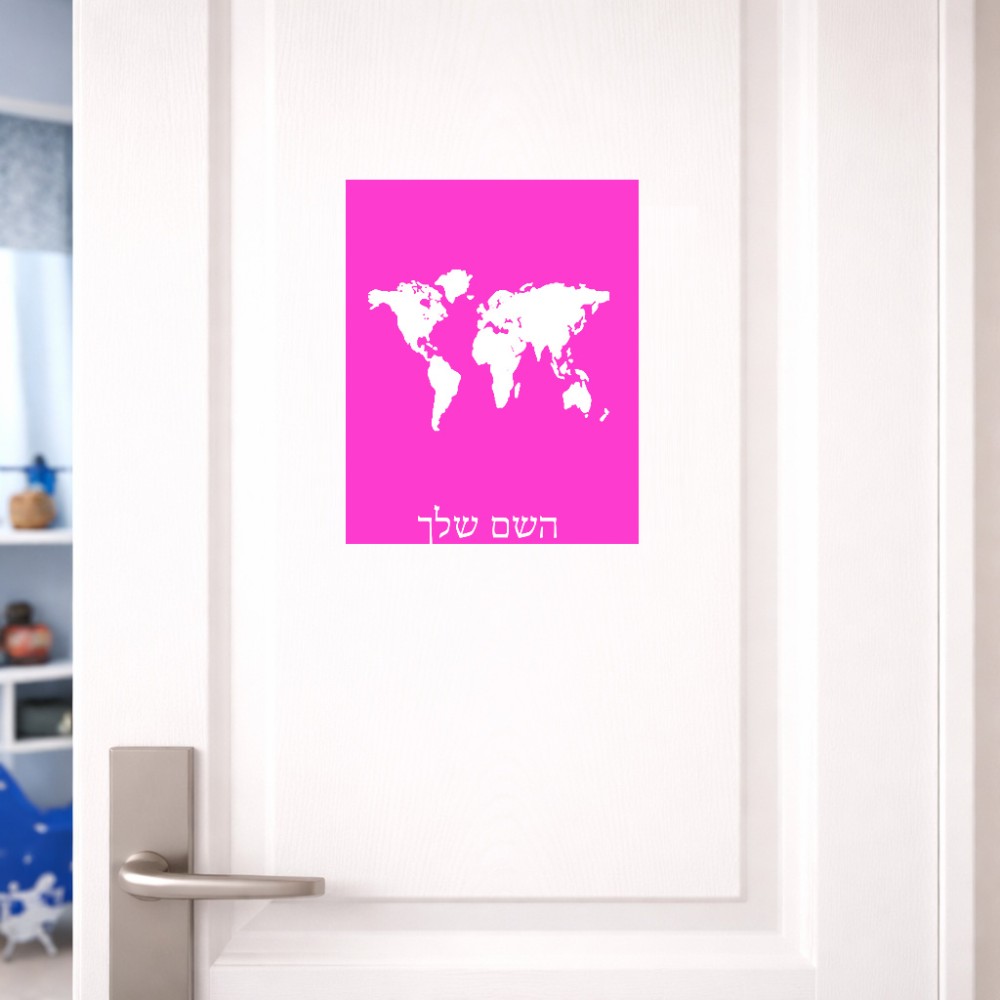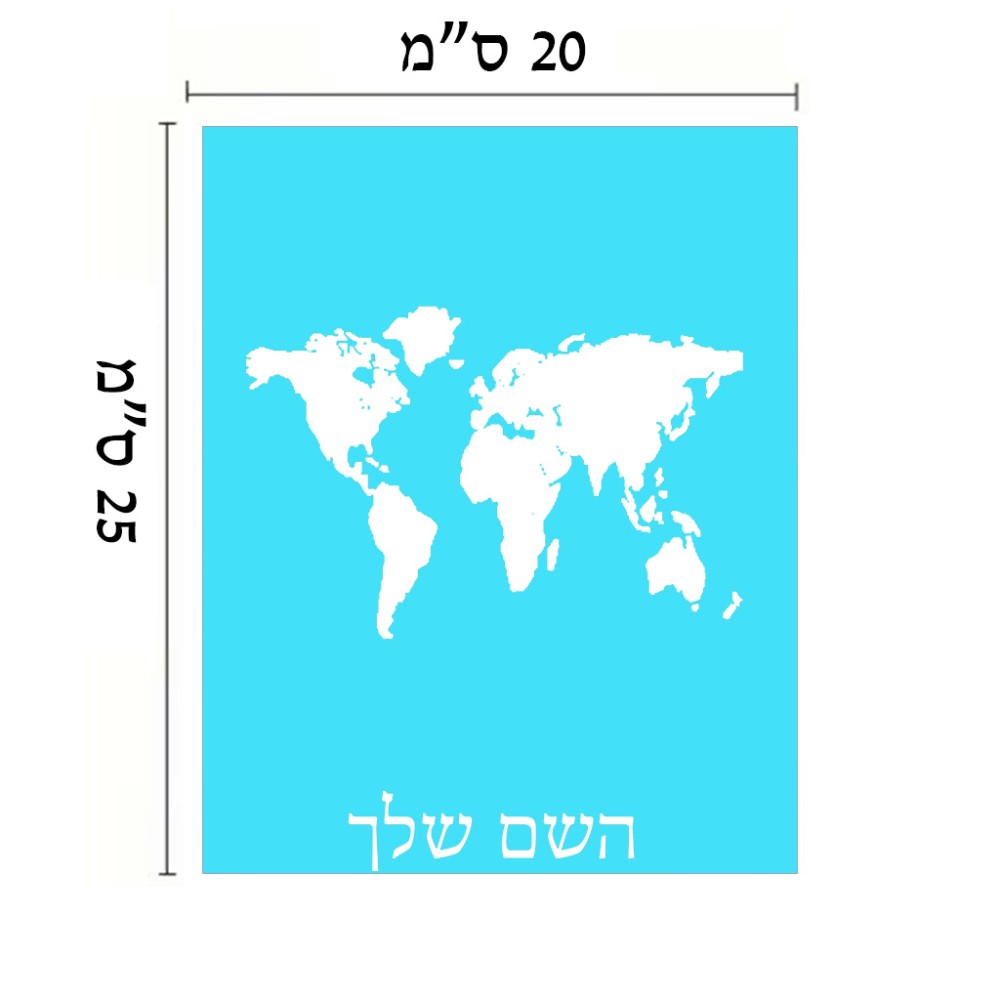 שלט אלומיניום גדול לחדר בעיצוב אישי עם השם שלך בעיצוב מפת העולם גודל השלט 20 × 25 ס"מ. את השם המבוקש ניתן לציין בהזמנה, אם לא צויין אנחנו ניצור קשר לבירור.