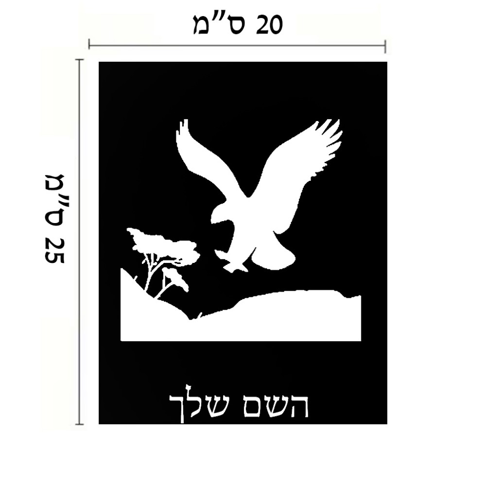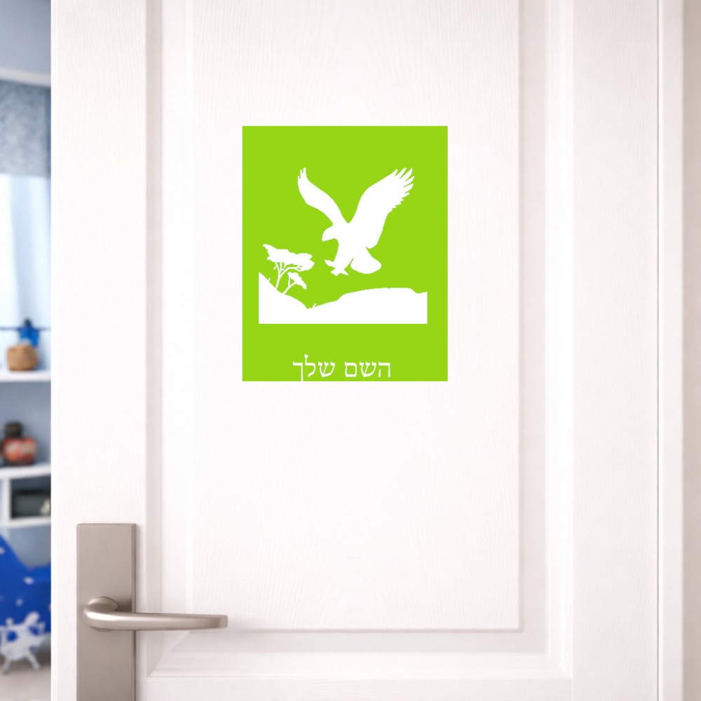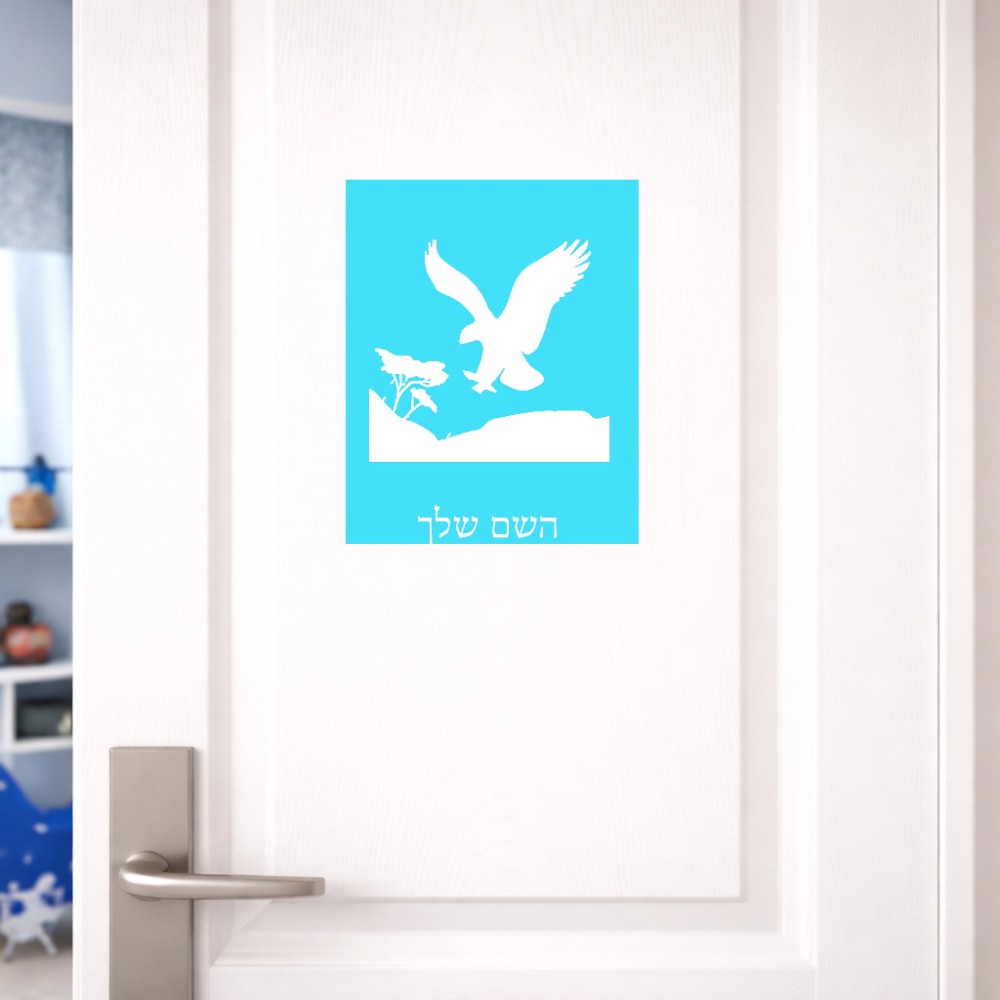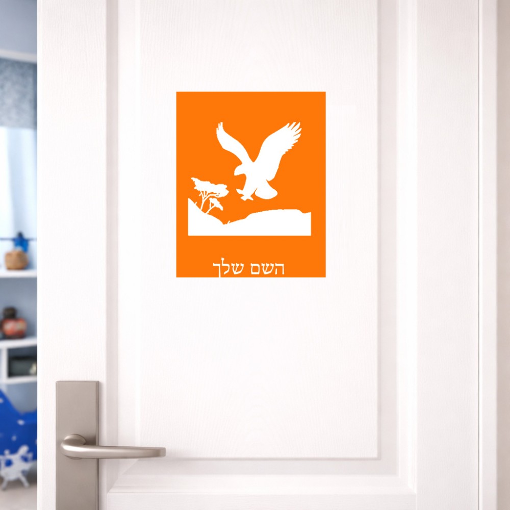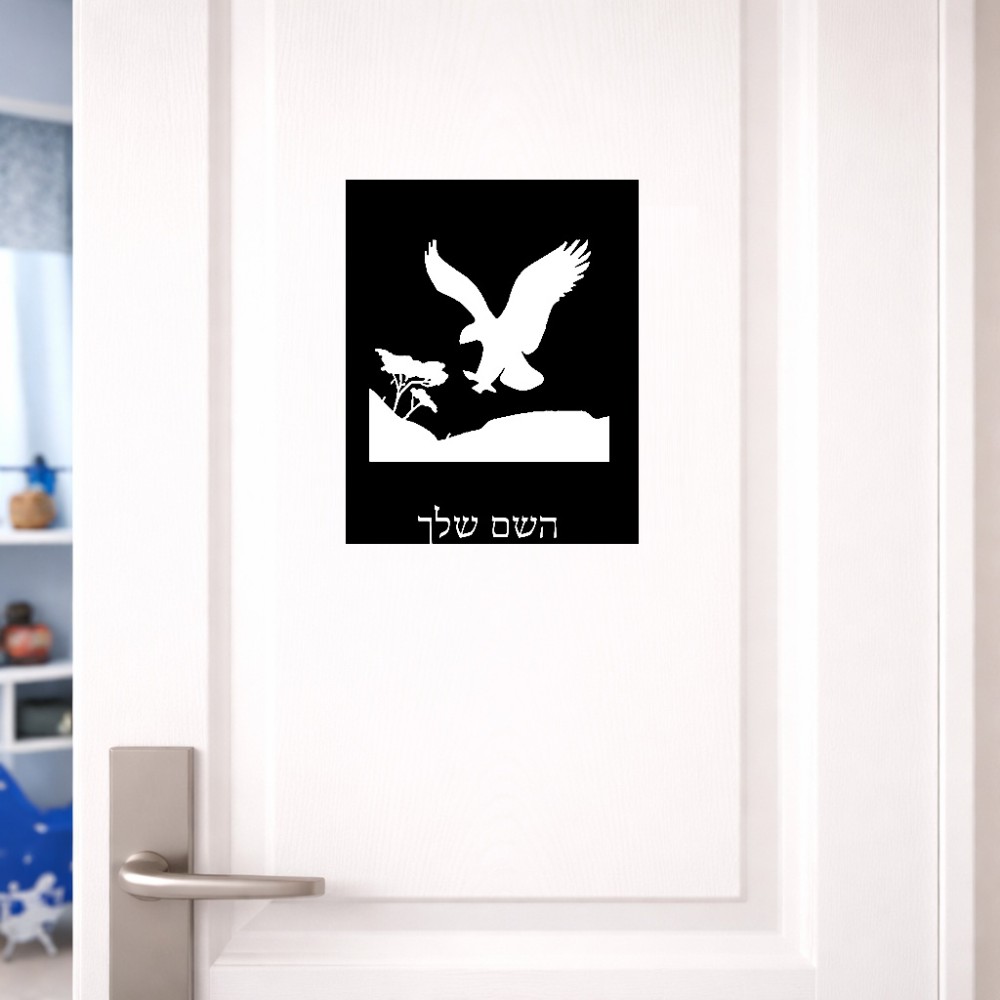 שלט אלומיניום גדול לחדר בעיצוב אישי עם השם שלך בעיצוב נשר אמריקאי גודל השלט 20 × 25 ס"מ. את השם המבוקש ניתן לציין בהזמנה, אם לא צויין אנחנו ניצור קשר לבירור.