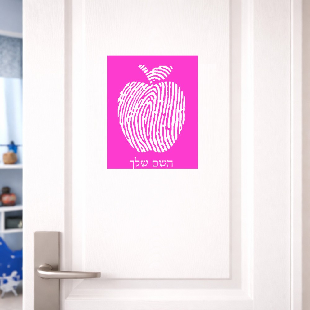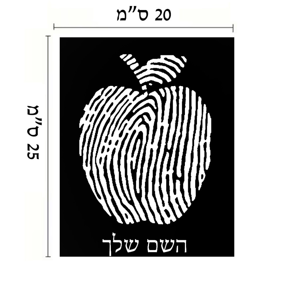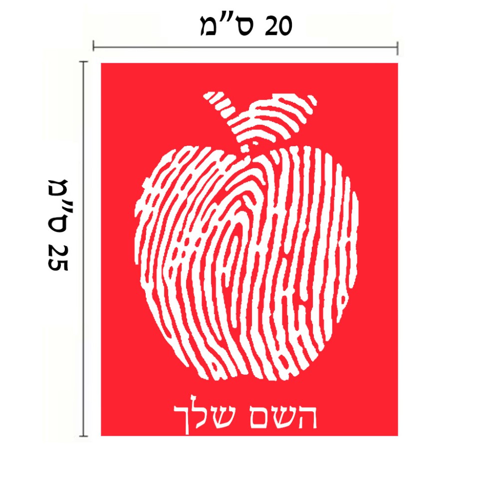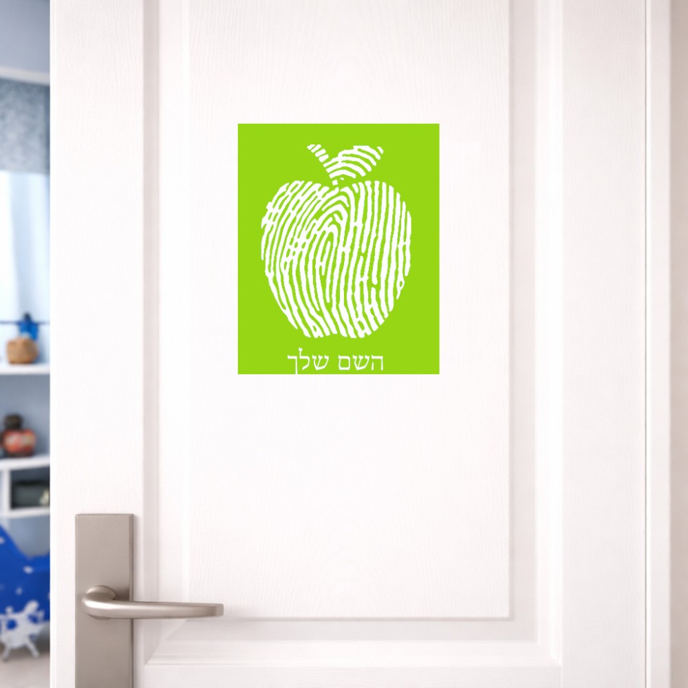 שלט אלומיניום גדול לחדר בעיצוב אישי עם השם שלך בעיצוב הדפס תפוח גודל השלט 20 × 25 ס"מ. את השם המבוקש ניתן לציין בהזמנה, אם לא צויין אנחנו ניצור קשר לבירור.