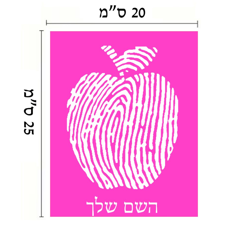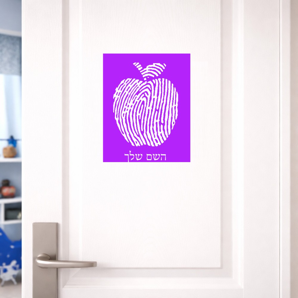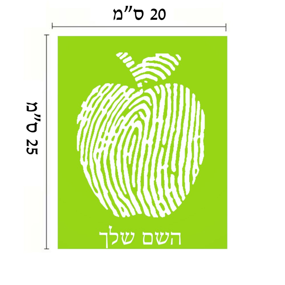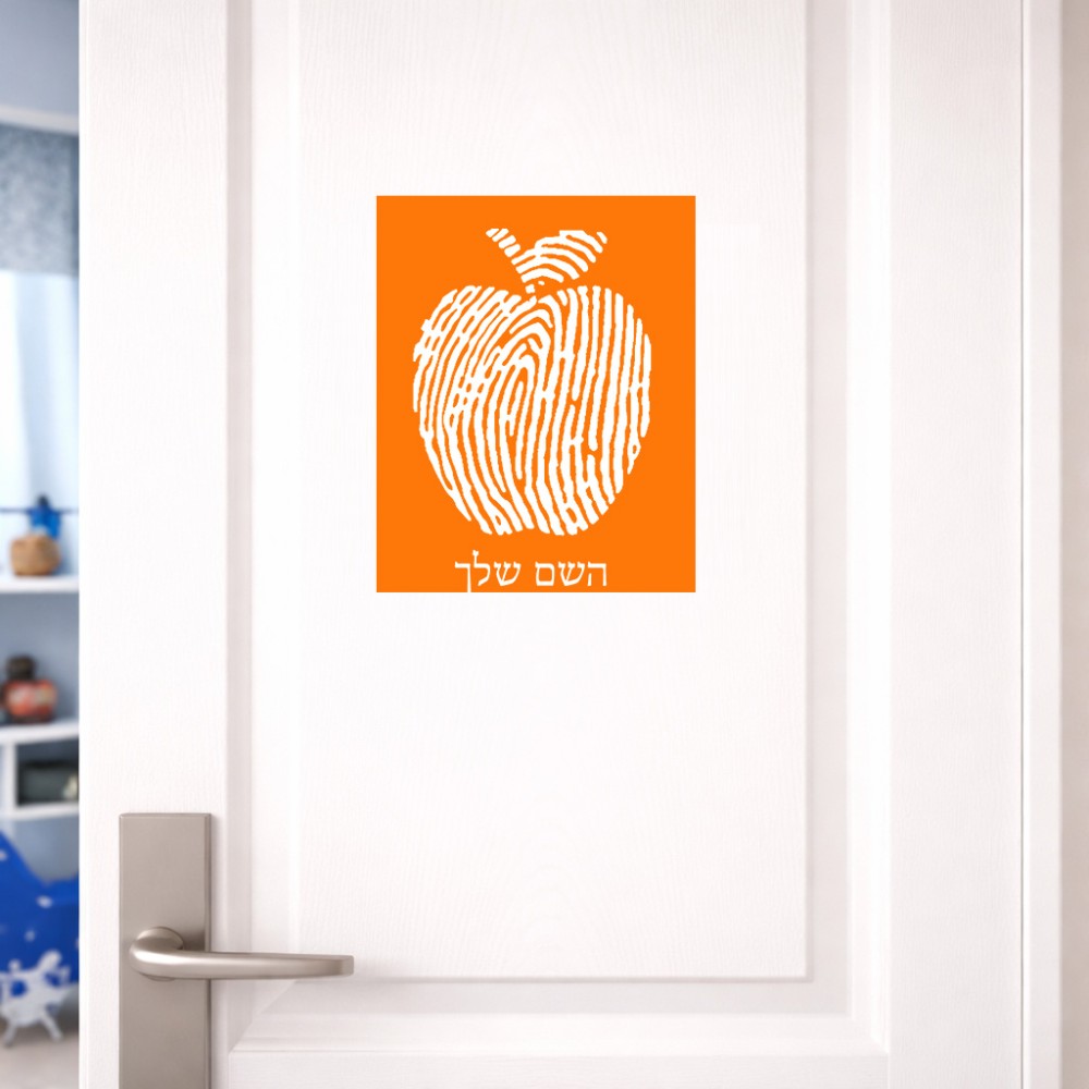 שלט אלומיניום גדול לחדר בעיצוב אישי עם השם שלך בעיצוב הדפס תפוח גודל השלט 20 × 25 ס"מ. את השם המבוקש ניתן לציין בהזמנה, אם לא צויין אנחנו ניצור קשר לבירור.
