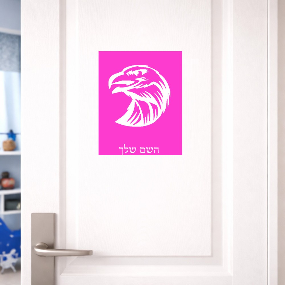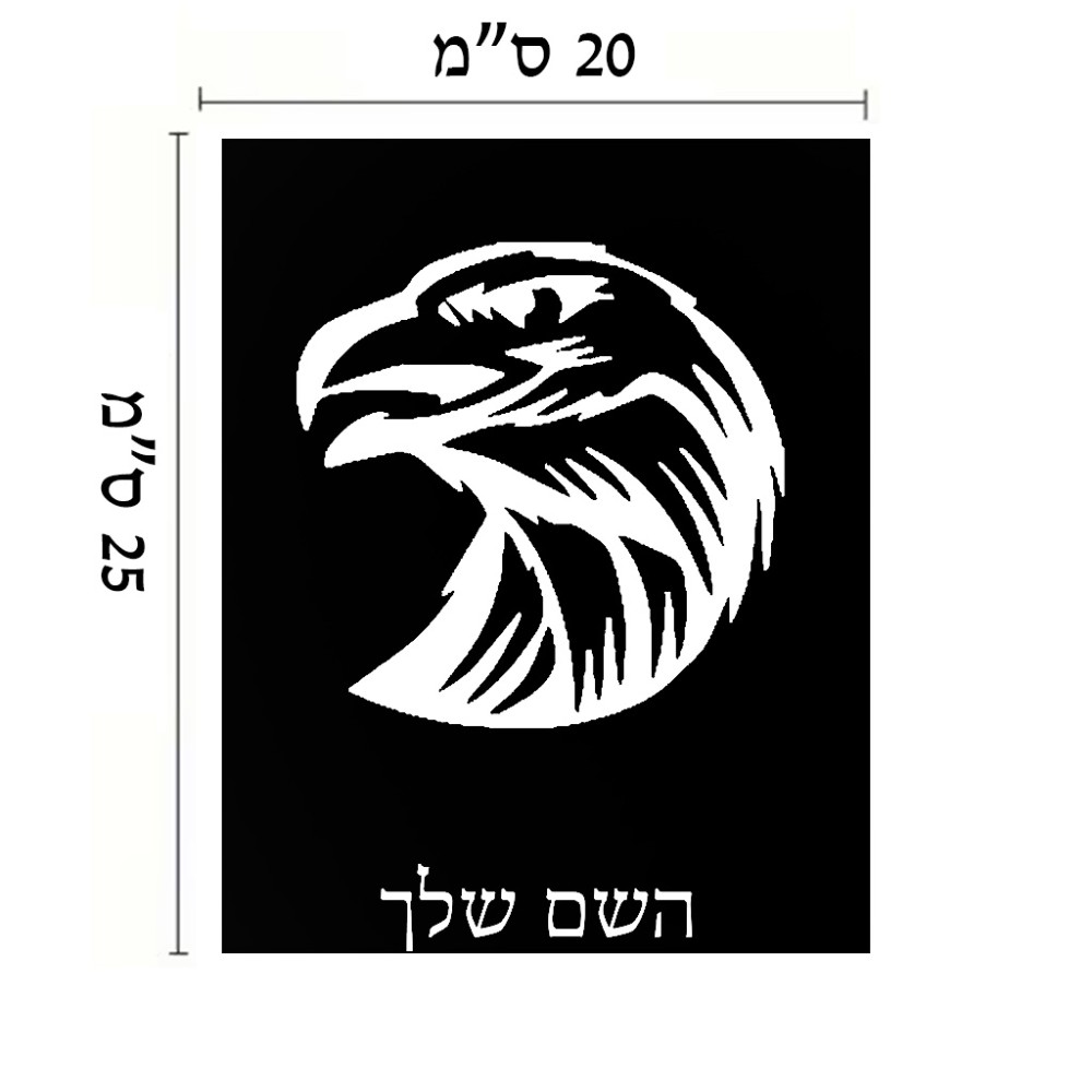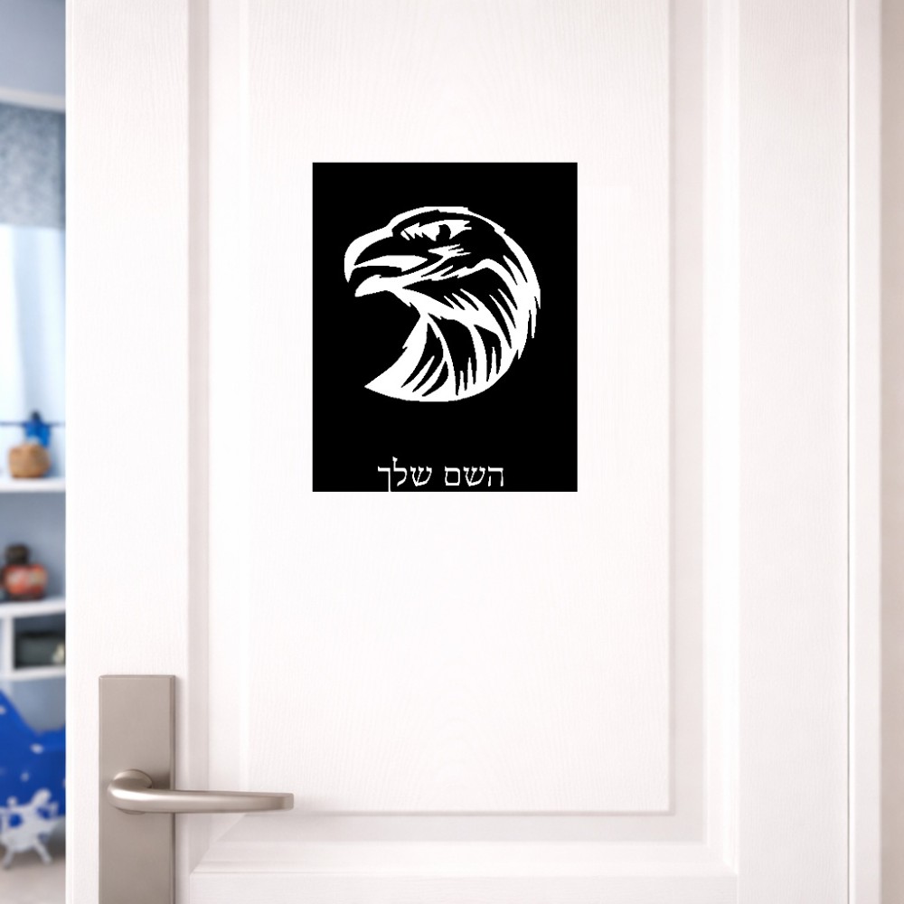 שלט אלומיניום גדול לחדר בעיצוב אישי עם השם שלך בעיצוב ראש נשר גודל השלט 20 × 25 ס"מ. את השם המבוקש ניתן לציין בהזמנה, אם לא צויין אנחנו ניצור קשר לבירור.
