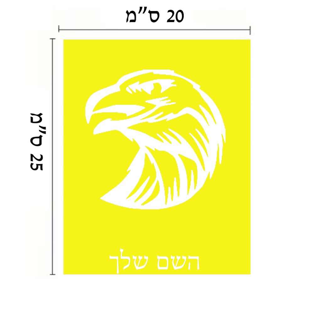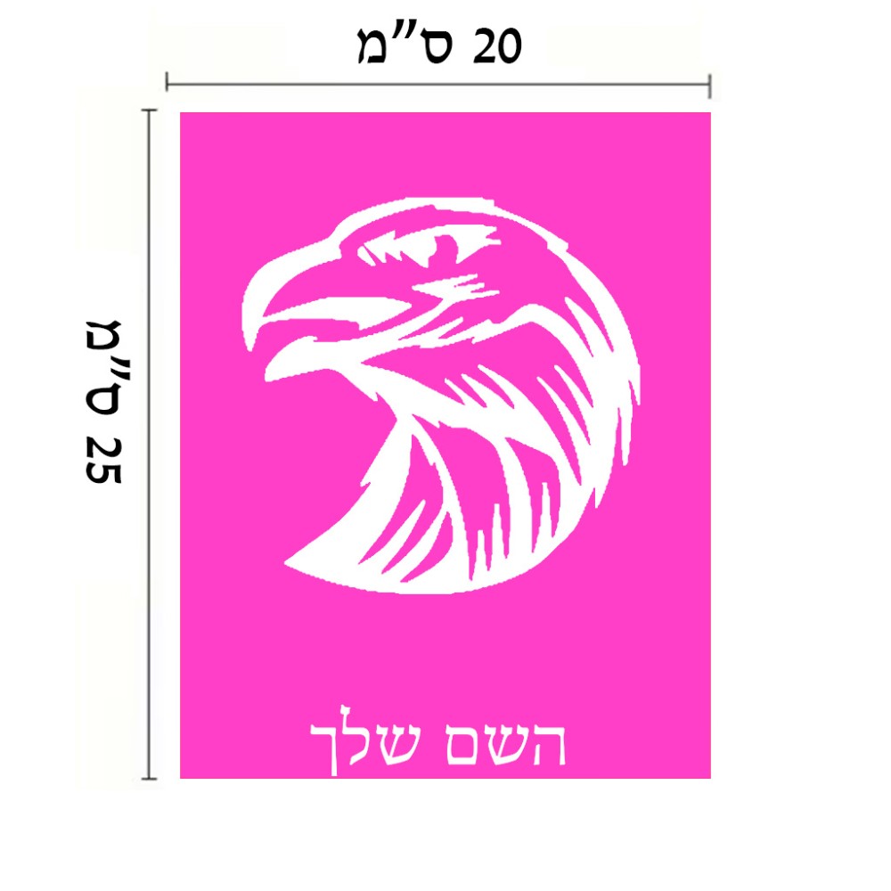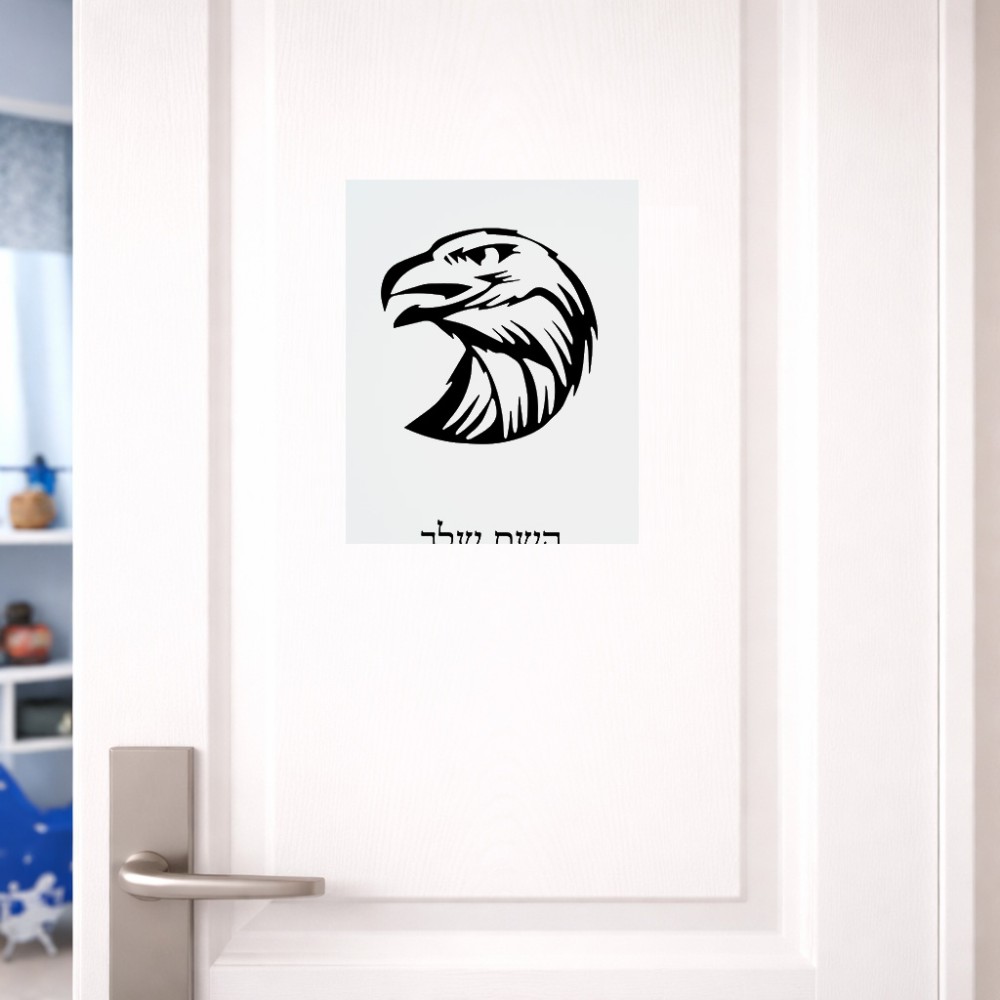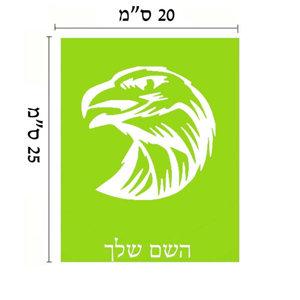 שלט אלומיניום גדול לחדר בעיצוב אישי עם השם שלך בעיצוב ראש נשר גודל השלט 20 × 25 ס"מ. את השם המבוקש ניתן לציין בהזמנה, אם לא צויין אנחנו ניצור קשר לבירור.