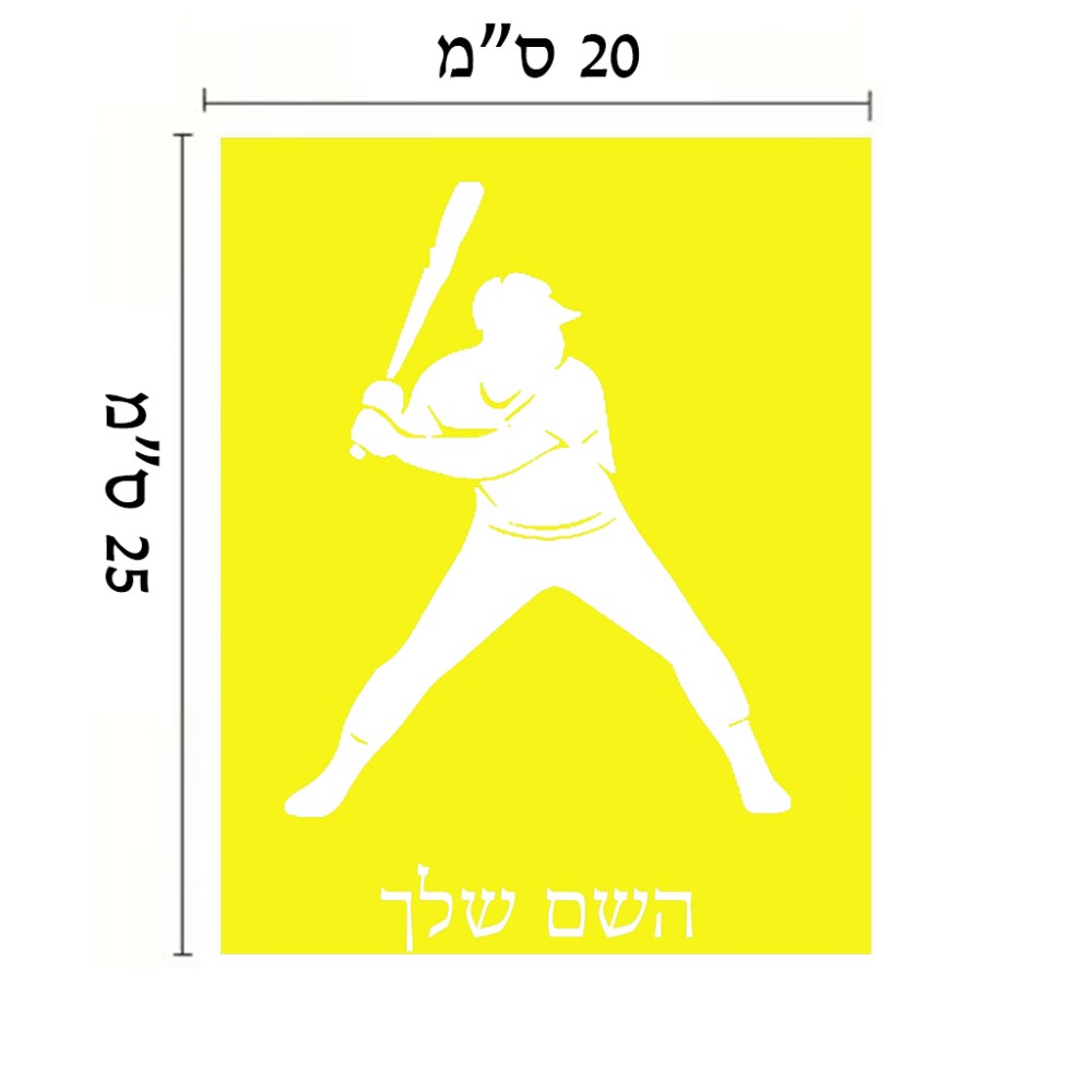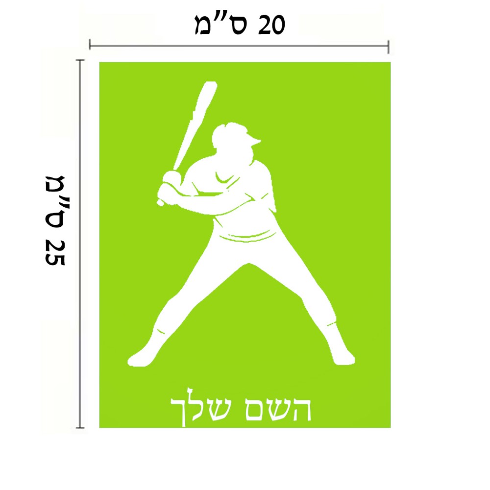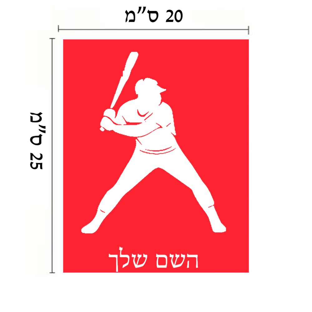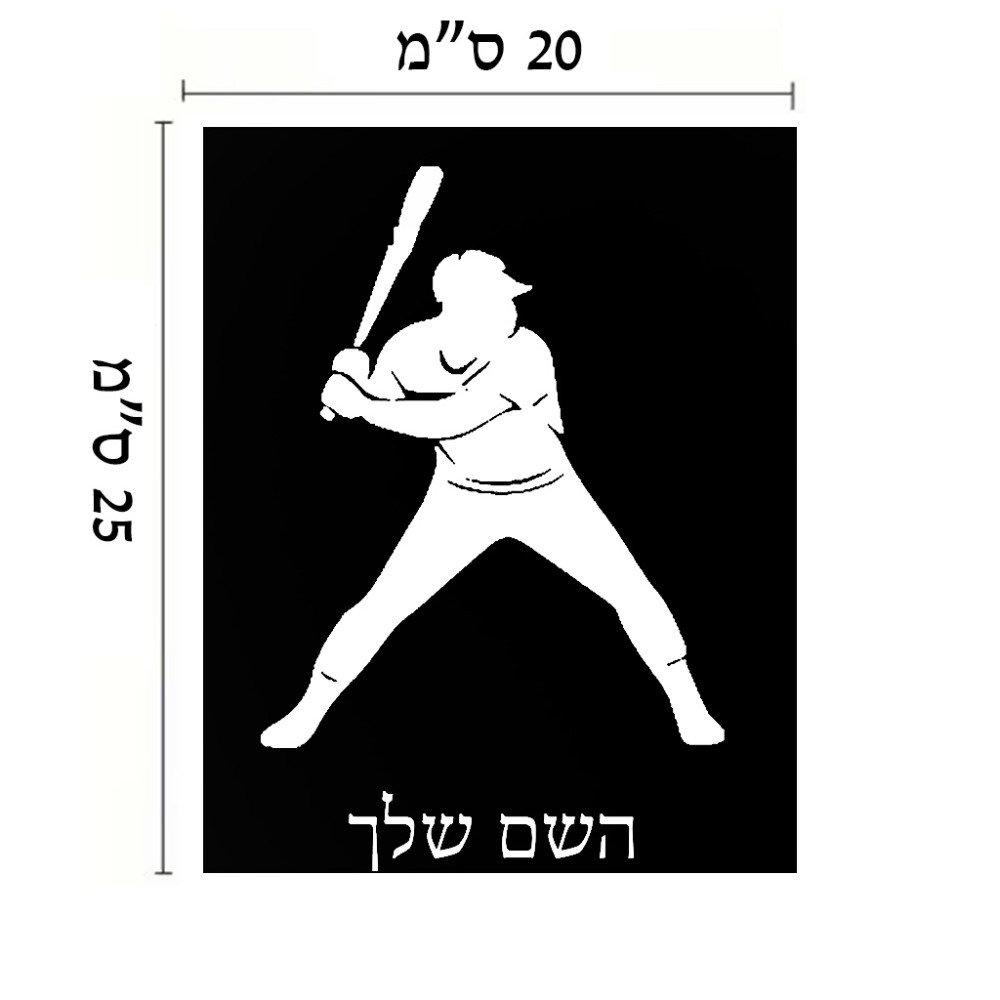 שלט אלומיניום גדול לחדר בעיצוב אישי עם השם שלך בעיצוב שחקן בייסבול גודל השלט 20 × 25 ס"מ. את השם המבוקש ניתן לציין בהזמנה, אם לא צויין אנחנו ניצור קשר לבירור.