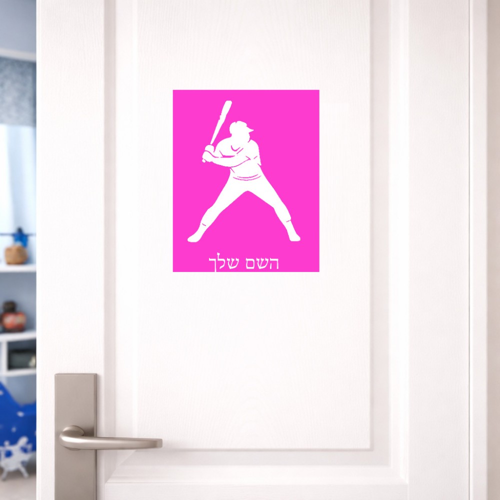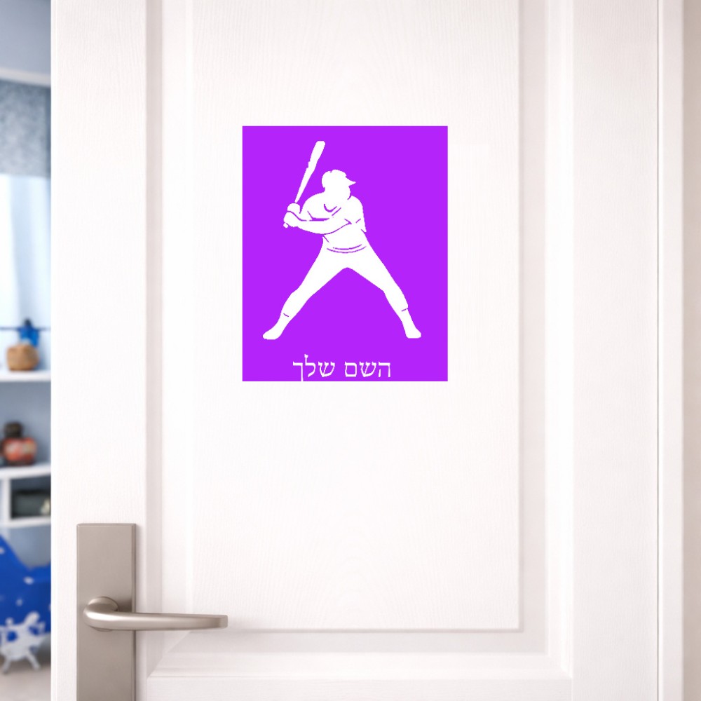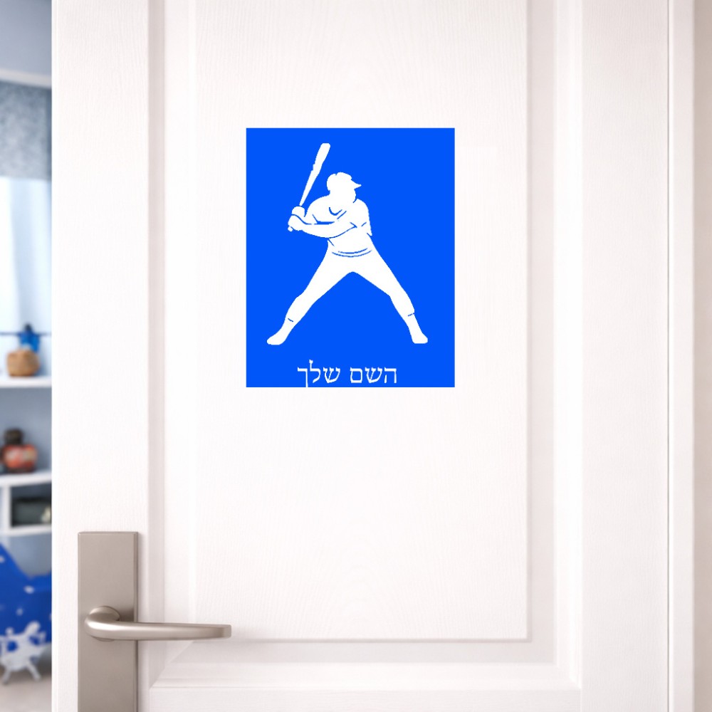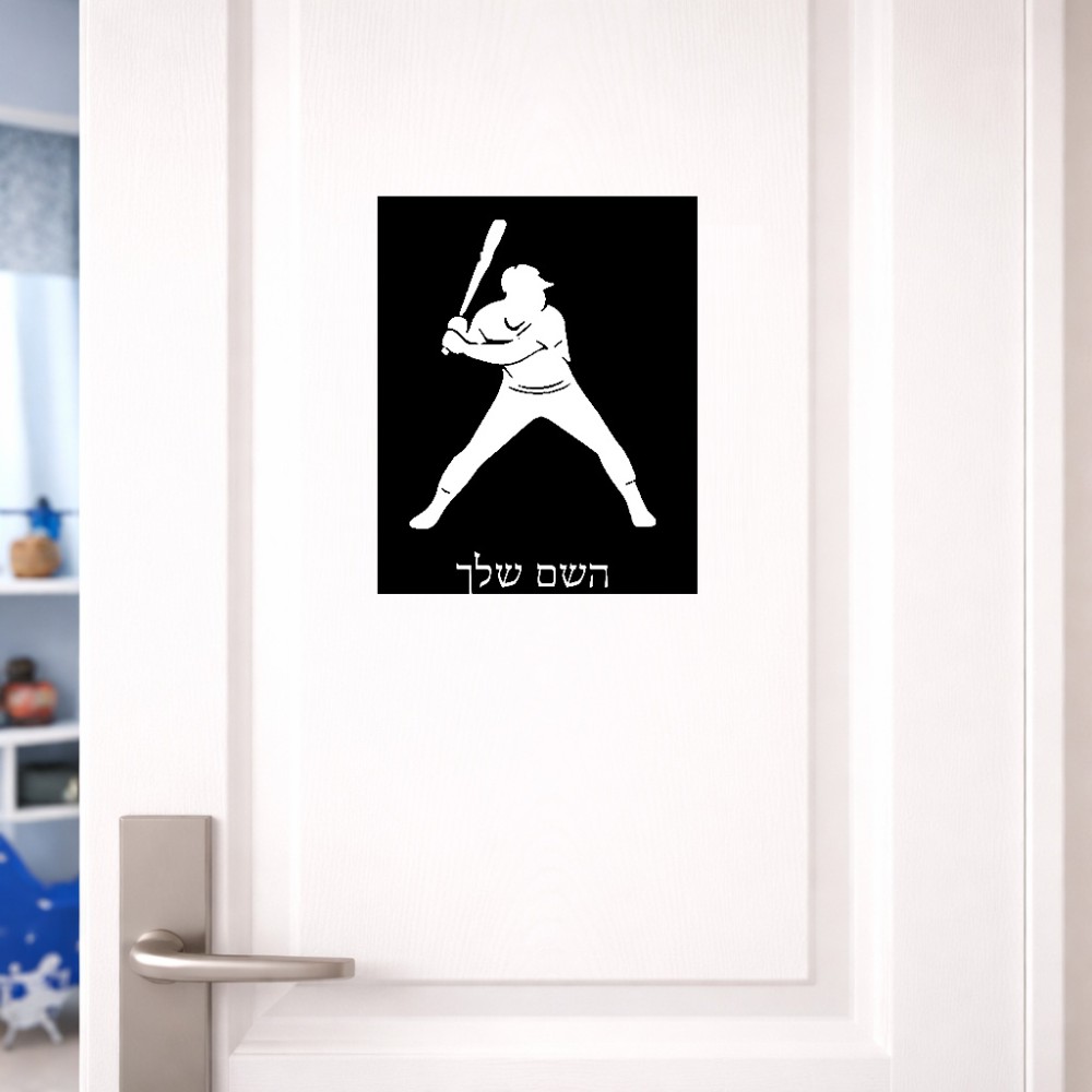 שלט אלומיניום גדול לחדר בעיצוב אישי עם השם שלך בעיצוב שחקן בייסבול גודל השלט 20 × 25 ס"מ. את השם המבוקש ניתן לציין בהזמנה, אם לא צויין אנחנו ניצור קשר לבירור.