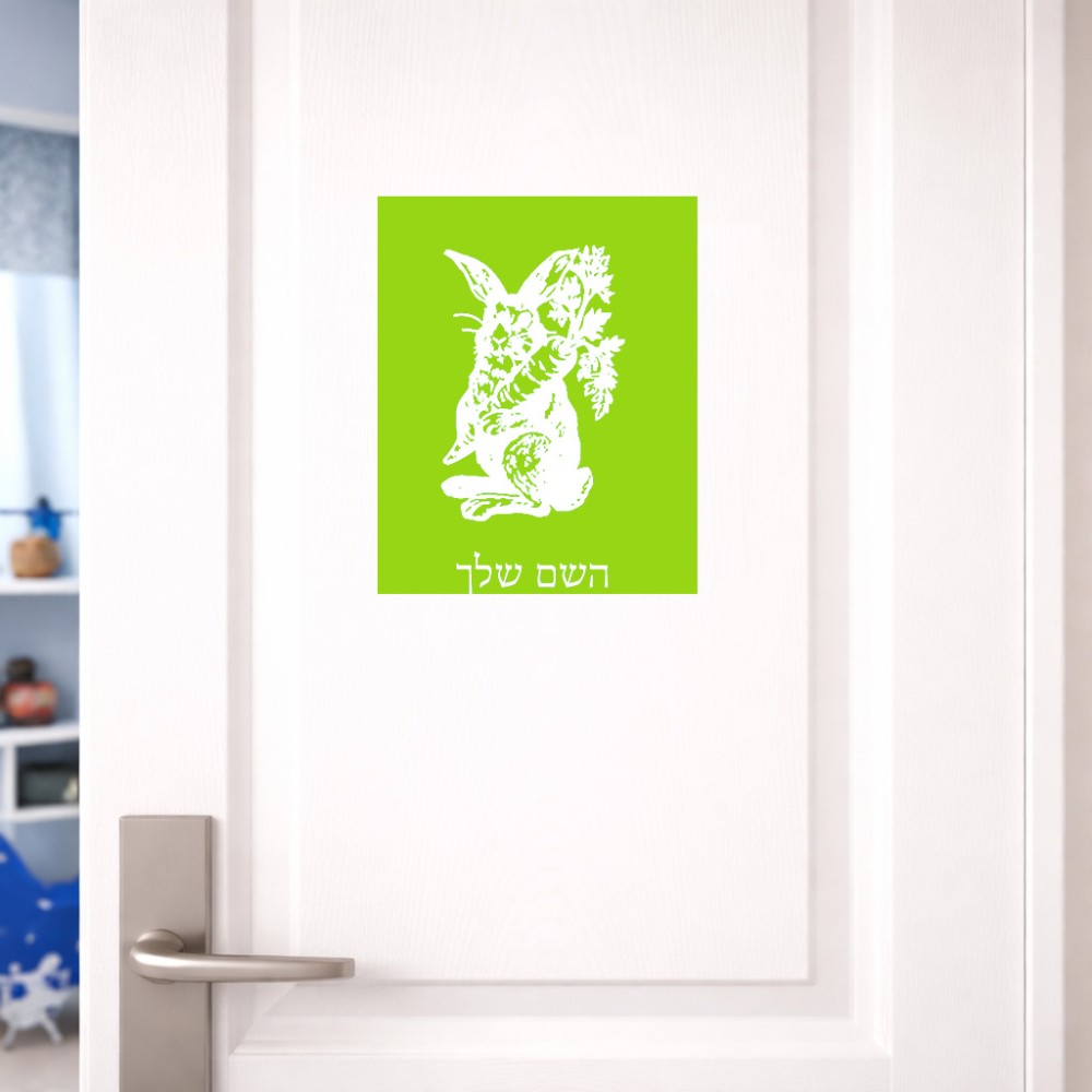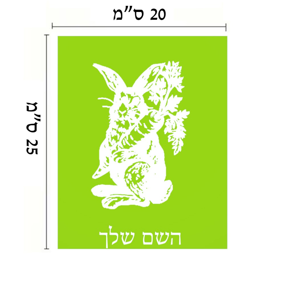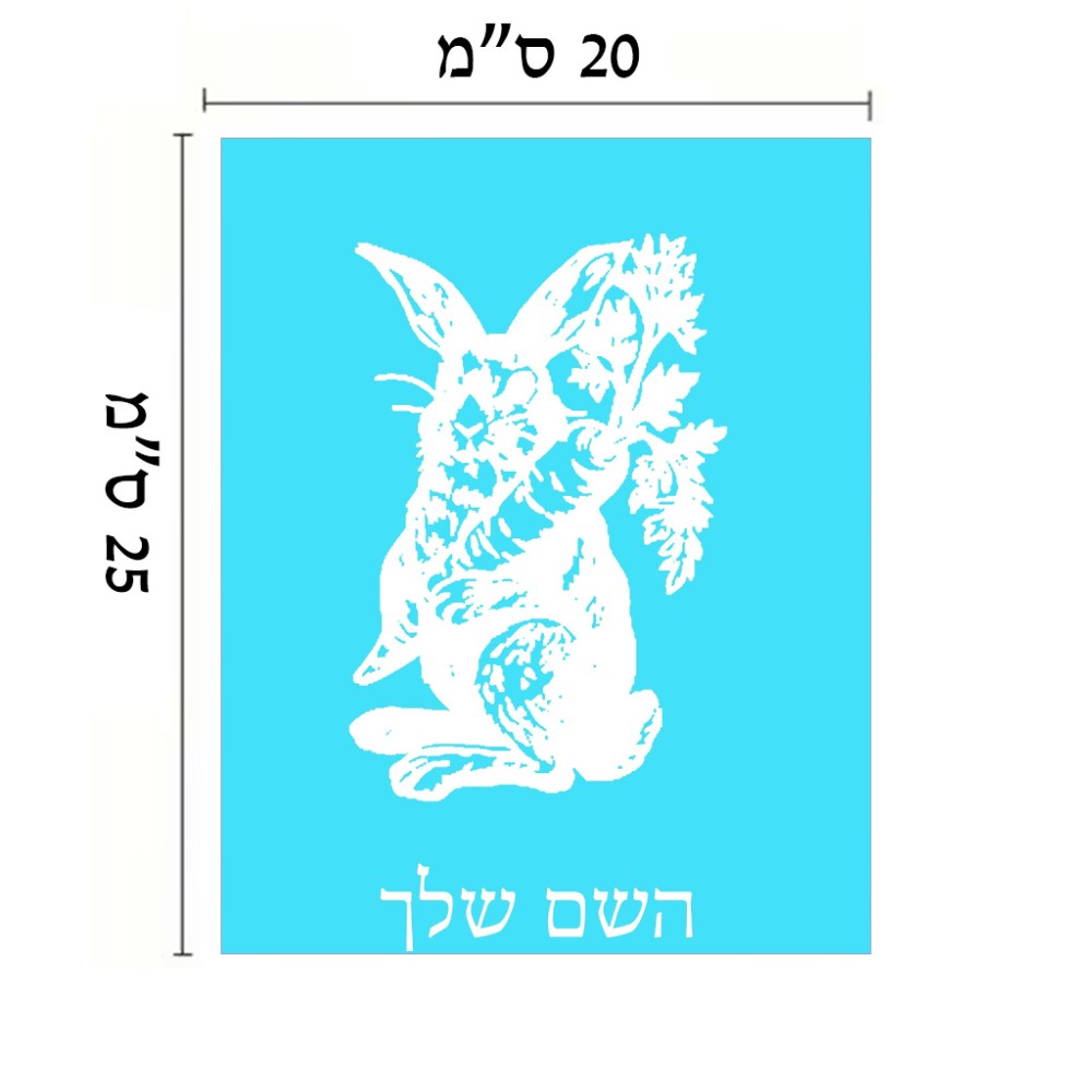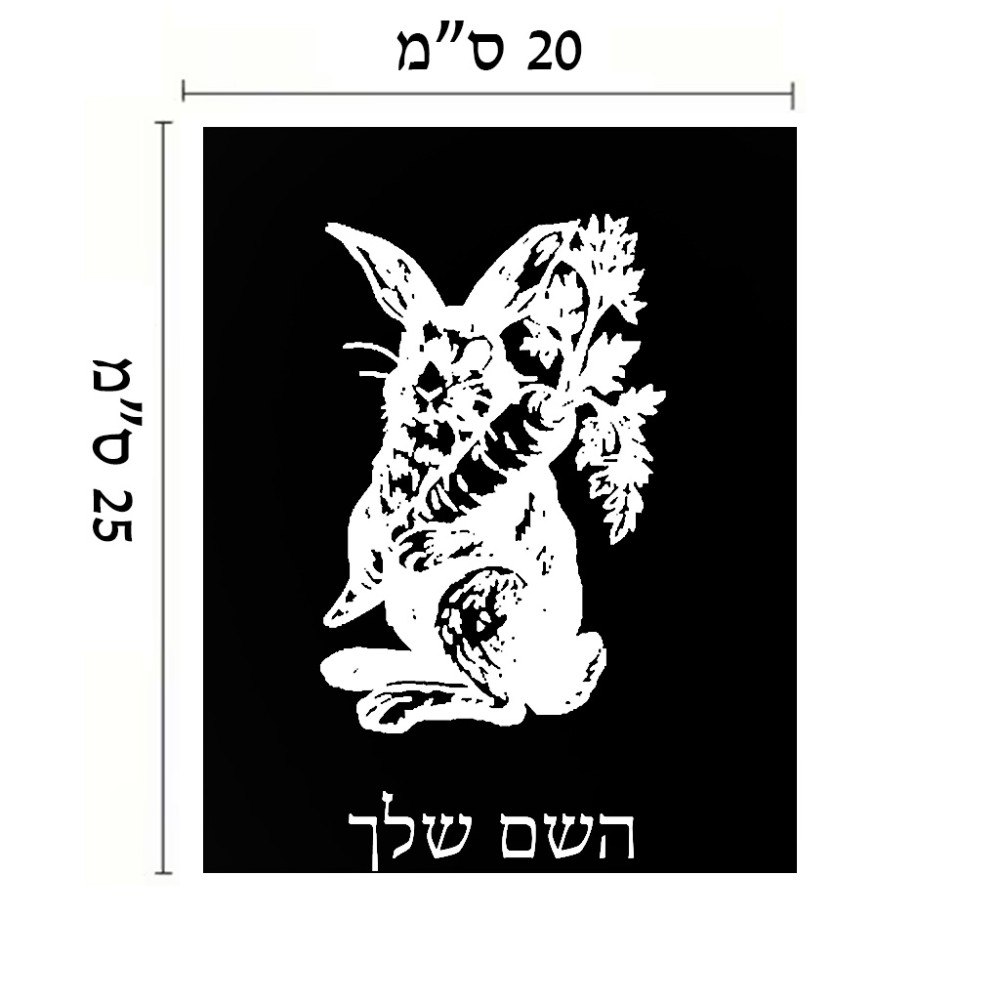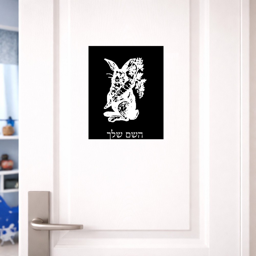 שלט אלומיניום גדול לחדר בעיצוב אישי עם השם שלך בעיצוב ארנב מחזיק גזר גודל השלט 20 × 25 ס"מ. את השם המבוקש ניתן לציין בהזמנה, אם לא צויין אנחנו ניצור קשר לבירור.