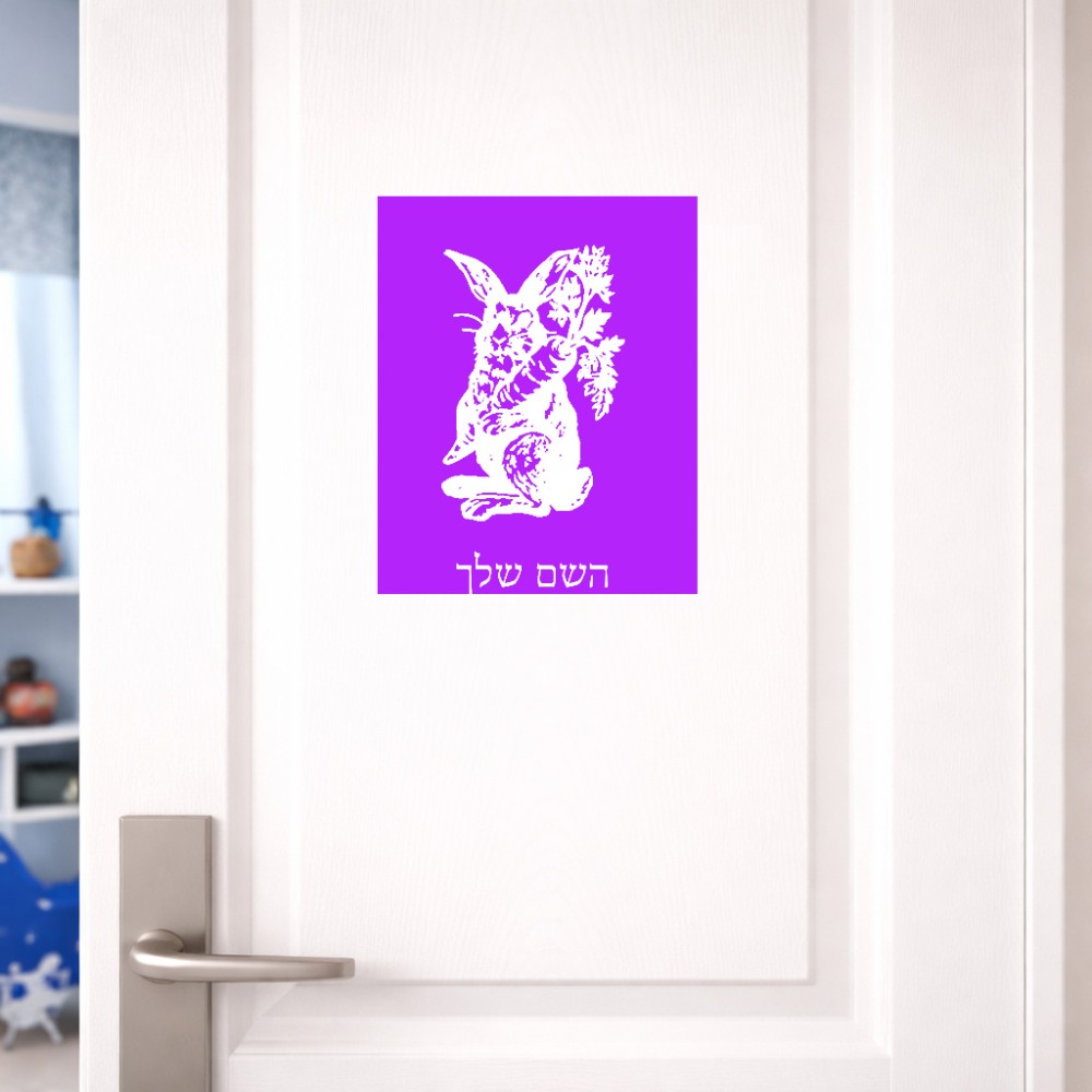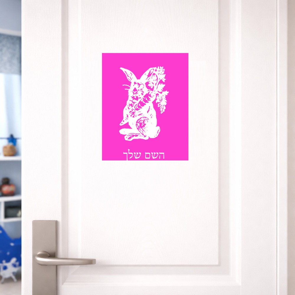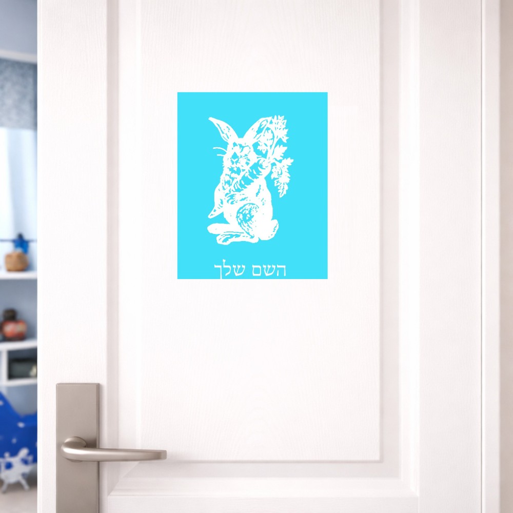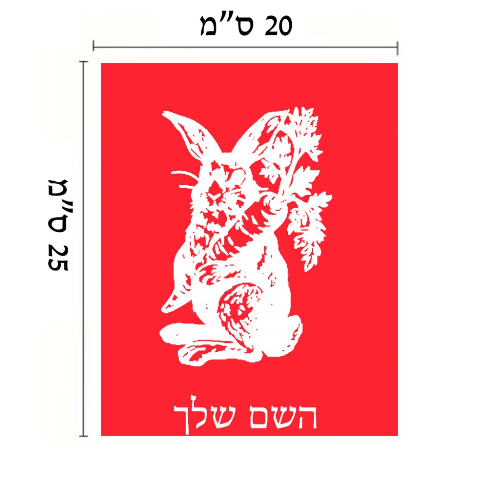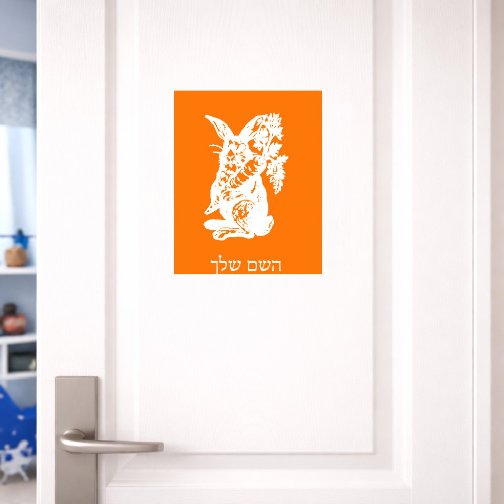 שלט אלומיניום גדול לחדר בעיצוב אישי עם השם שלך בעיצוב ארנב מחזיק גזר גודל השלט 20 × 25 ס"מ. את השם המבוקש ניתן לציין בהזמנה, אם לא צויין אנחנו ניצור קשר לבירור.