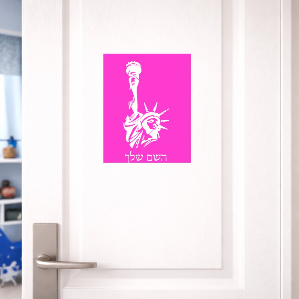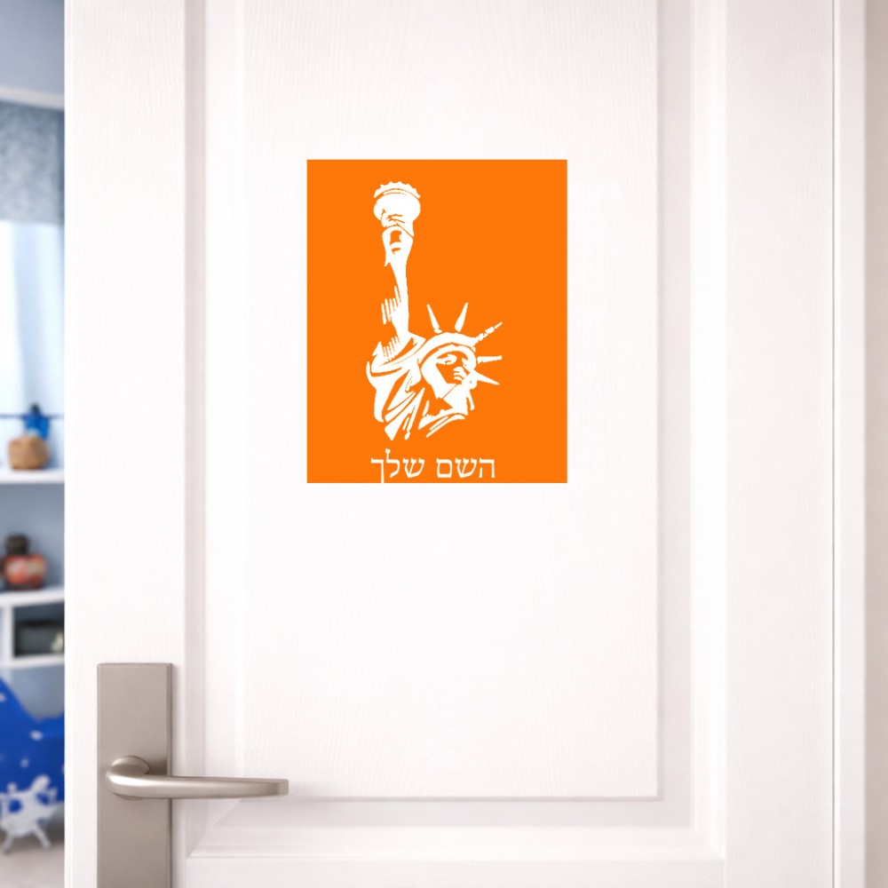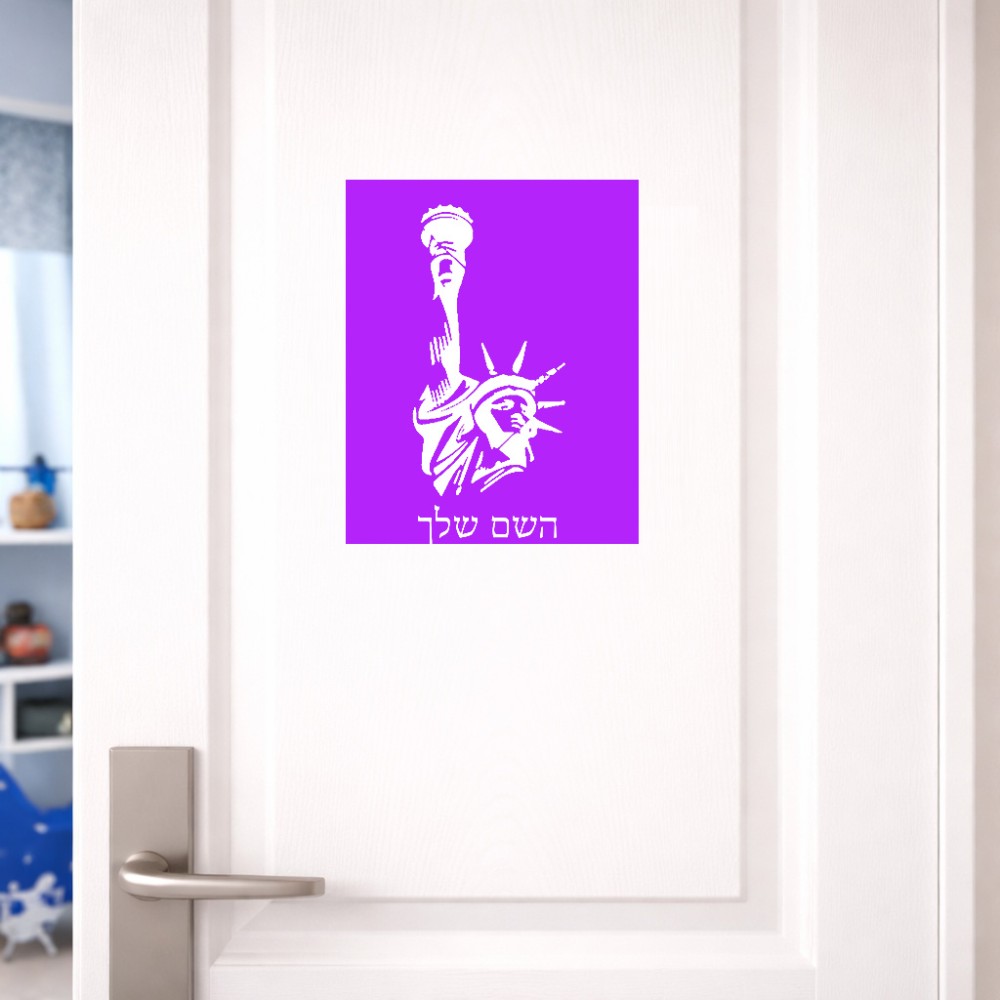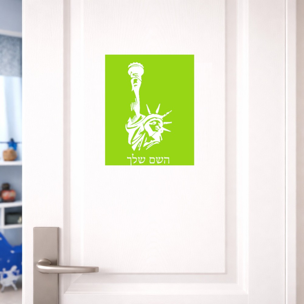 שלט אלומיניום גדול לחדר בעיצוב אישי עם השם שלך בעיצוב פסל החירות גודל השלט 20 × 25 ס"מ. את השם המבוקש ניתן לציין בהזמנה, אם לא צויין אנחנו ניצור קשר לבירור.
