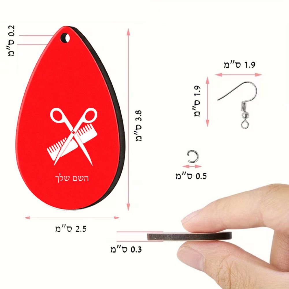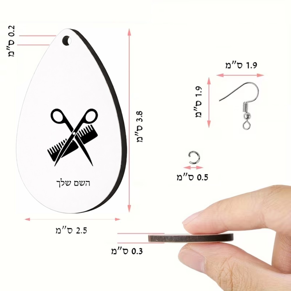 זוג עגילים בצורת טיפה בעיצוב אישי עם השם שלך בעיצוב מעצב שיער גודל העגילים 2.5 × 3.8 ס"מ. את השם המבוקש ניתן לציין בהזמנה, אם לא צויין אנחנו ניצור קשר לבירור.