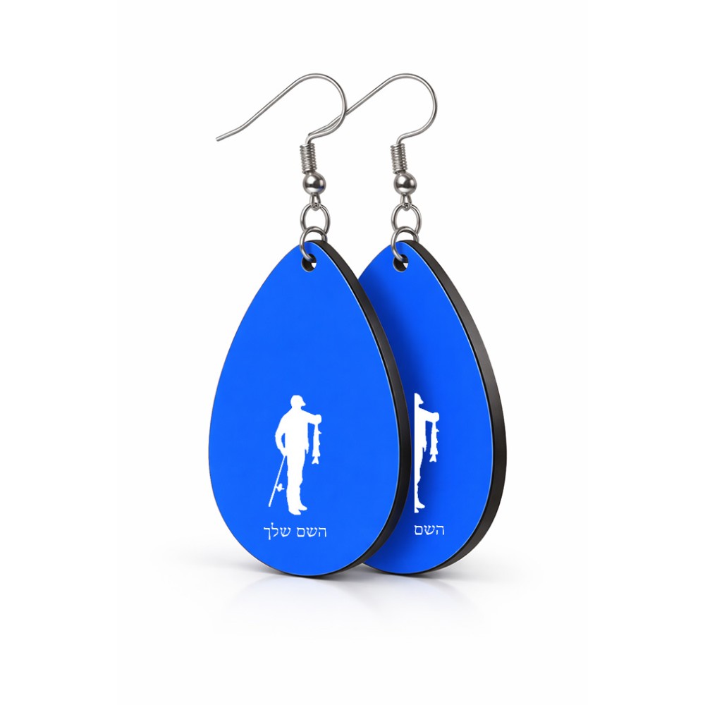 זוג עגילים בצורת טיפה בעיצוב אישי עם השם שלך בעיצוב פישמן גודל העגילים 2.5 × 3.8 ס"מ. את השם המבוקש ניתן לציין בהזמנה, אם לא צויין אנחנו ניצור קשר לבירור.