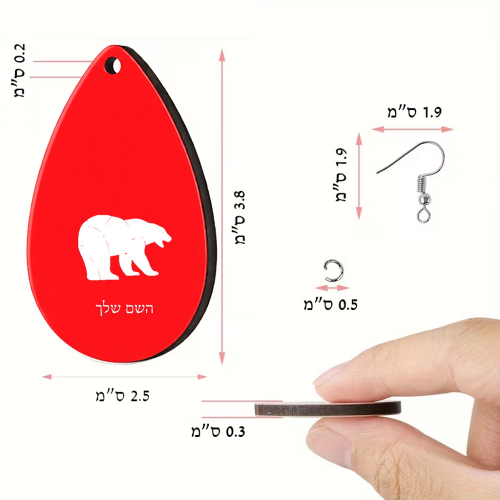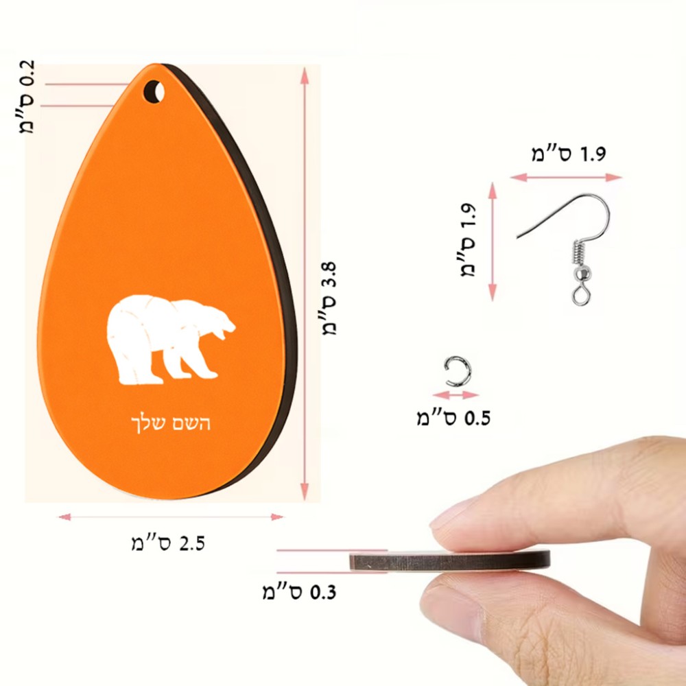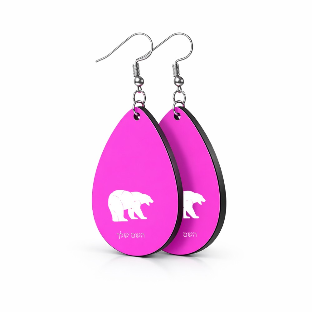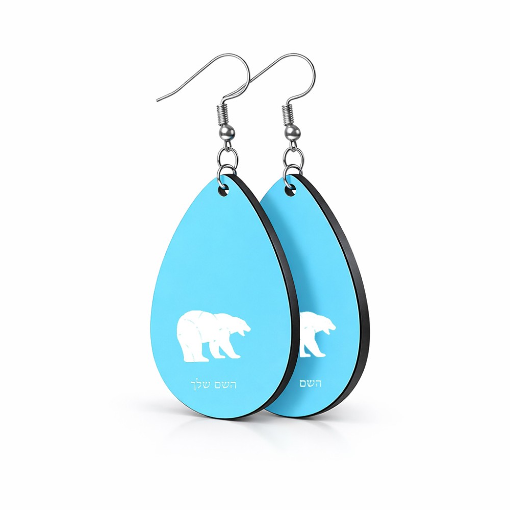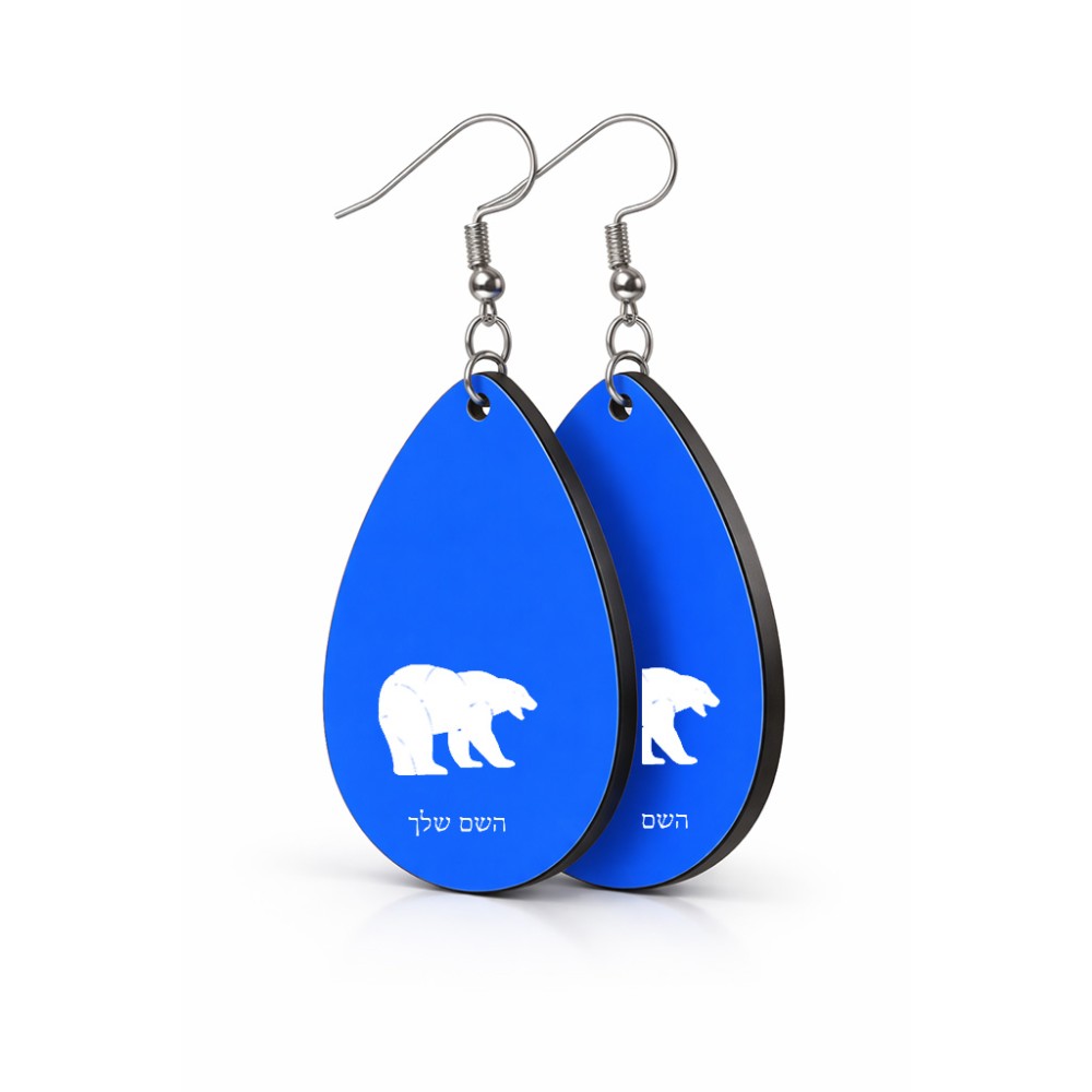 זוג עגילים בצורת טיפה בעיצוב אישי עם השם שלך בעיצוב דוב גודל העגילים 2.5 × 3.8 ס"מ. את השם המבוקש ניתן לציין בהזמנה, אם לא צויין אנחנו ניצור קשר לבירור.