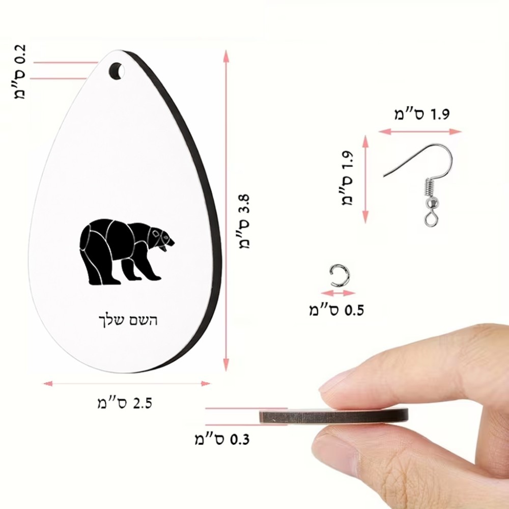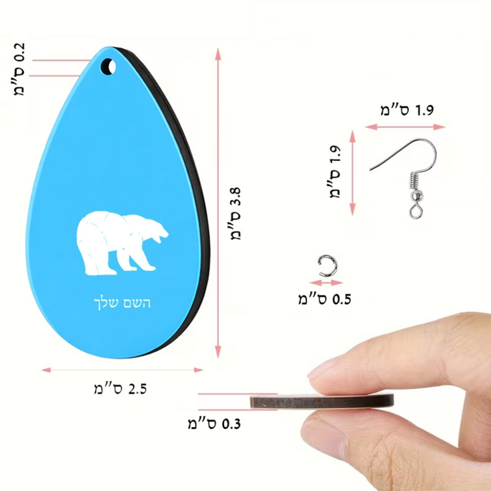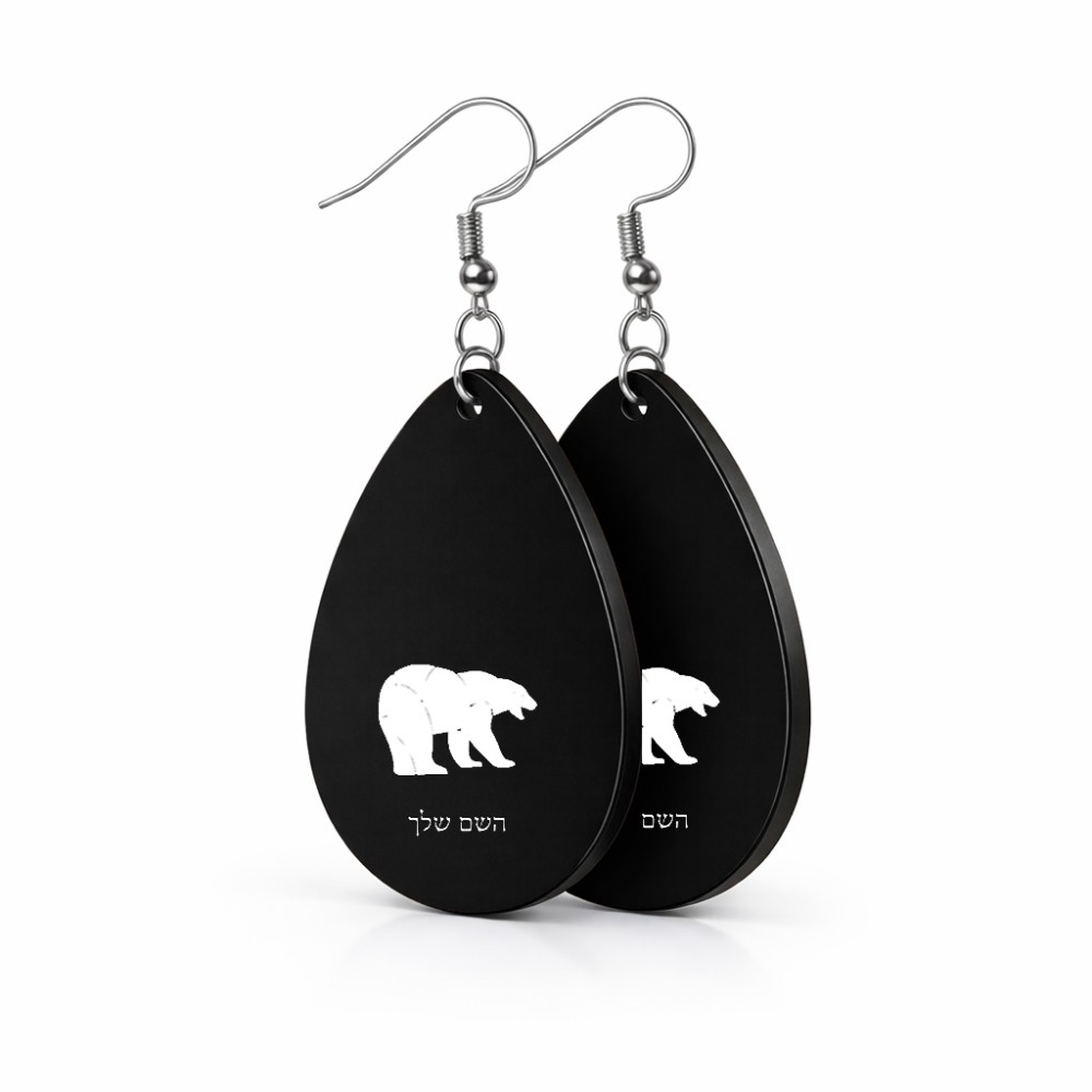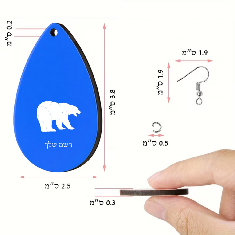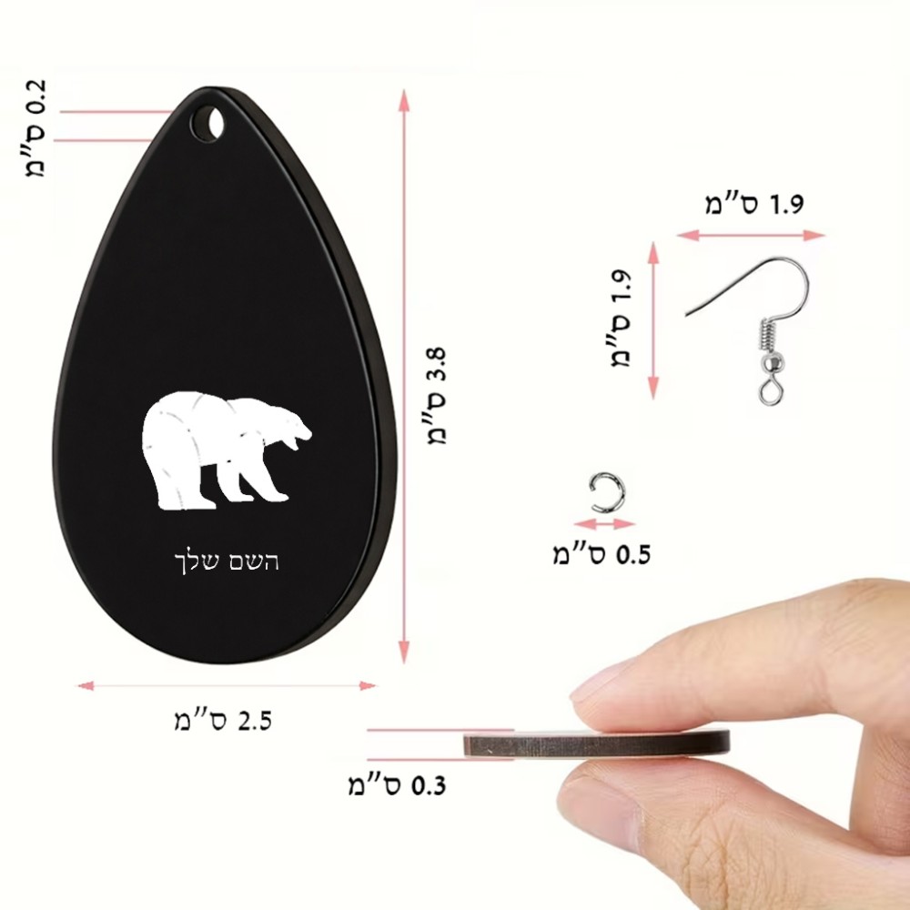 זוג עגילים בצורת טיפה בעיצוב אישי עם השם שלך בעיצוב דוב גודל העגילים 2.5 × 3.8 ס"מ. את השם המבוקש ניתן לציין בהזמנה, אם לא צויין אנחנו ניצור קשר לבירור.