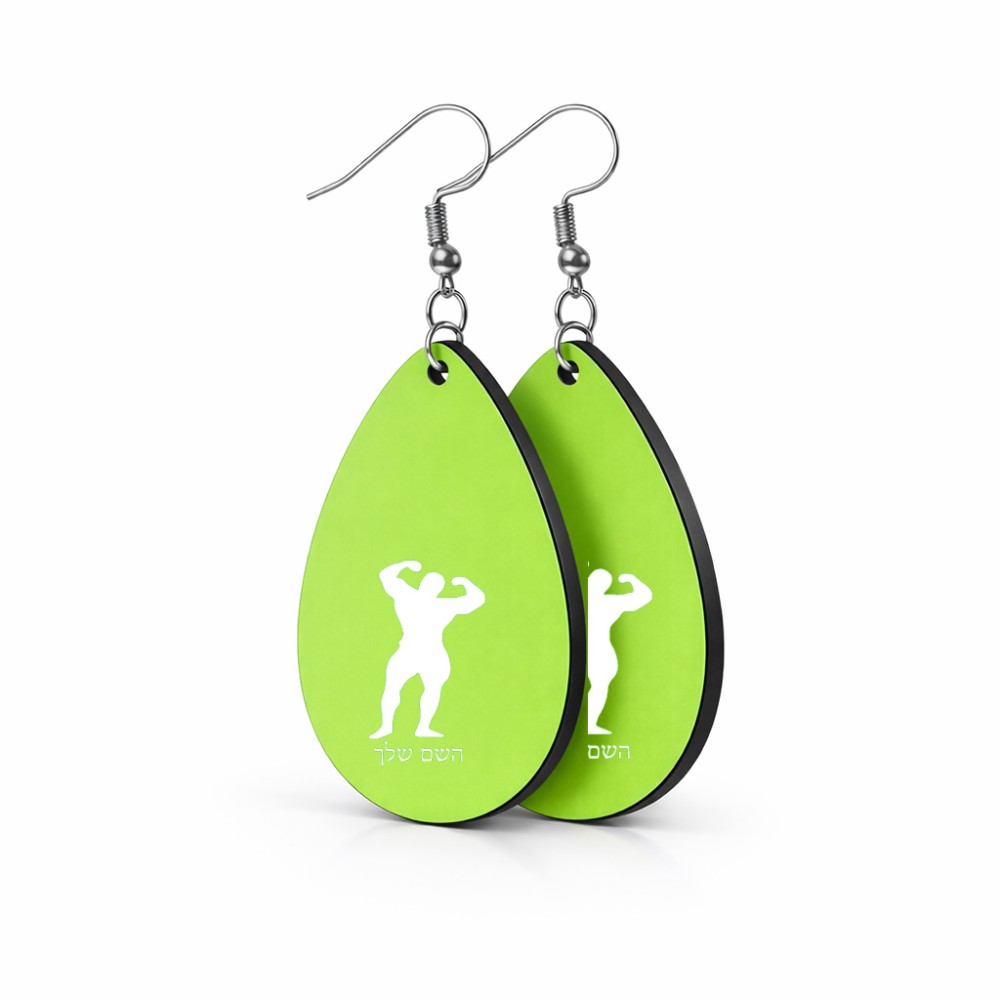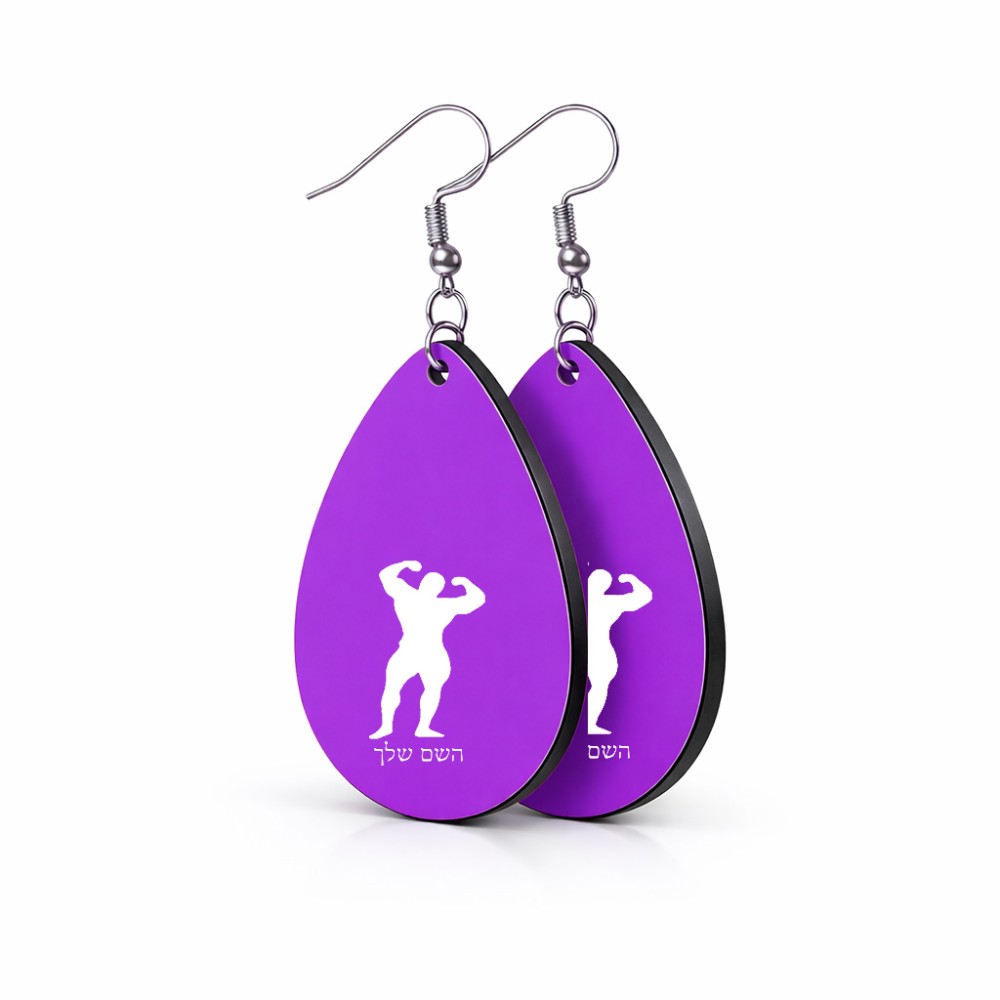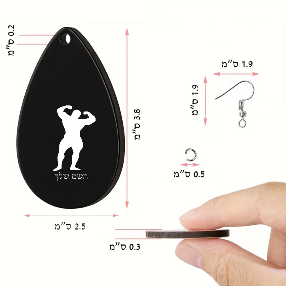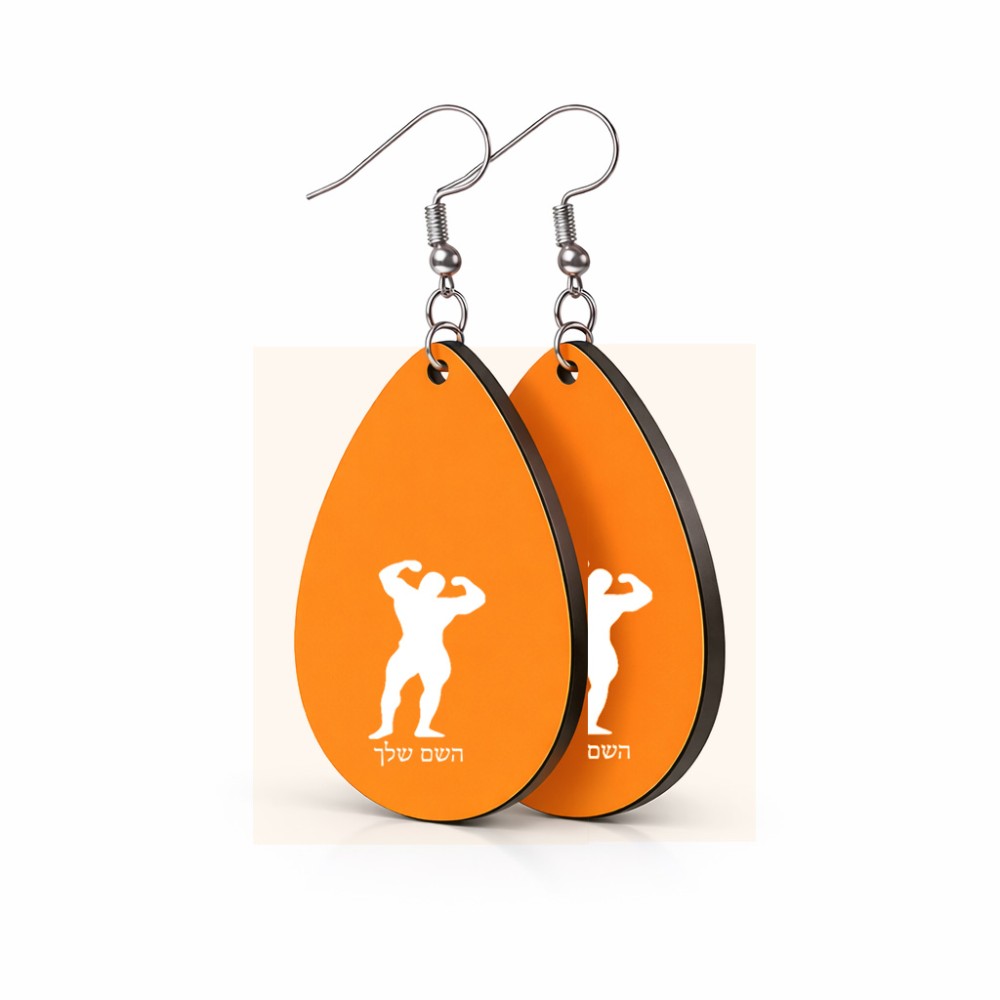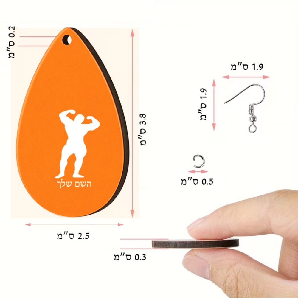 זוג עגילים בצורת טיפה בעיצוב אישי עם השם שלך בעיצוב פיתוח גוף גודל העגילים 2.5 × 3.8 ס"מ. את השם המבוקש ניתן לציין בהזמנה, אם לא צויין אנחנו ניצור קשר לבירור.