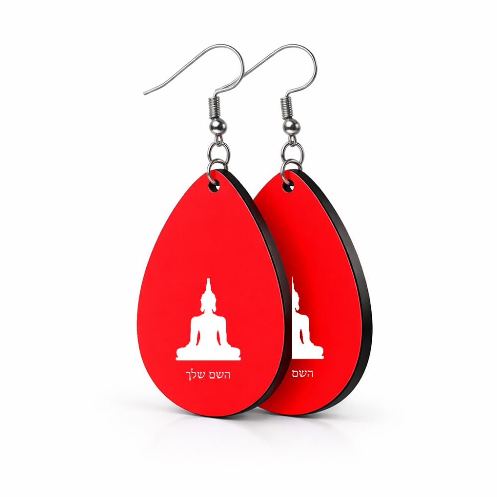 זוג עגילים בצורת טיפה בעיצוב אישי עם השם שלך בעיצוב בודה גודל העגילים 2.5 × 3.8 ס"מ. את השם המבוקש ניתן לציין בהזמנה, אם לא צויין אנחנו ניצור קשר לבירור.