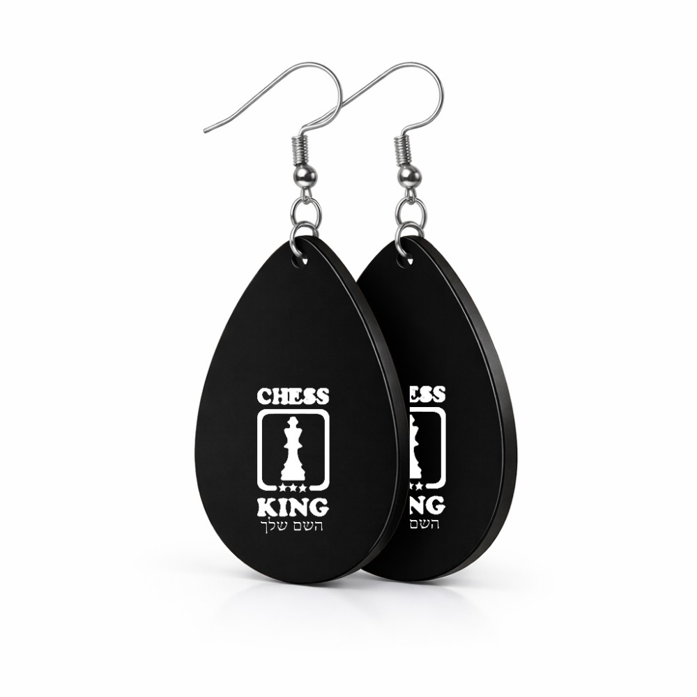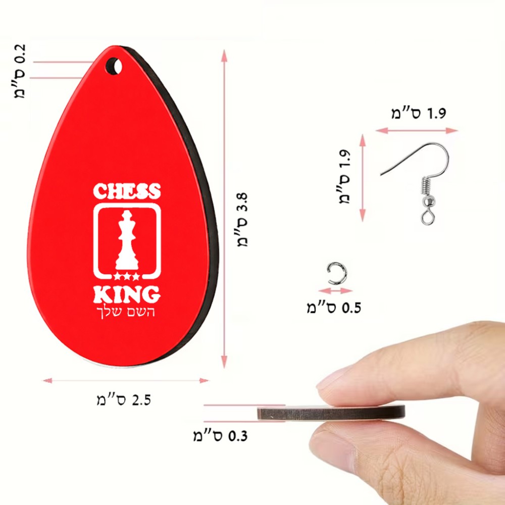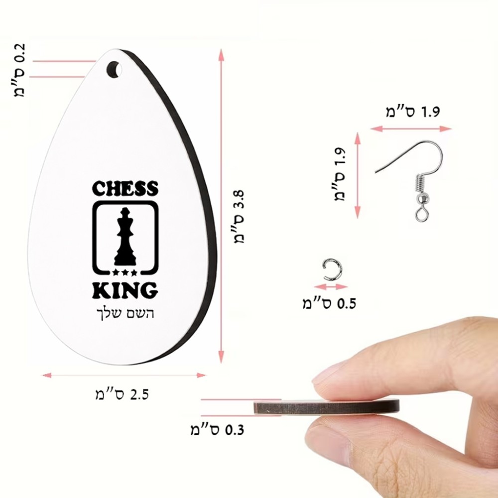 זוג עגילים בצורת טיפה בעיצוב אישי עם השם שלך בעיצוב שחמט גודל העגילים 2.5 × 3.8 ס"מ