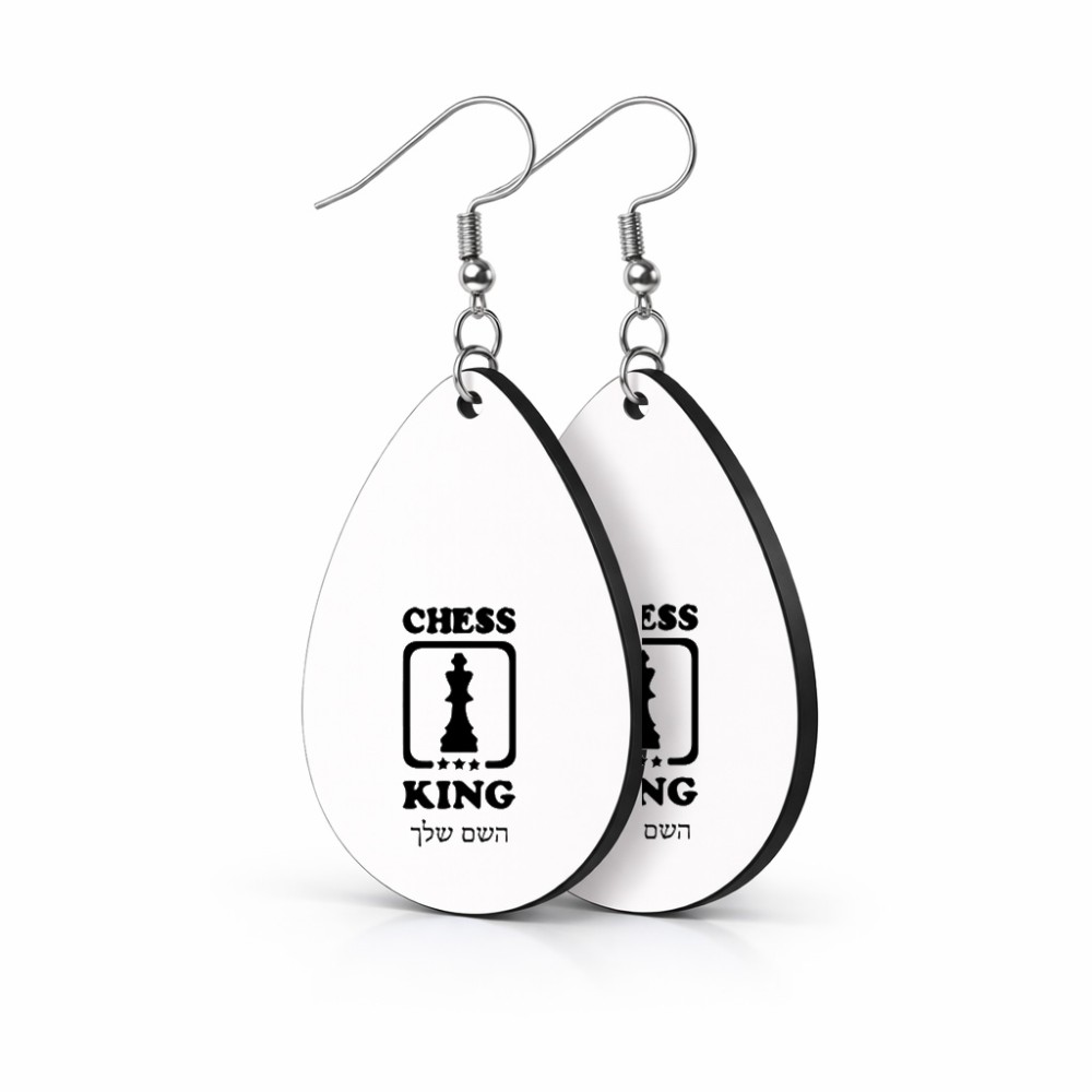 זוג עגילים בצורת טיפה בעיצוב אישי עם השם שלך בעיצוב שחמט גודל העגילים 2.5 × 3.8 ס"מ. את השם המבוקש ניתן לציין בהזמנה, אם לא צויין אנחנו ניצור קשר לבירור.