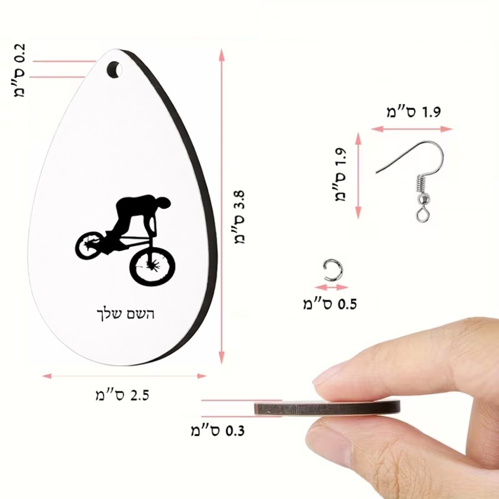 זוג עגילים בצורת טיפה בעיצוב אישי עם השם שלך בעיצוב רוכב אופניים גודל העגילים 2.5 × 3.8 ס"מ