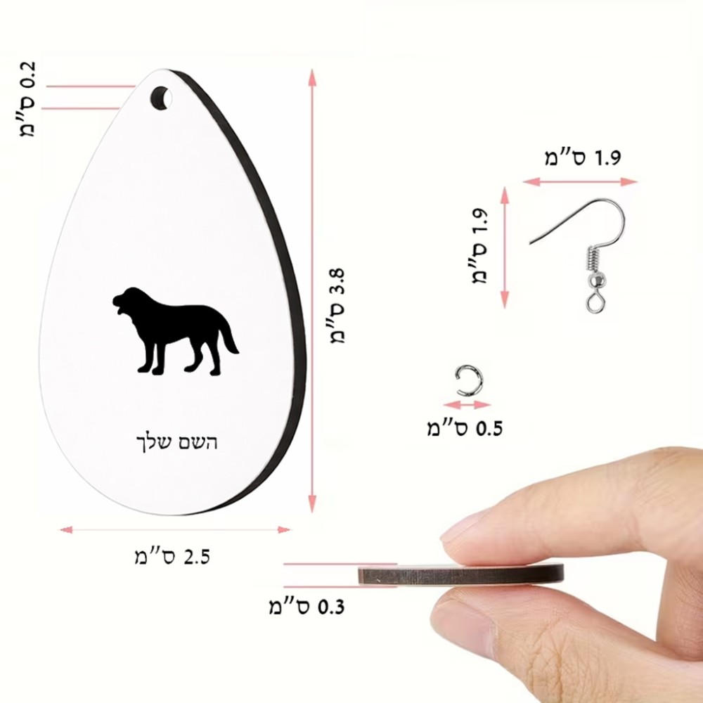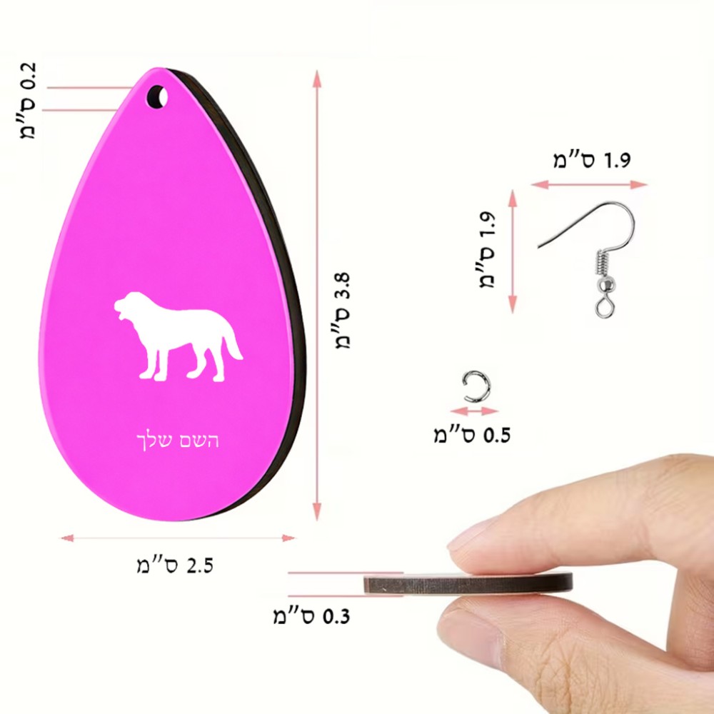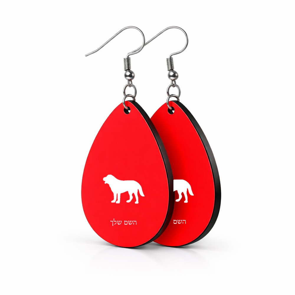 זוג עגילים בצורת טיפה בעיצוב אישי עם השם שלך בעיצוב כלב גודל העגילים 2.5 × 3.8 ס"מ. את השם המבוקש ניתן לציין בהזמנה, אם לא צויין אנחנו ניצור קשר לבירור.