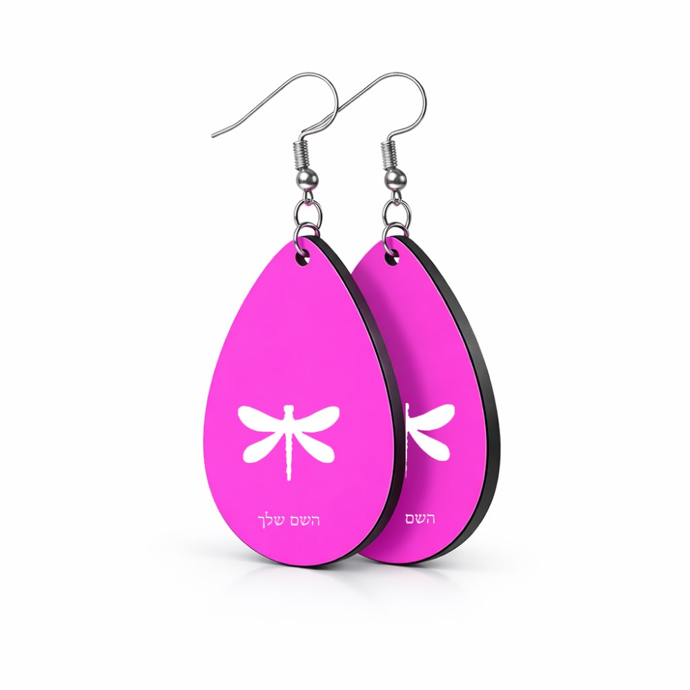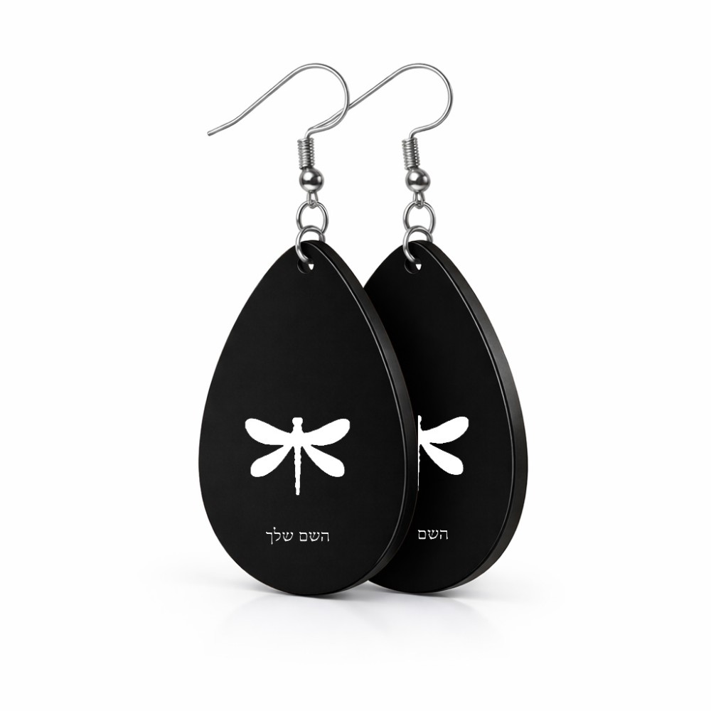 זוג עגילים בצורת טיפה בעיצוב אישי עם השם שלך בעיצוב שפירית גודל העגילים 2.5 × 3.8 ס"מ. את השם המבוקש ניתן לציין בהזמנה, אם לא צויין אנחנו ניצור קשר לבירור.