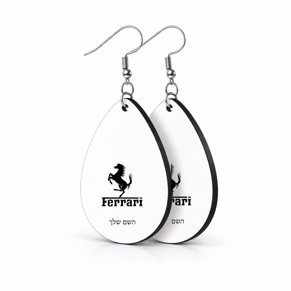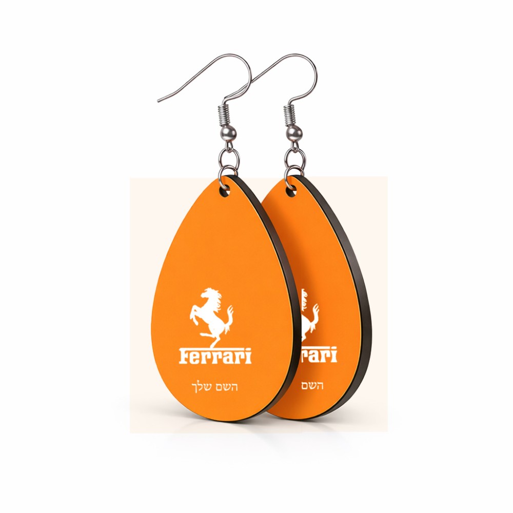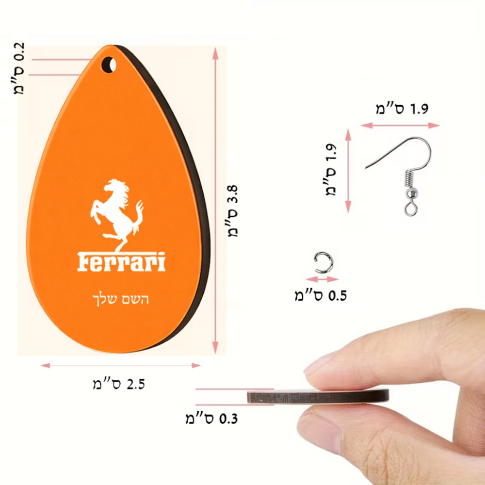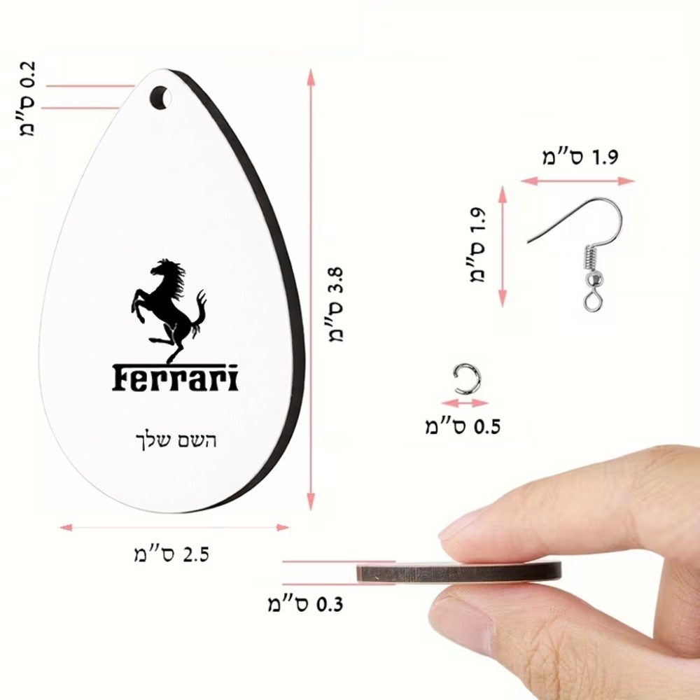 זוג עגילים בצורת טיפה בעיצוב אישי עם השם שלך בעיצוב פרארי גודל העגילים 2.5 × 3.8 ס"מ. את השם המבוקש ניתן לציין בהזמנה, אם לא צויין אנחנו ניצור קשר לבירור.
