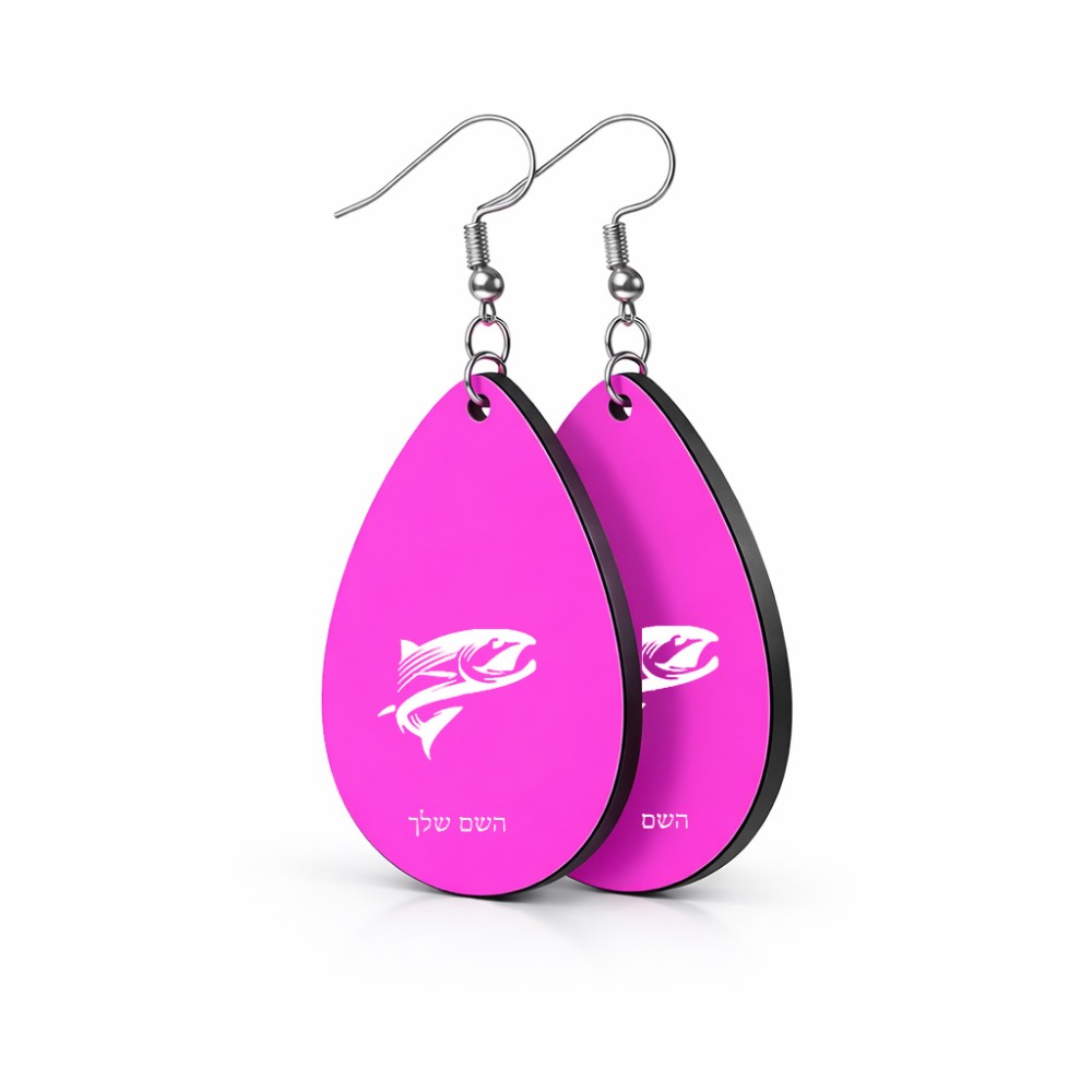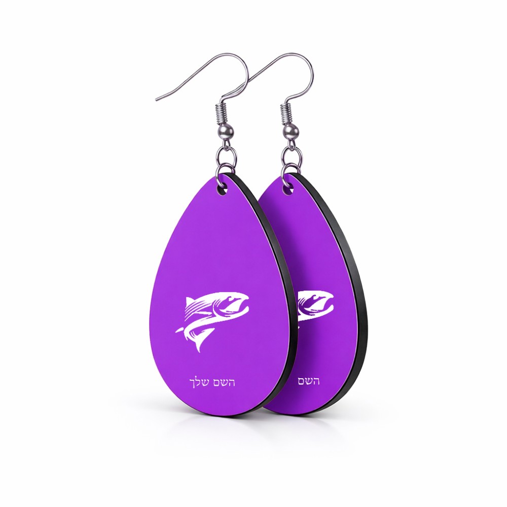 זוג עגילים בצורת טיפה בעיצוב אישי עם השם שלך בעיצוב לדוג גודל העגילים 2.5 × 3.8 ס"מ. את השם המבוקש ניתן לציין בהזמנה, אם לא צויין אנחנו ניצור קשר לבירור.