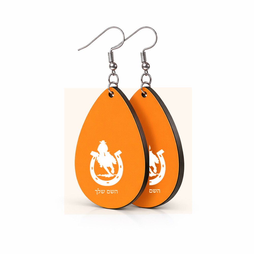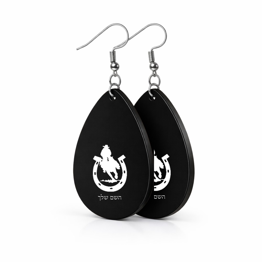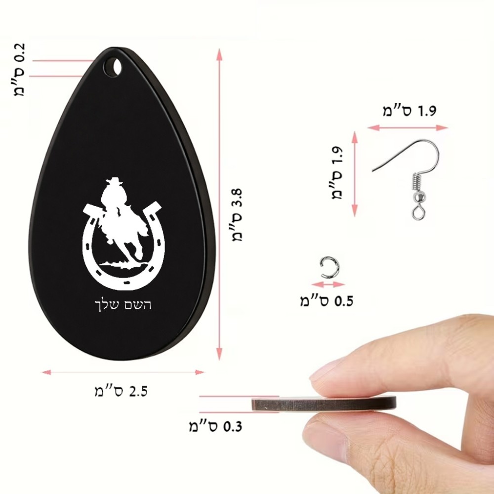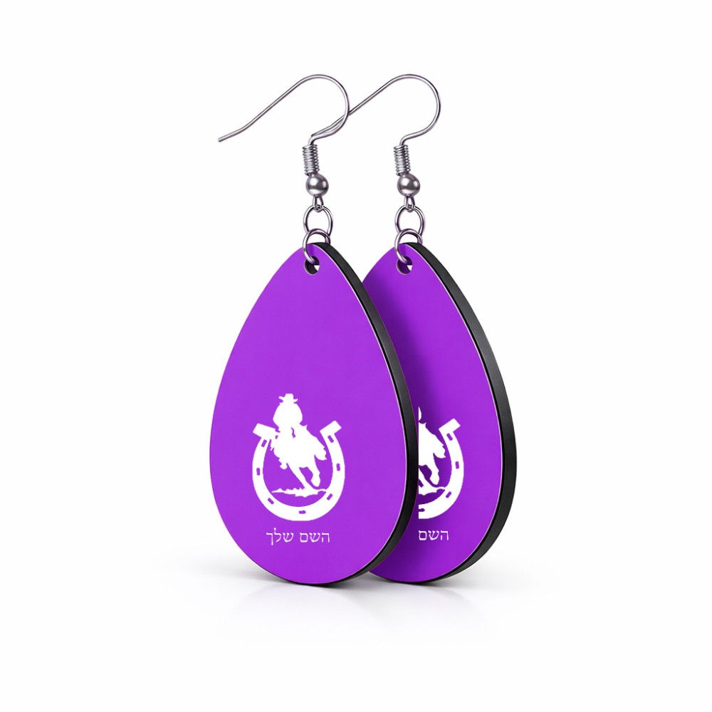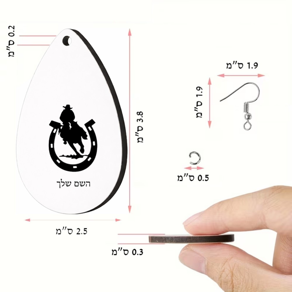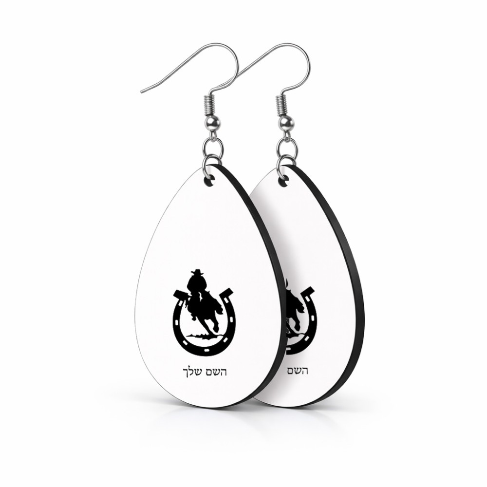 זוג עגילים בצורת טיפה בעיצוב אישי עם השם שלך בעיצוב פרסה וסוס גודל העגילים 2.5 × 3.8 ס"מ. את השם המבוקש ניתן לציין בהזמנה, אם לא צויין אנחנו ניצור קשר לבירור.