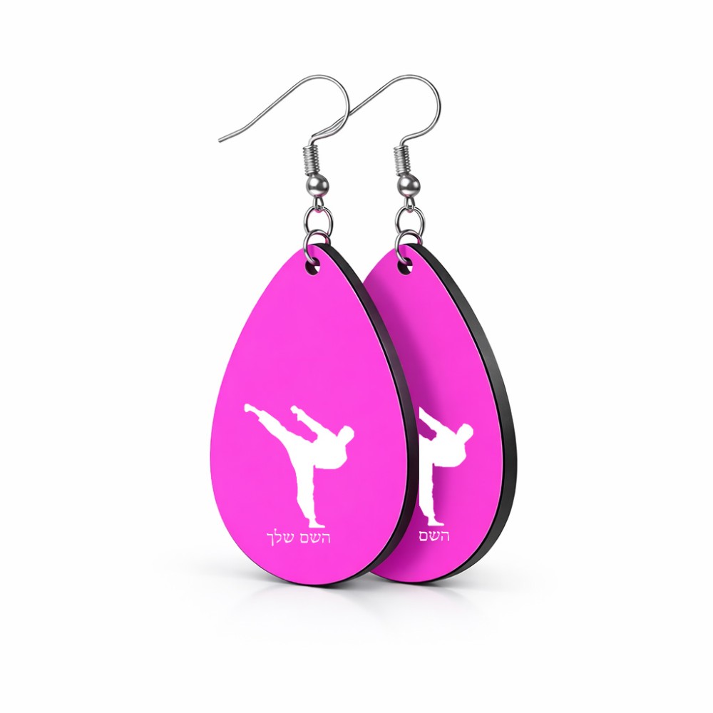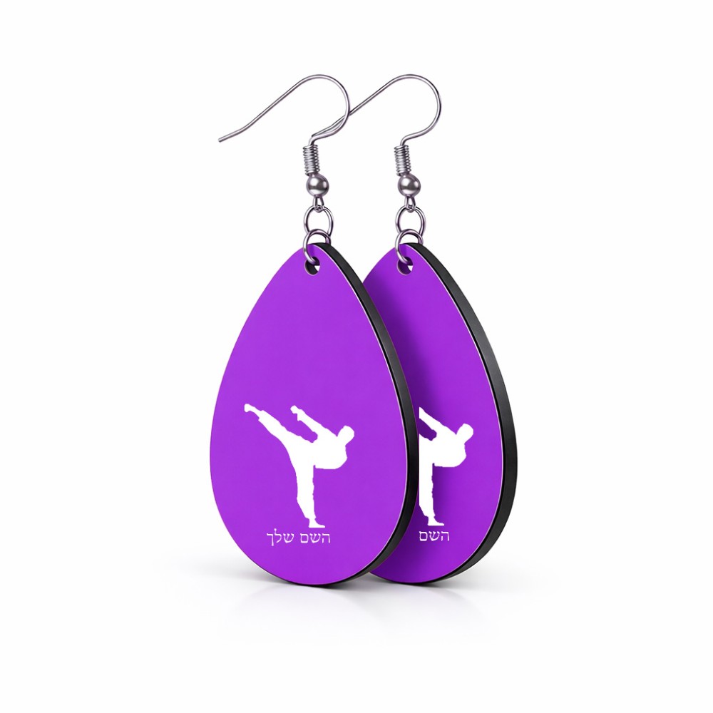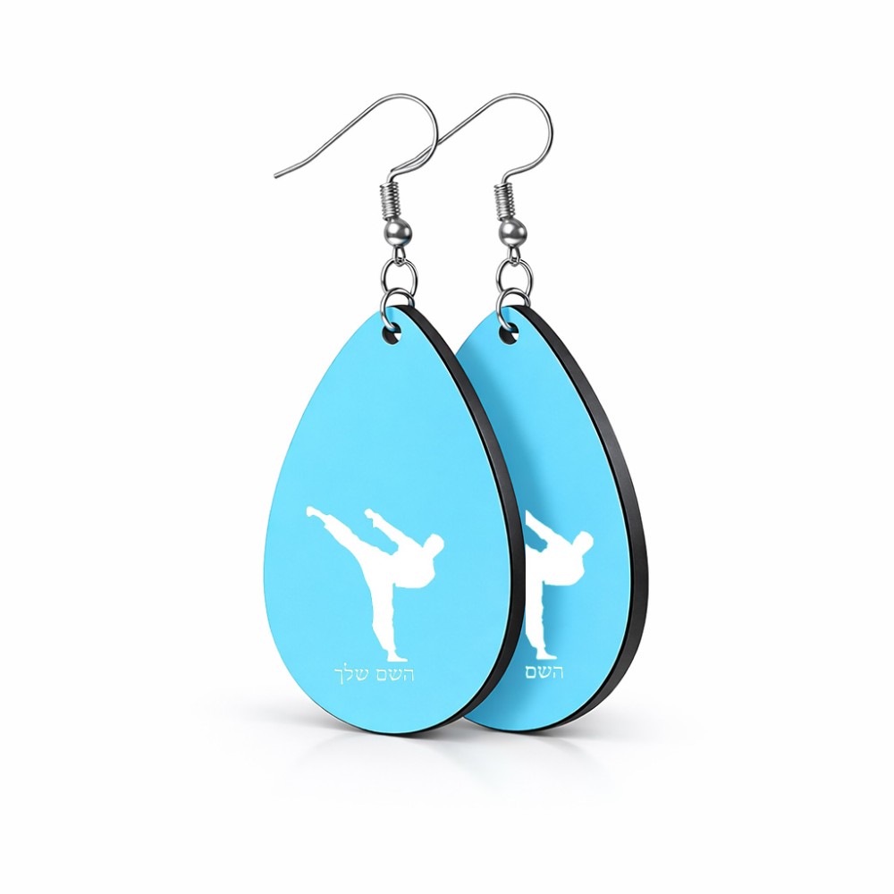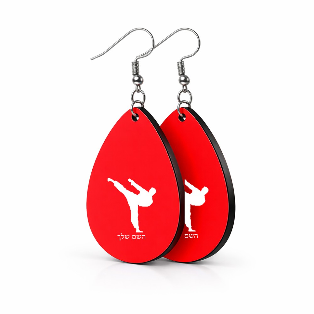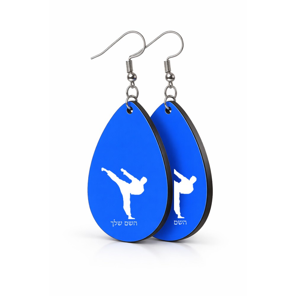 זוג עגילים בצורת טיפה בעיצוב אישי עם השם שלך בעיצוב קרטה גודל העגילים 2.5 × 3.8 ס"מ. את השם המבוקש ניתן לציין בהזמנה, אם לא צויין אנחנו ניצור קשר לבירור.