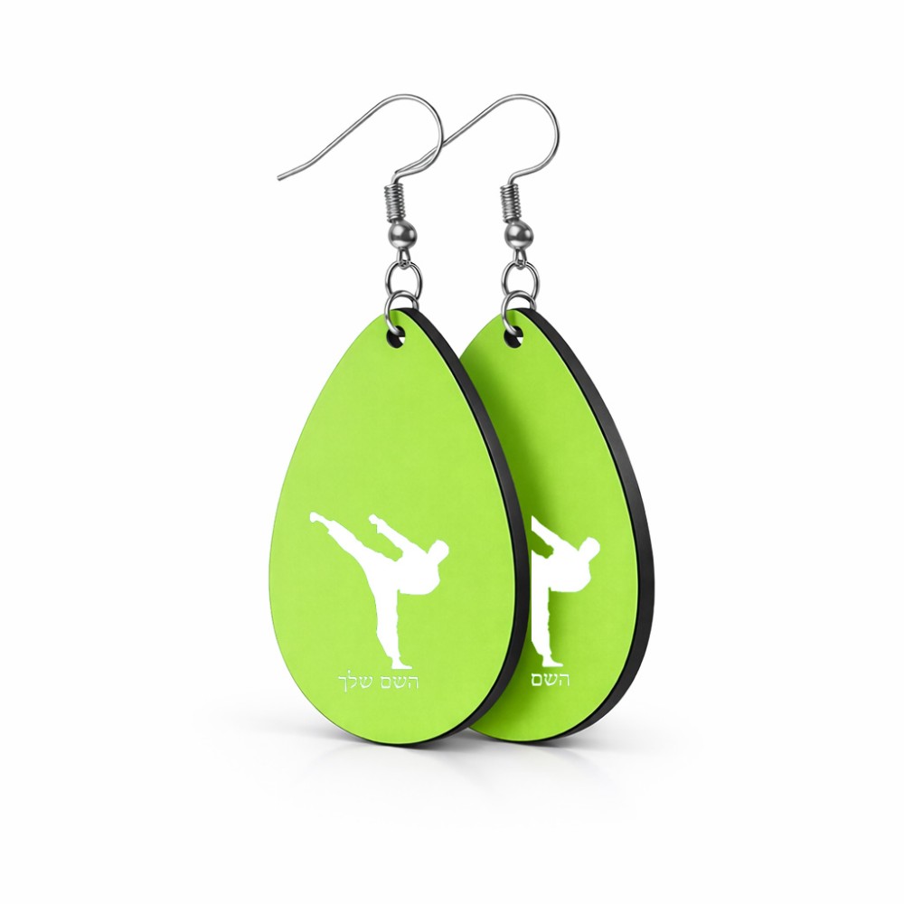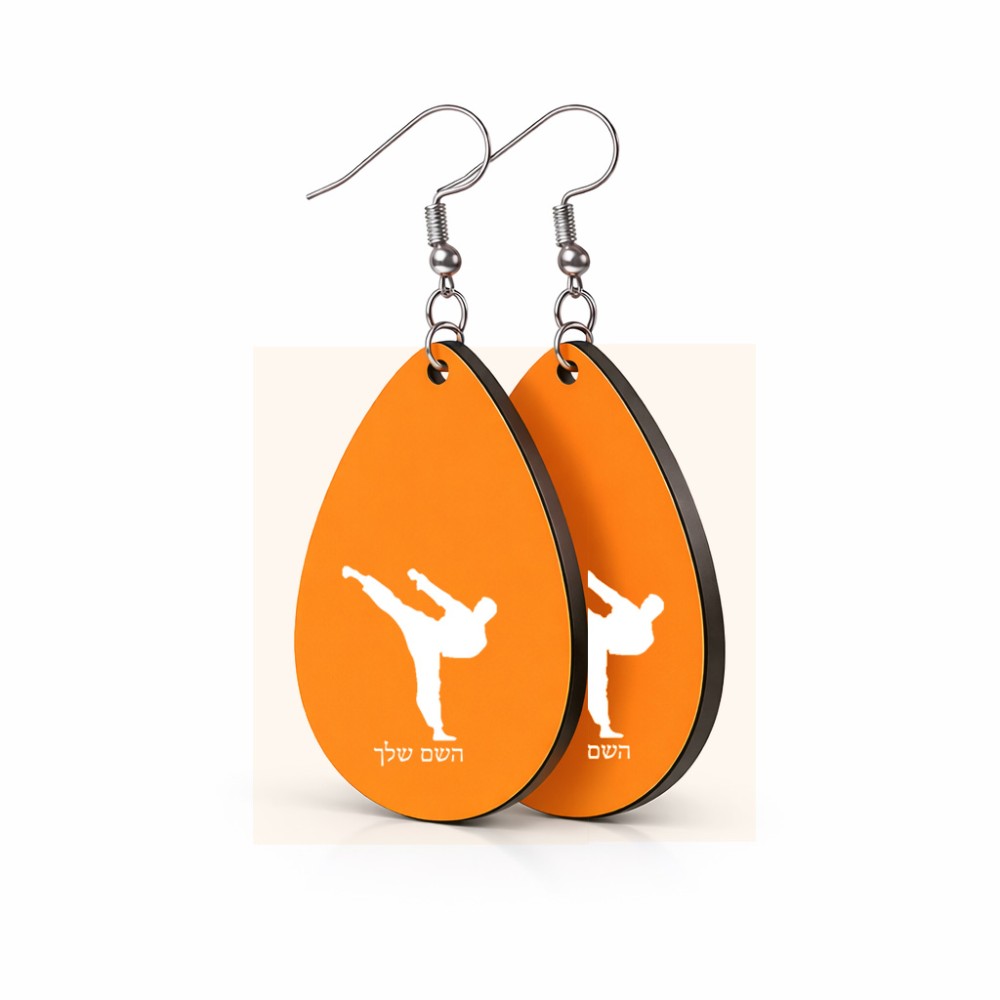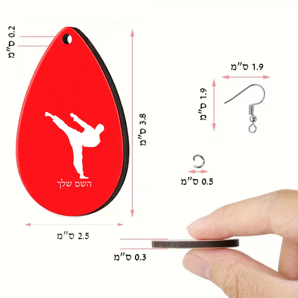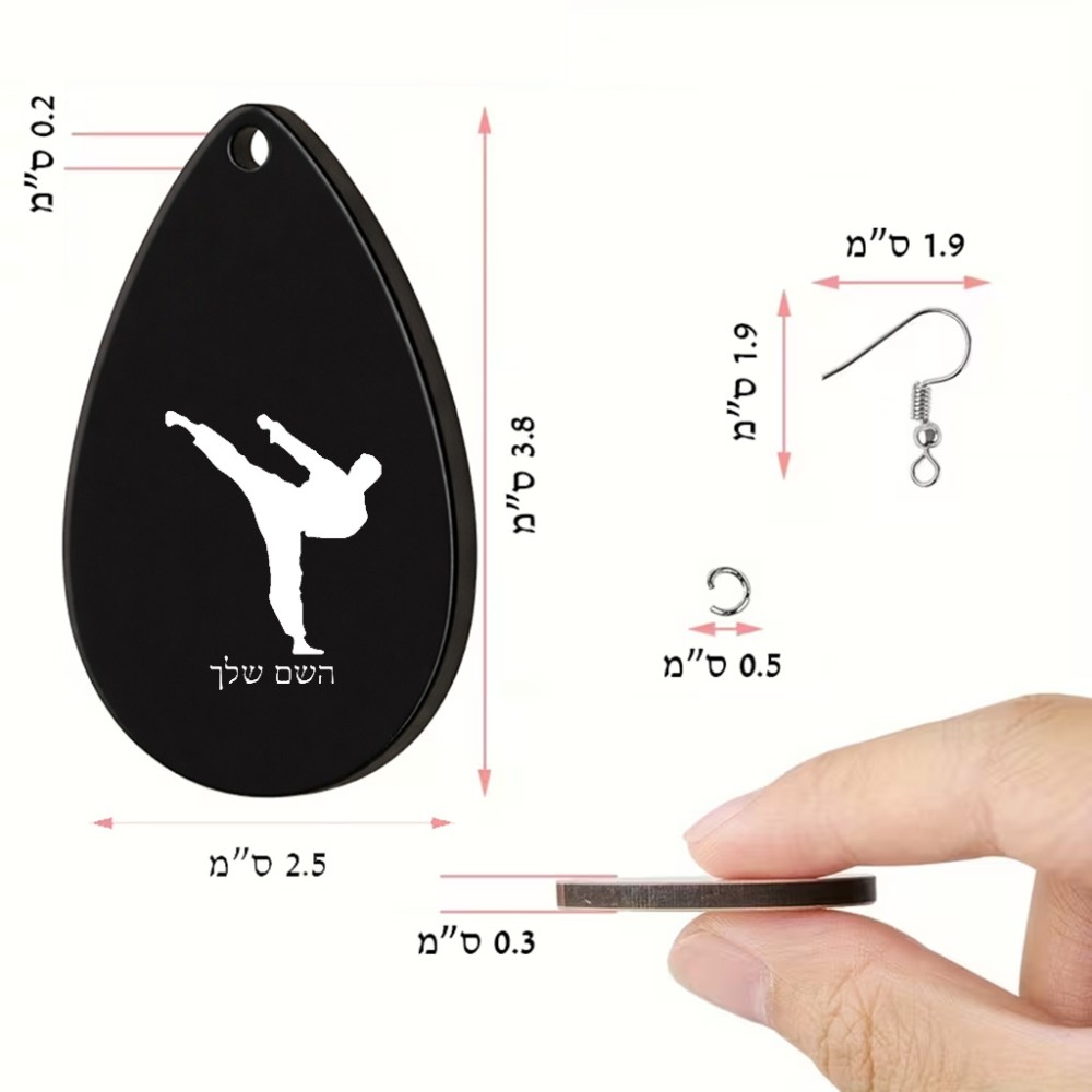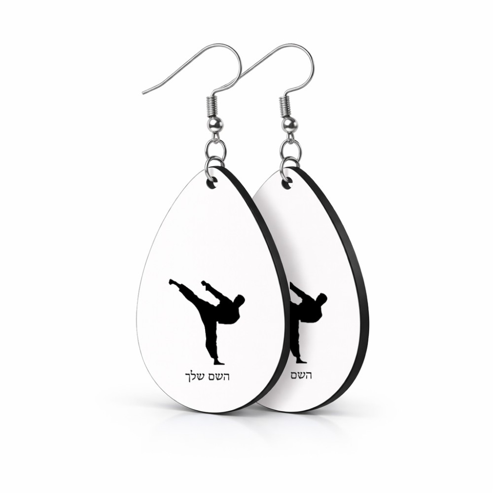 זוג עגילים בצורת טיפה בעיצוב אישי עם השם שלך בעיצוב קרטה גודל העגילים 2.5 × 3.8 ס"מ. את השם המבוקש ניתן לציין בהזמנה, אם לא צויין אנחנו ניצור קשר לבירור.