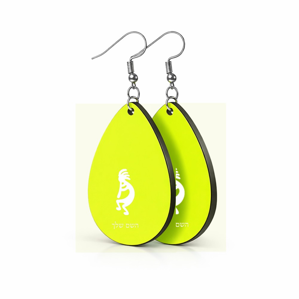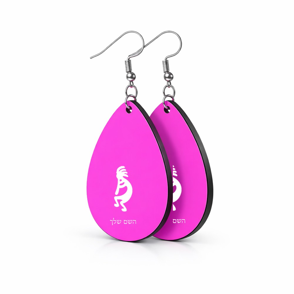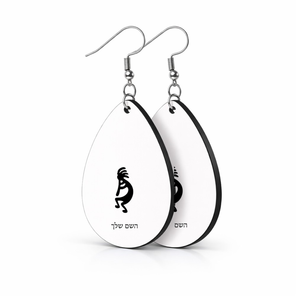 זוג עגילים בצורת טיפה בעיצוב אישי עם השם שלך בעיצוב קוקופלי גודל העגילים 2.5 × 3.8 ס"מ. את השם המבוקש ניתן לציין בהזמנה, אם לא צויין אנחנו ניצור קשר לבירור.