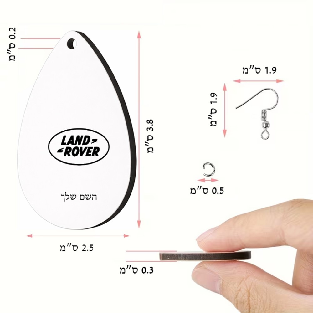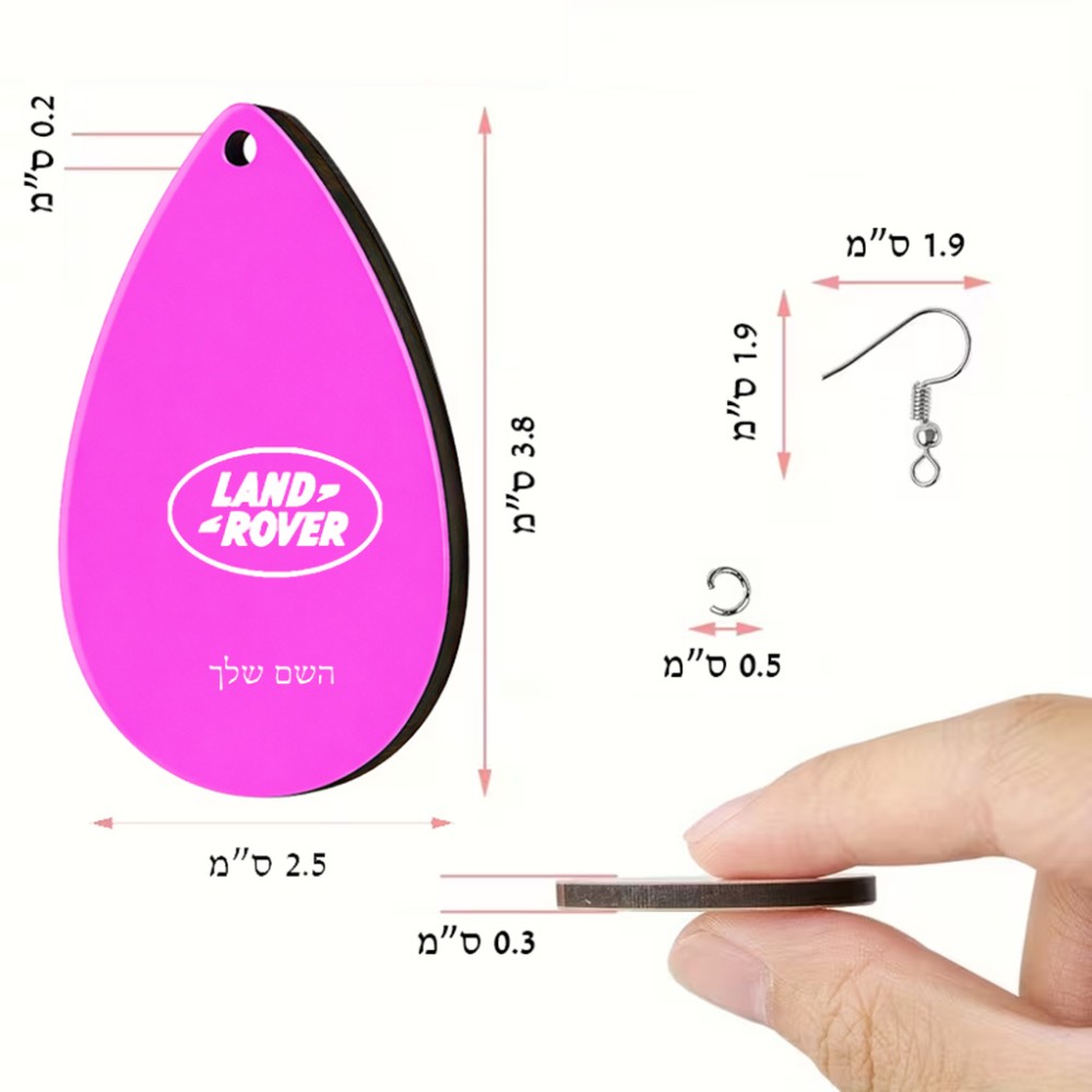 זוג עגילים בצורת טיפה בעיצוב אישי עם השם שלך בעיצוב לנד רובר גודל העגילים 2.5 × 3.8 ס"מ. את השם המבוקש ניתן לציין בהזמנה, אם לא צויין אנחנו ניצור קשר לבירור.