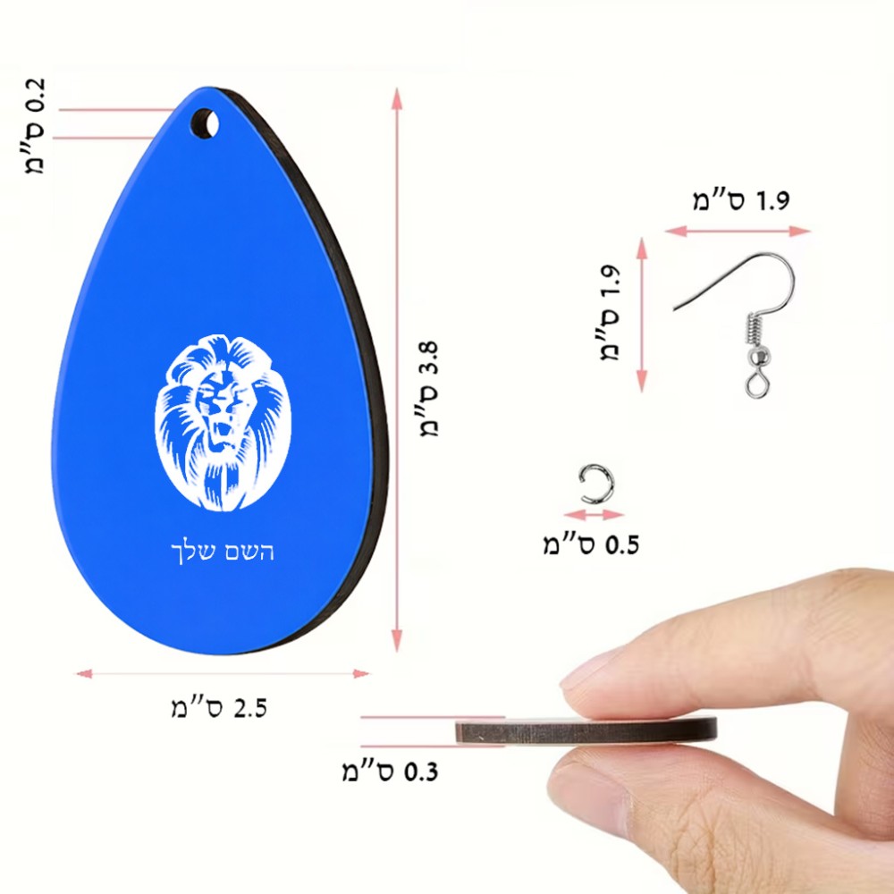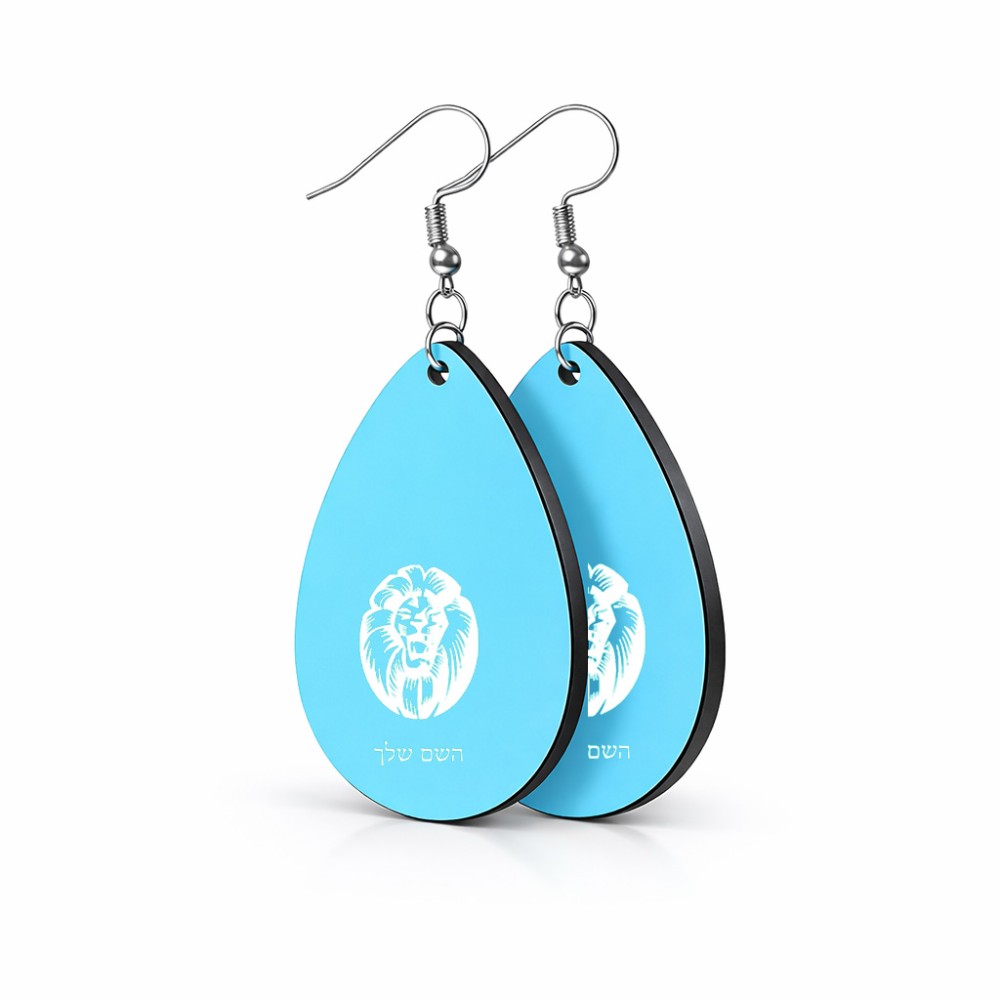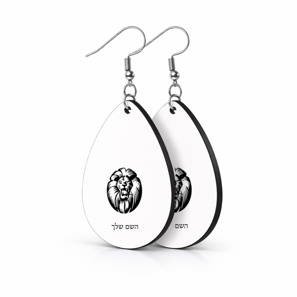 זוג עגילים בצורת טיפה בעיצוב אישי עם השם שלך בעיצוב פני אריה גודל העגילים 2.5 × 3.8 ס"מ. את השם המבוקש ניתן לציין בהזמנה, אם לא צויין אנחנו ניצור קשר לבירור.