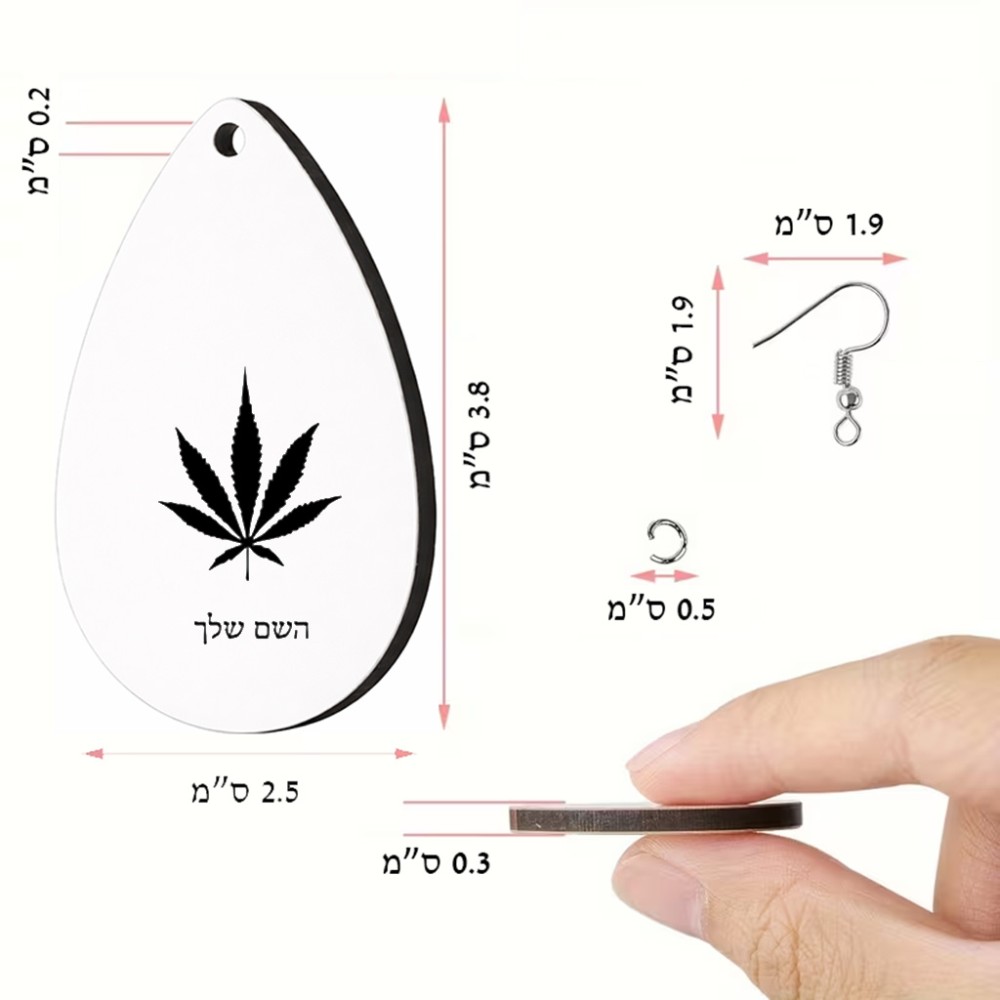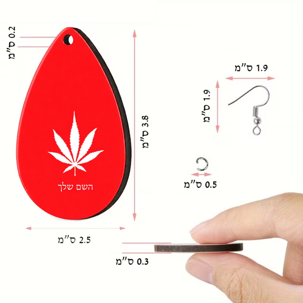 זוג עגילים בצורת טיפה בעיצוב אישי עם השם שלך בעיצוב עלה מריחואנה - גראס גודל העגילים 2.5 × 3.8 ס"מ. את השם המבוקש ניתן לציין בהזמנה, אם לא צויין אנחנו ניצור קשר לבירור.