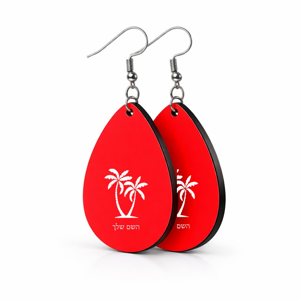 זוג עגילים בצורת טיפה בעיצוב אישי עם השם שלך בעיצוב כפות ידיים גודל העגילים 2.5 × 3.8 ס"מ. את השם המבוקש ניתן לציין בהזמנה, אם לא צויין אנחנו ניצור קשר לבירור.