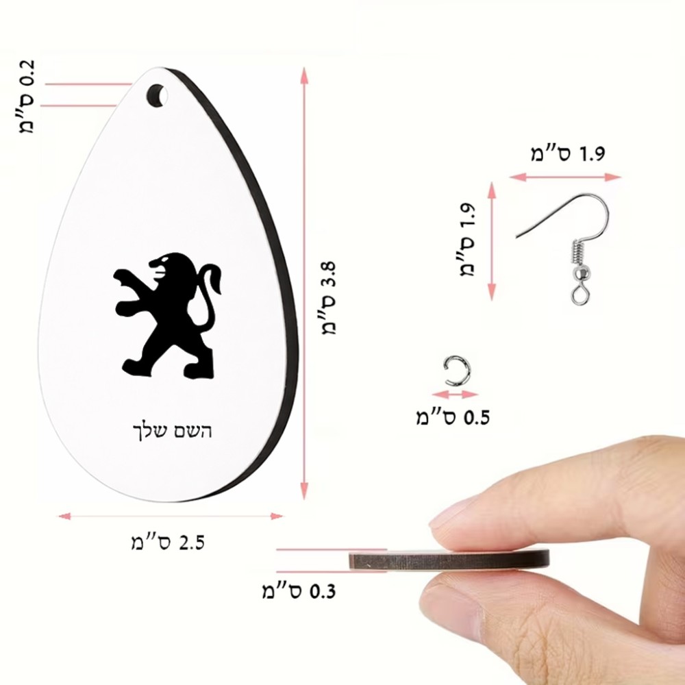 זוג עגילים בצורת טיפה בעיצוב אישי עם השם שלך בעיצוב פיג'ו גודל העגילים 2.5 × 3.8 ס"מ. את השם המבוקש ניתן לציין בהזמנה, אם לא צויין אנחנו ניצור קשר לבירור.