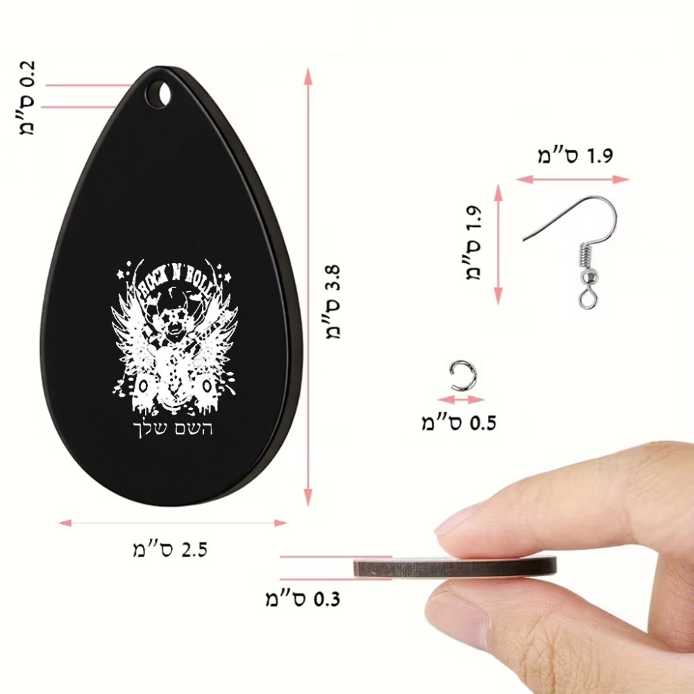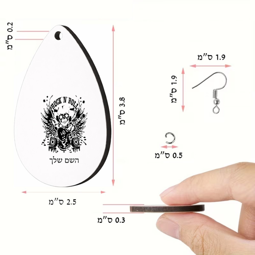 זוג עגילים בצורת טיפה בעיצוב אישי עם השם שלך בעיצוב רוקנרול גודל העגילים 2.5 × 3.8 ס"מ