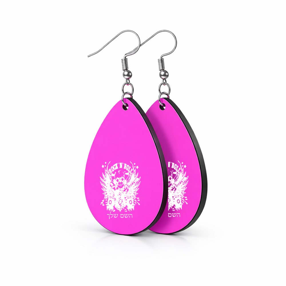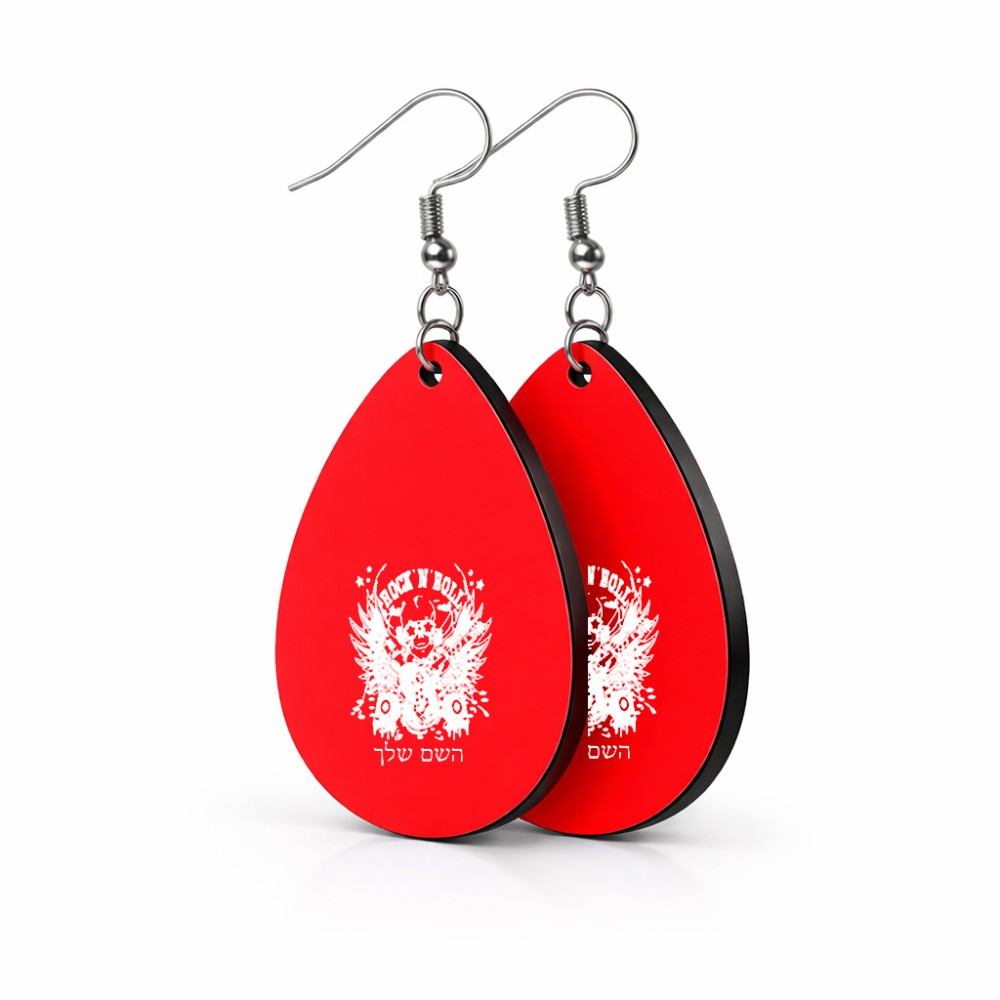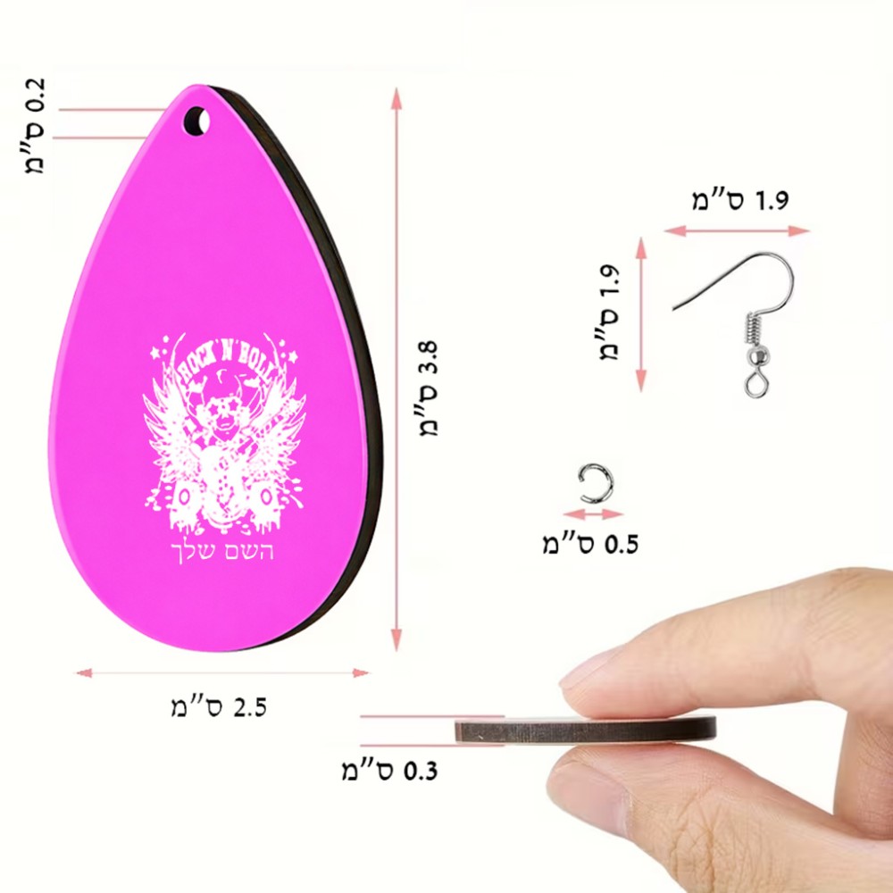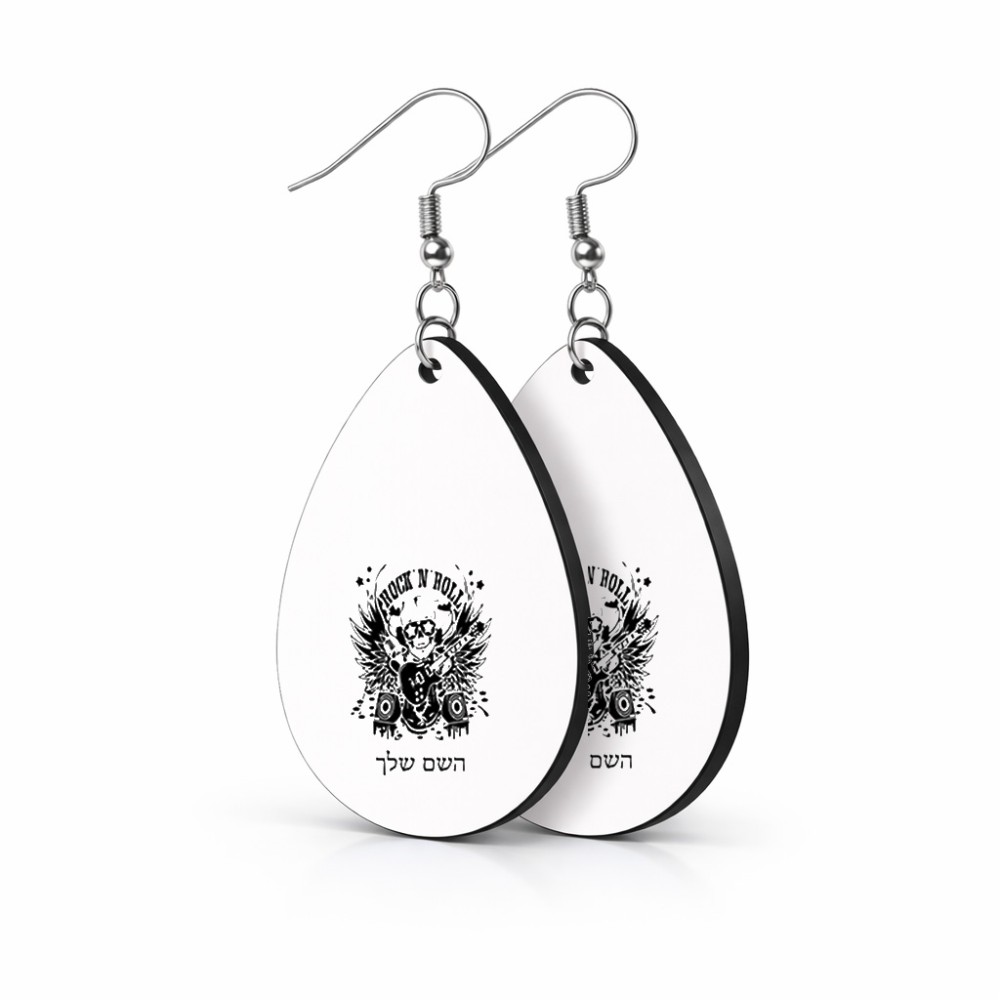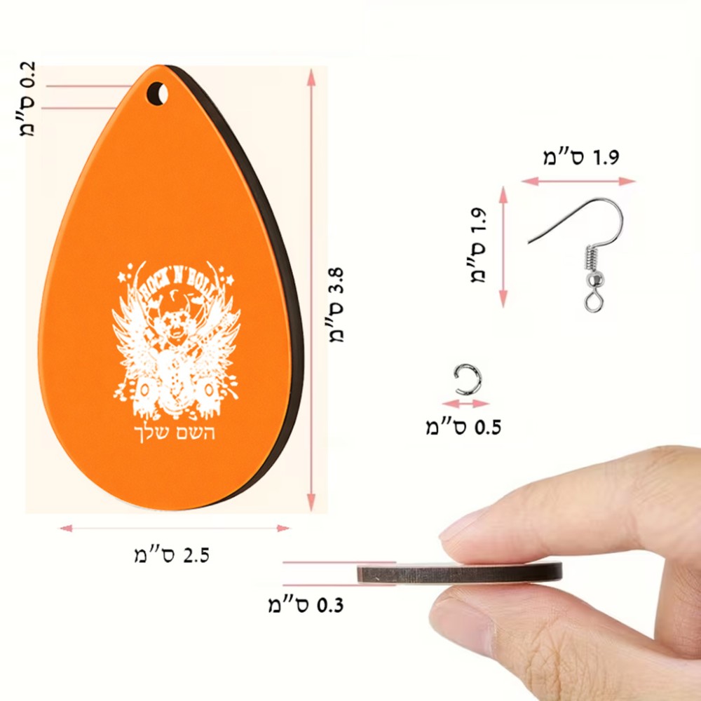 זוג עגילים בצורת טיפה בעיצוב אישי עם השם שלך בעיצוב רוקנרול גודל העגילים 2.5 × 3.8 ס"מ. את השם המבוקש ניתן לציין בהזמנה, אם לא צויין אנחנו ניצור קשר לבירור.