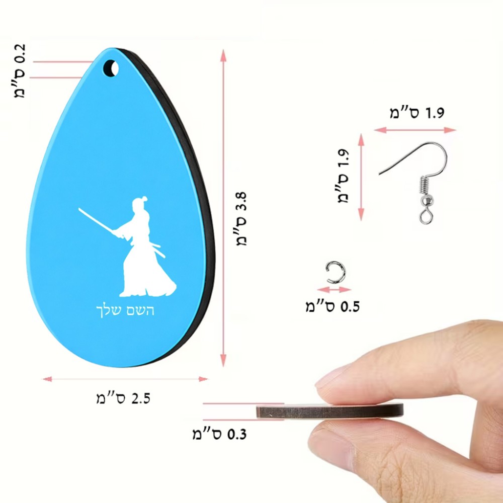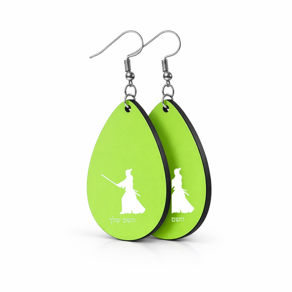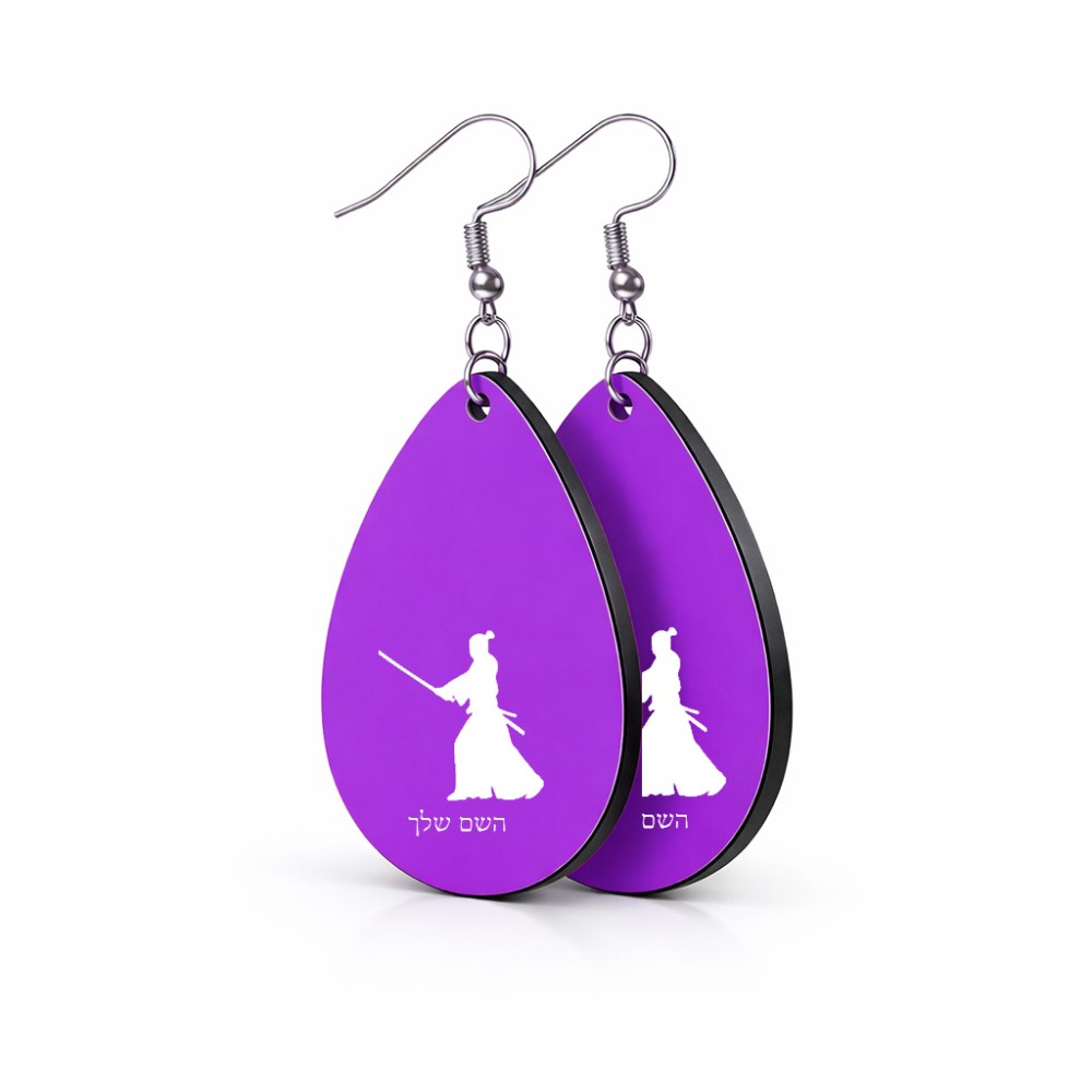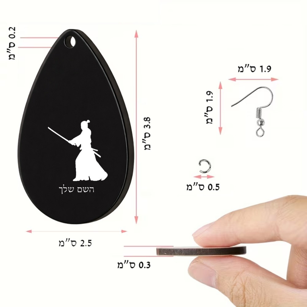 זוג עגילים בצורת טיפה בעיצוב אישי עם השם שלך בעיצוב סמוראי גודל העגילים 2.5 × 3.8 ס"מ. את השם המבוקש ניתן לציין בהזמנה, אם לא צויין אנחנו ניצור קשר לבירור.