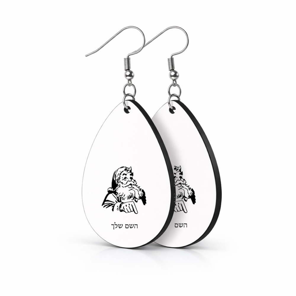 זוג עגילים בצורת טיפה בעיצוב אישי עם השם שלך בעיצוב סנטה קלאוס גודל העגילים 2.5 × 3.8 ס"מ. את השם המבוקש ניתן לציין בהזמנה, אם לא צויין אנחנו ניצור קשר לבירור.