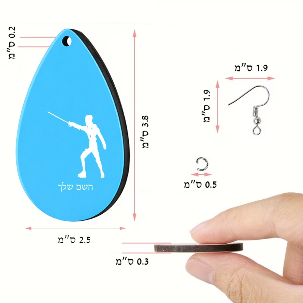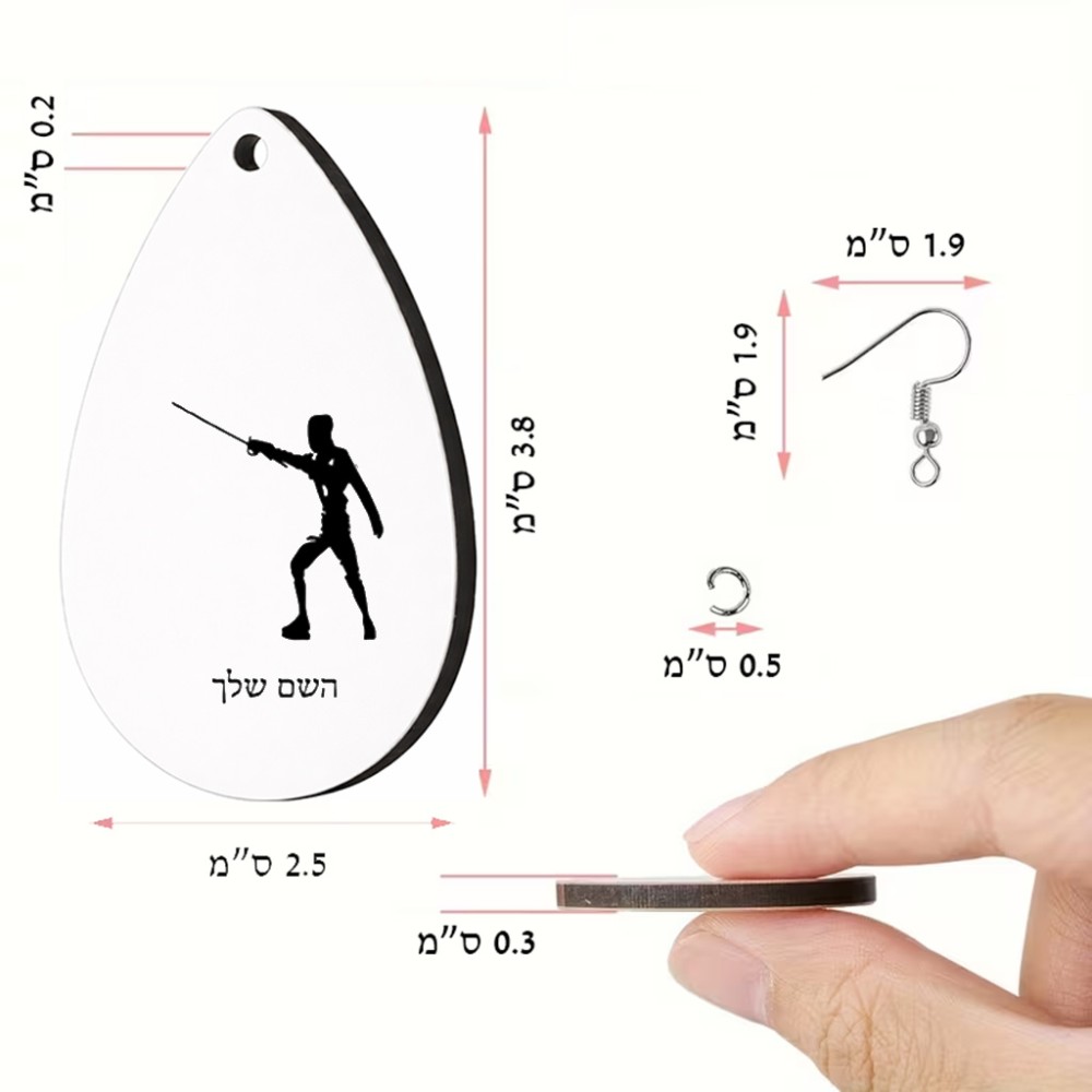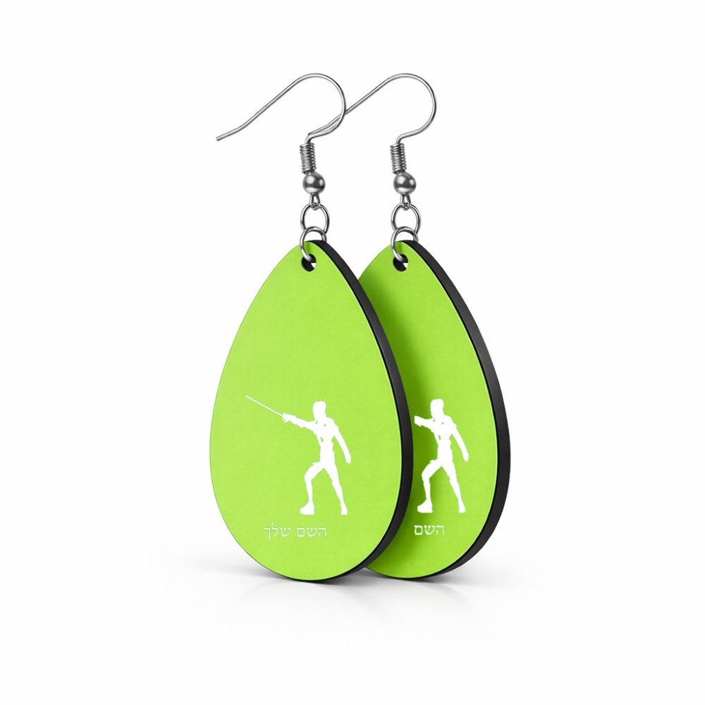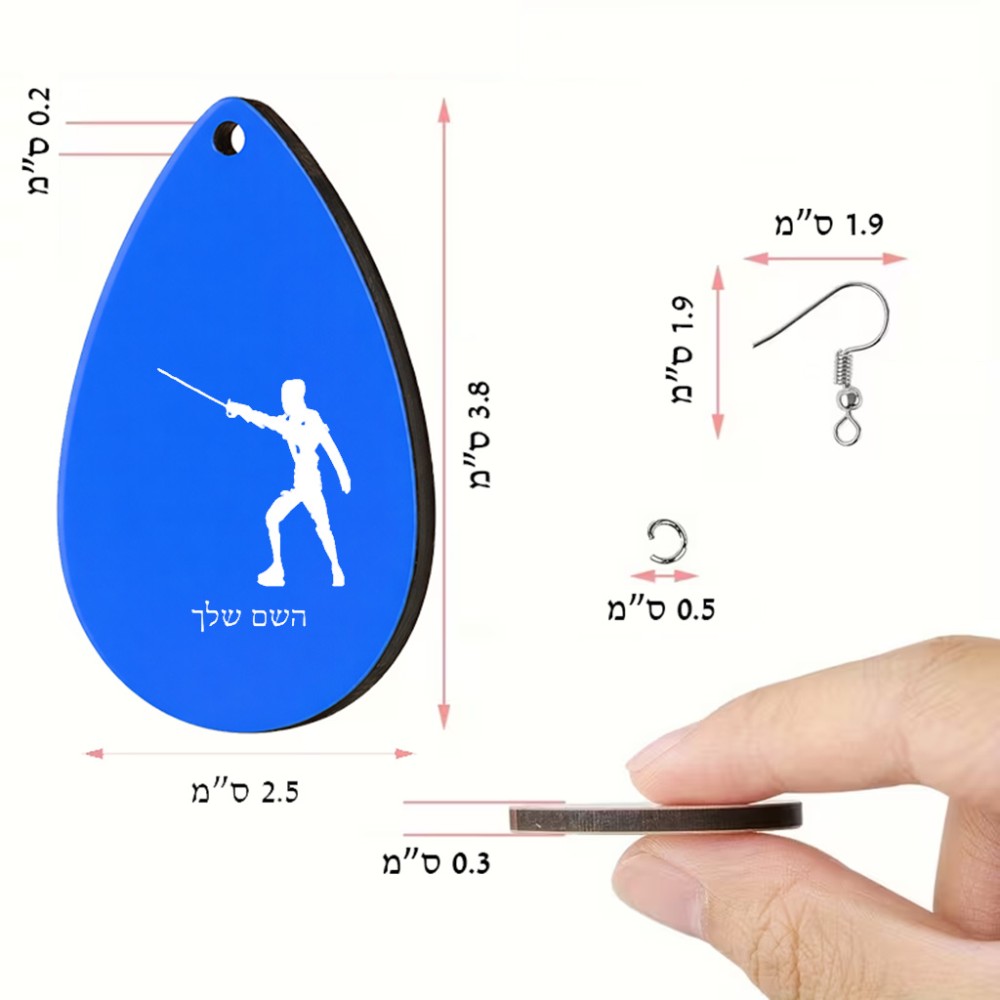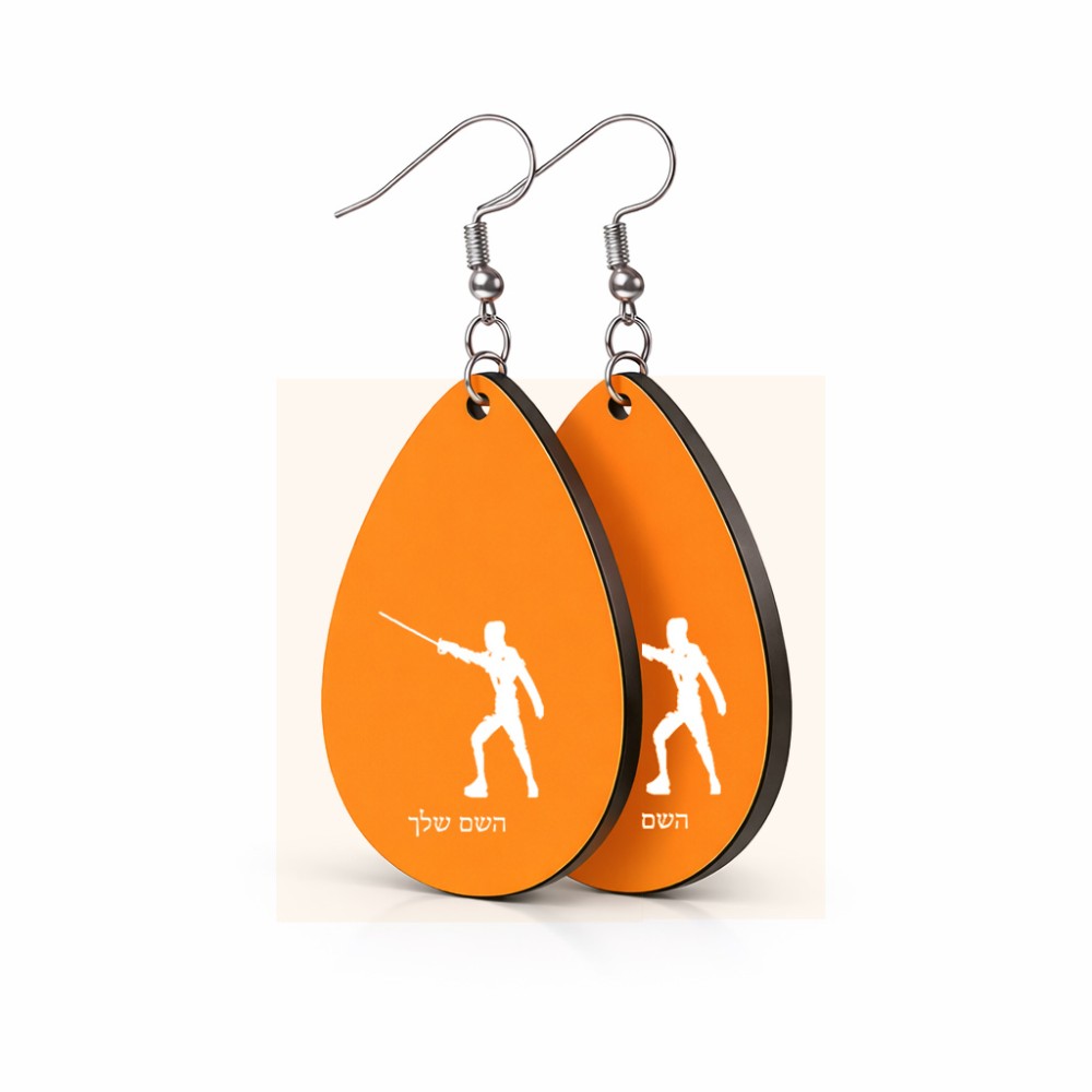 זוג עגילים בצורת טיפה בעיצוב אישי עם השם שלך בעיצוב לוחם סייף גודל העגילים 2.5 × 3.8 ס"מ. את השם המבוקש ניתן לציין בהזמנה, אם לא צויין אנחנו ניצור קשר לבירור.