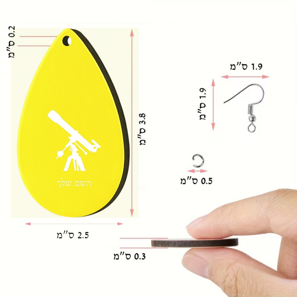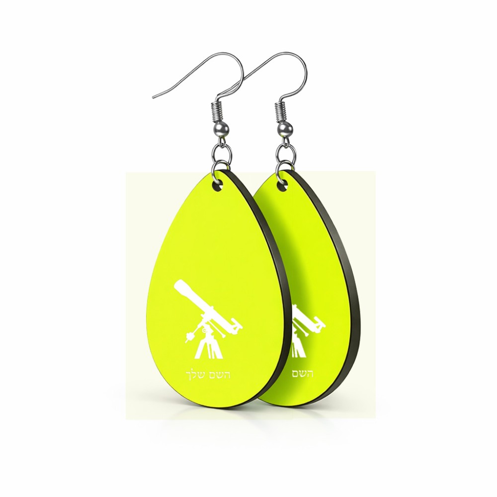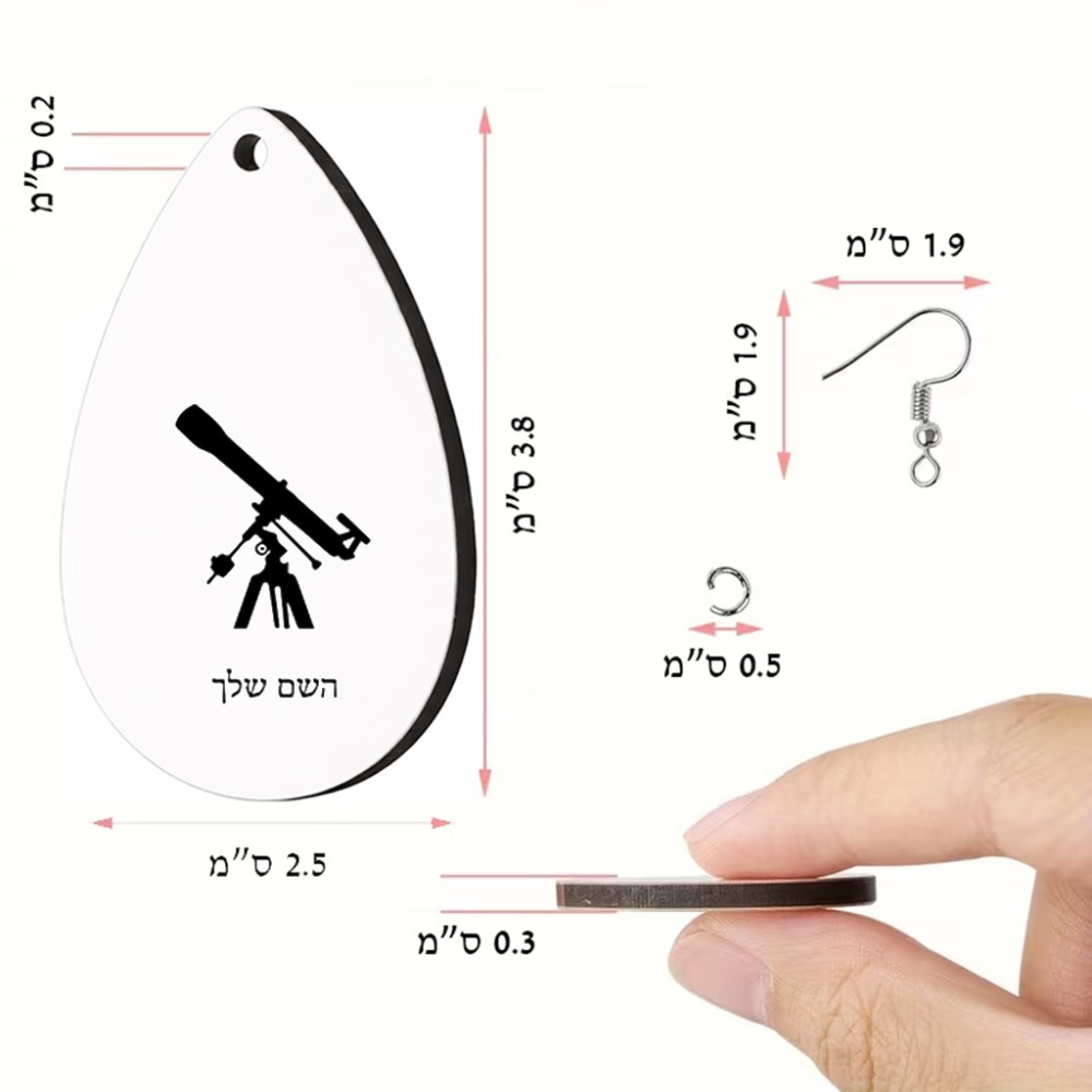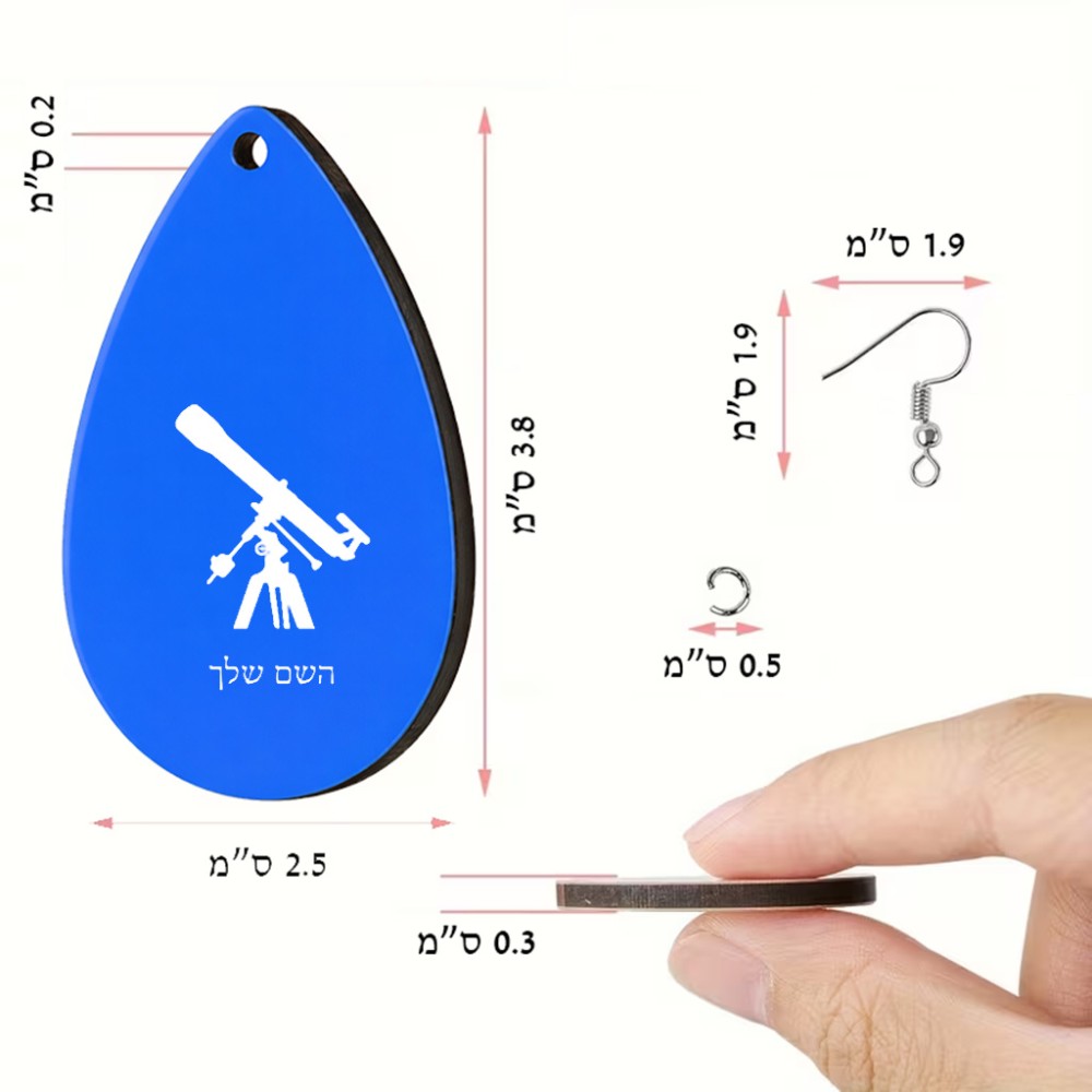 זוג עגילים בצורת טיפה בעיצוב אישי עם השם שלך בעיצוב טלסקופ גודל העגילים 2.5 × 3.8 ס"מ. את השם המבוקש ניתן לציין בהזמנה, אם לא צויין אנחנו ניצור קשר לבירור.