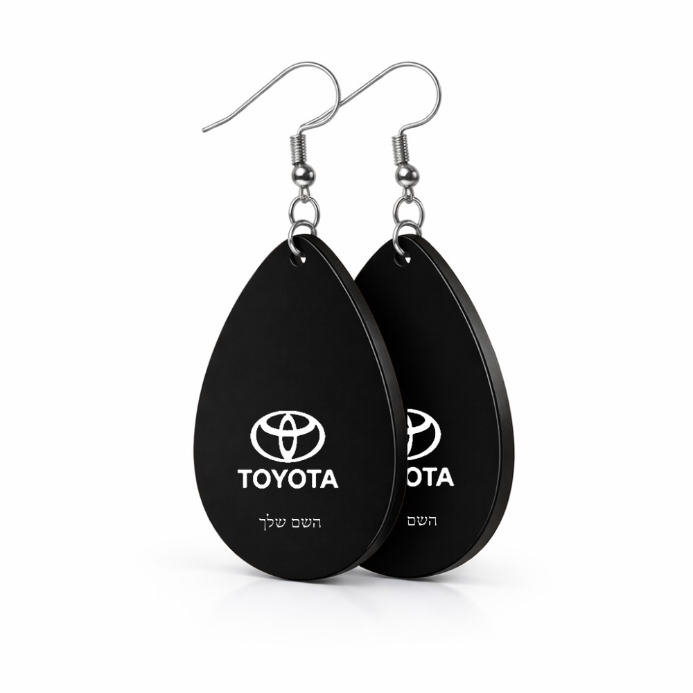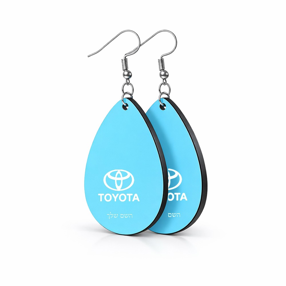 זוג עגילים בצורת טיפה בעיצוב אישי עם השם שלך בעיצוב טויוטה גודל העגילים 2.5 × 3.8 ס"מ. את השם המבוקש ניתן לציין בהזמנה, אם לא צויין אנחנו ניצור קשר לבירור.