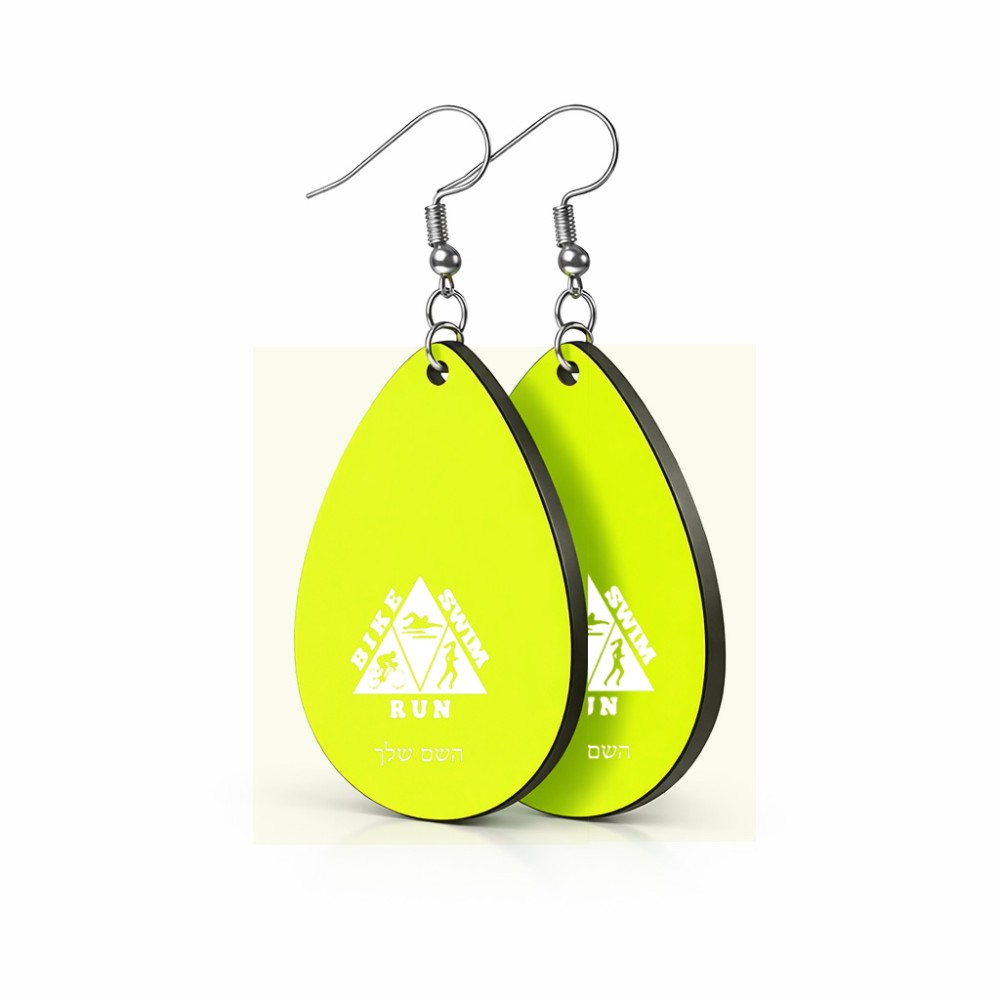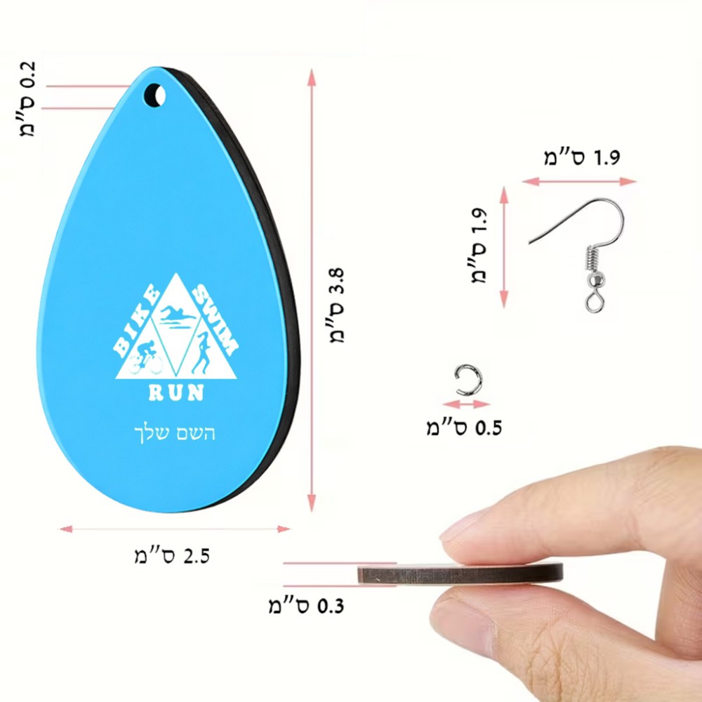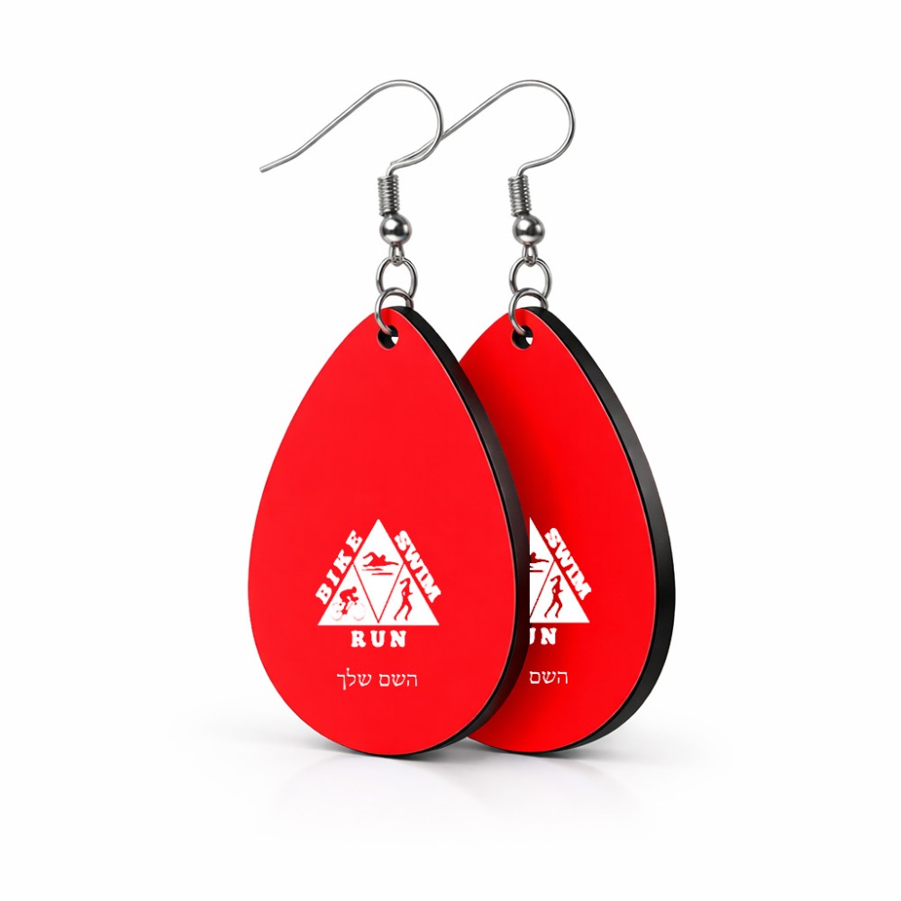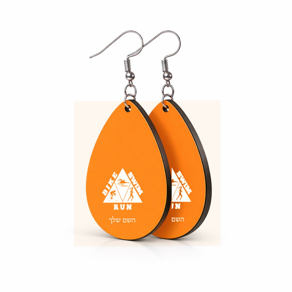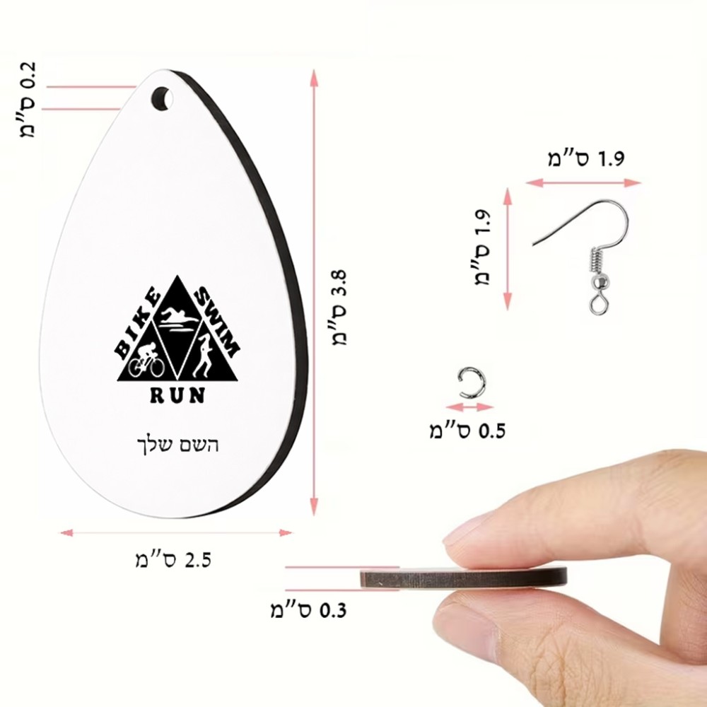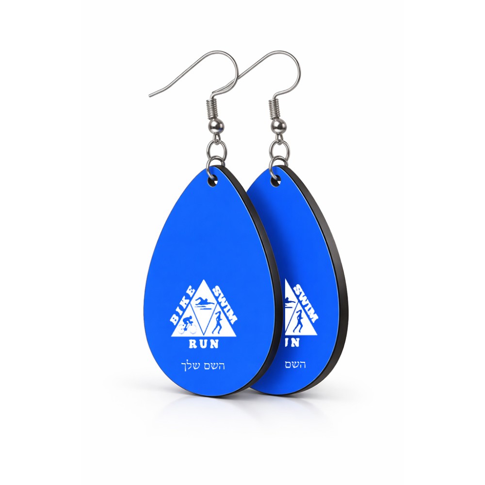 זוג עגילים בצורת טיפה בעיצוב אישי עם השם שלך בעיצוב טריאתלון גודל העגילים 2.5 × 3.8 ס"מ. את השם המבוקש ניתן לציין בהזמנה, אם לא צויין אנחנו ניצור קשר לבירור.