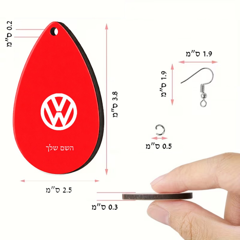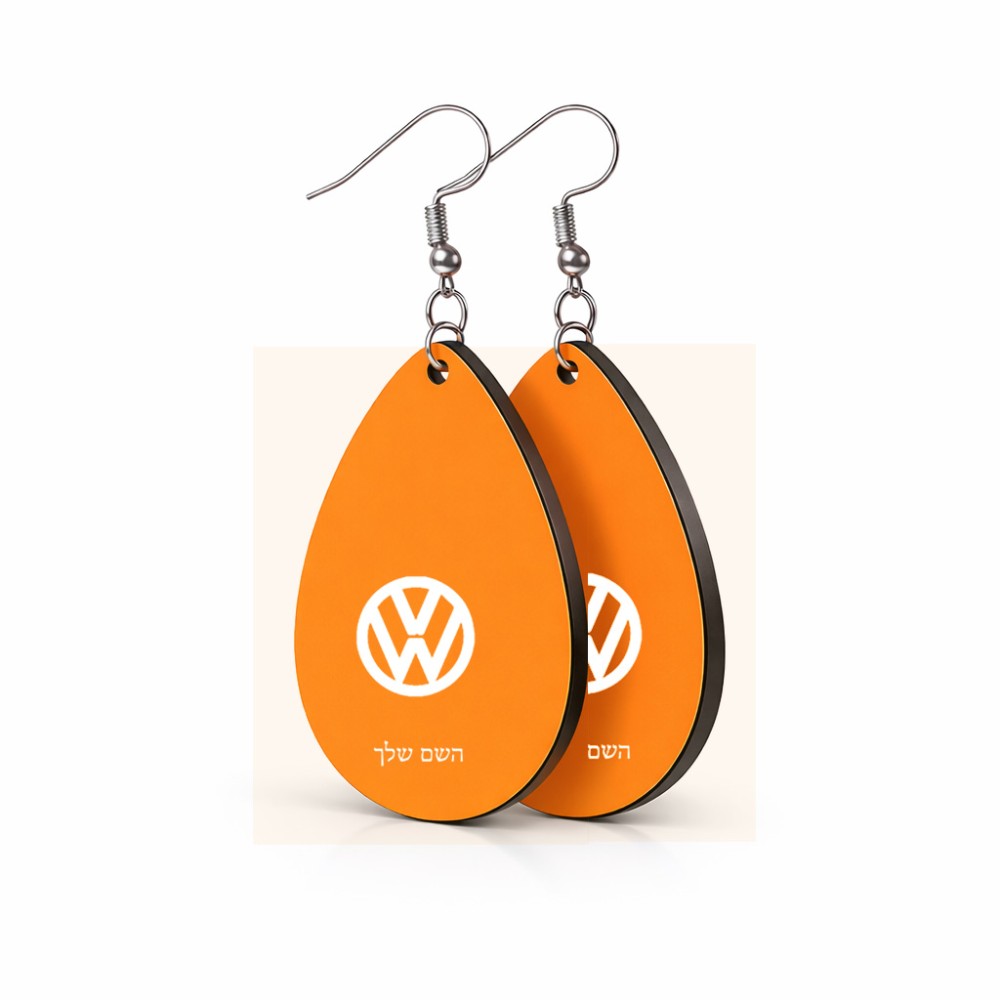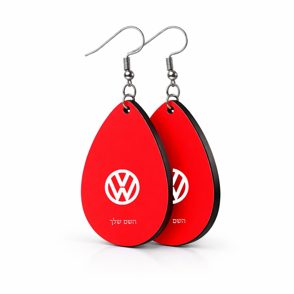 זוג עגילים בצורת טיפה בעיצוב אישי עם השם שלך בעיצוב פולקסווגן גודל העגילים 2.5 × 3.8 ס"מ. את השם המבוקש ניתן לציין בהזמנה, אם לא צויין אנחנו ניצור קשר לבירור.
