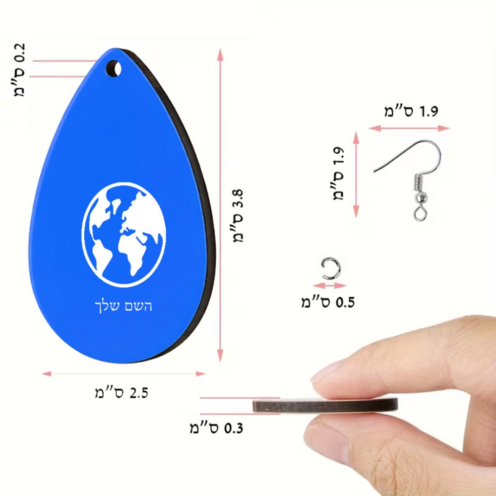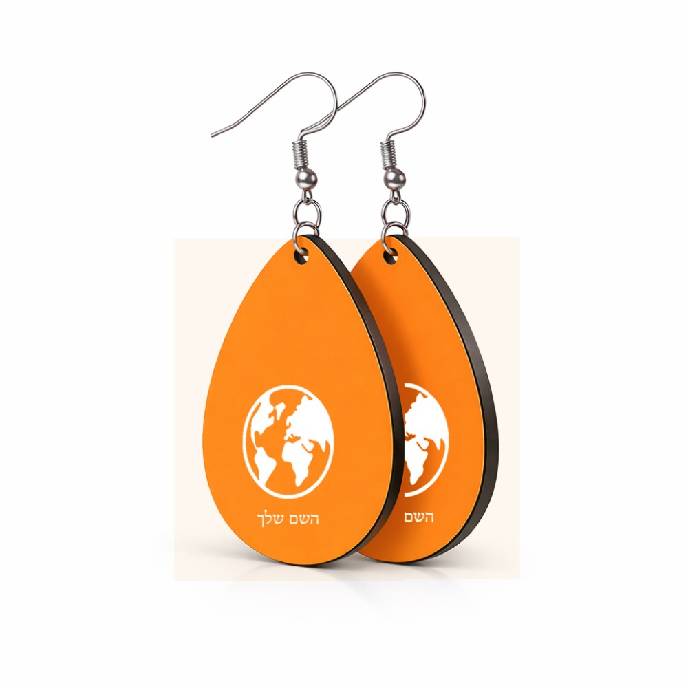 זוג עגילים בצורת טיפה בעיצוב אישי עם השם שלך בעיצוב עולם גודל העגילים 2.5 × 3.8 ס"מ. את השם המבוקש ניתן לציין בהזמנה, אם לא צויין אנחנו ניצור קשר לבירור.